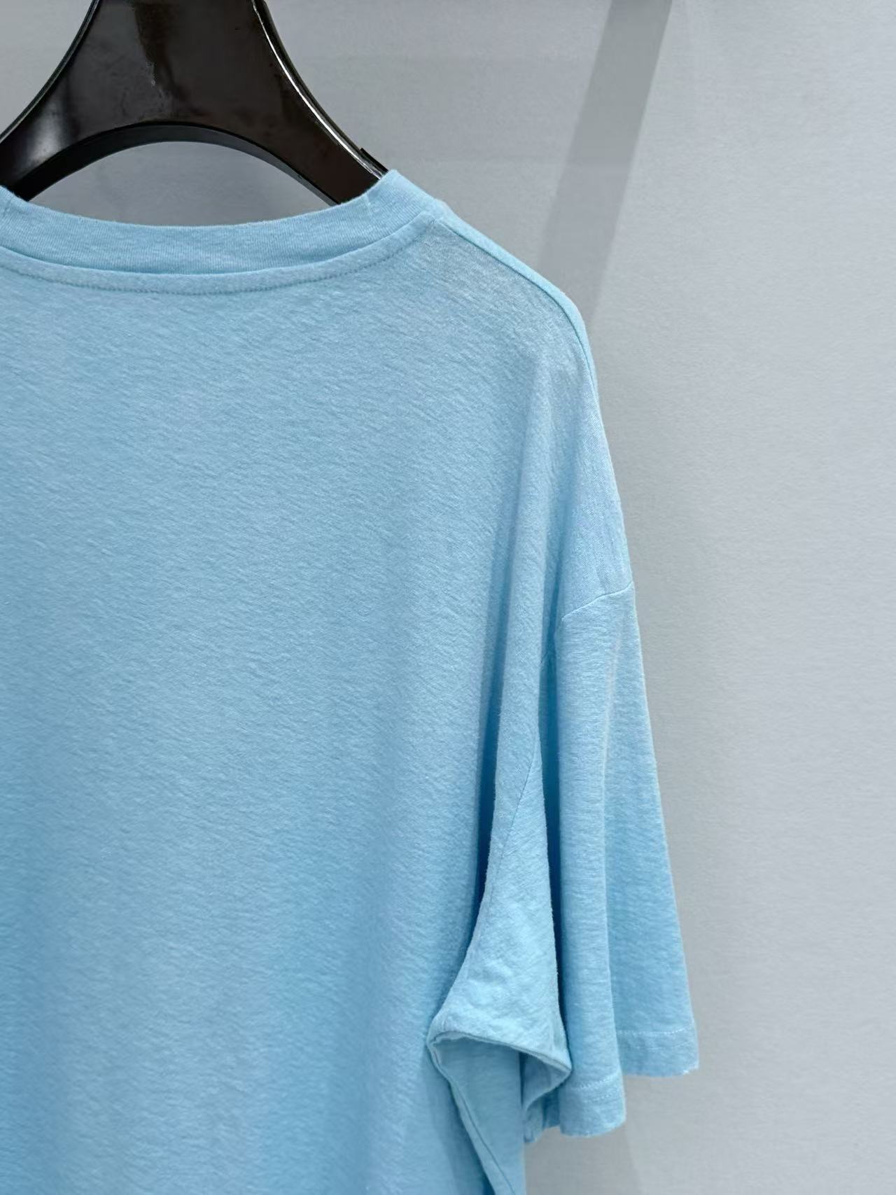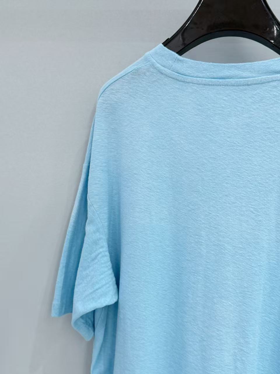 除了單穿,這件輕薄的短 T 也非常適合疊搭在妳那件 Hermès 深靛藍牛仔夾克 裡面,露出胸口的 Stockholm 1996 字母細節,增加整體的視覺豐富度。
