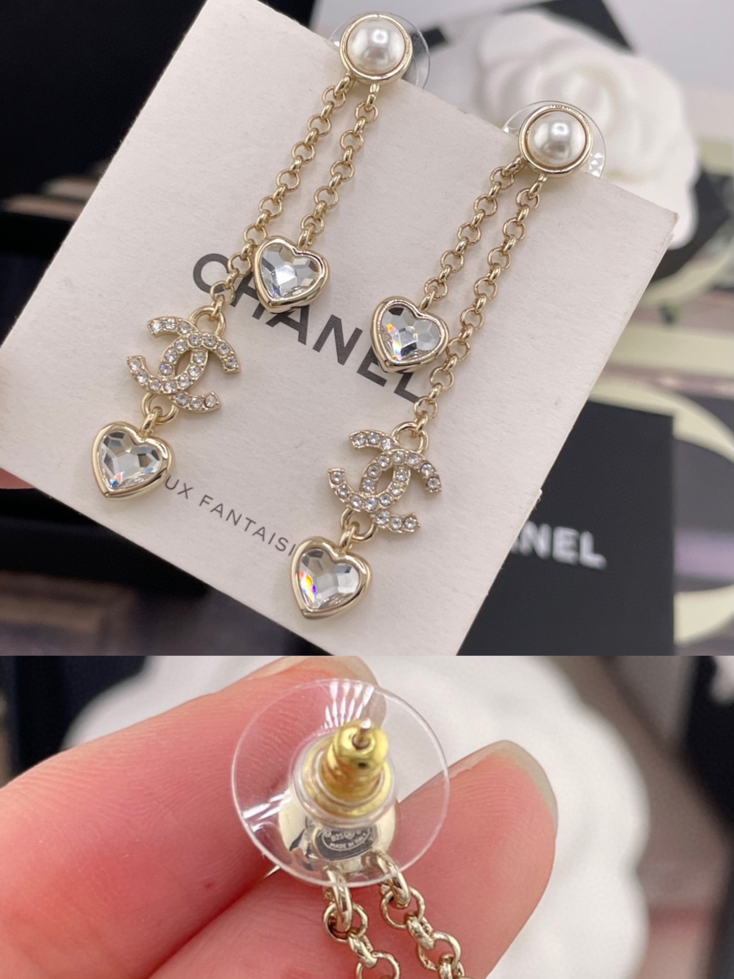 2025秋冬新品 C家 長短流蘇愛心鑽耳環