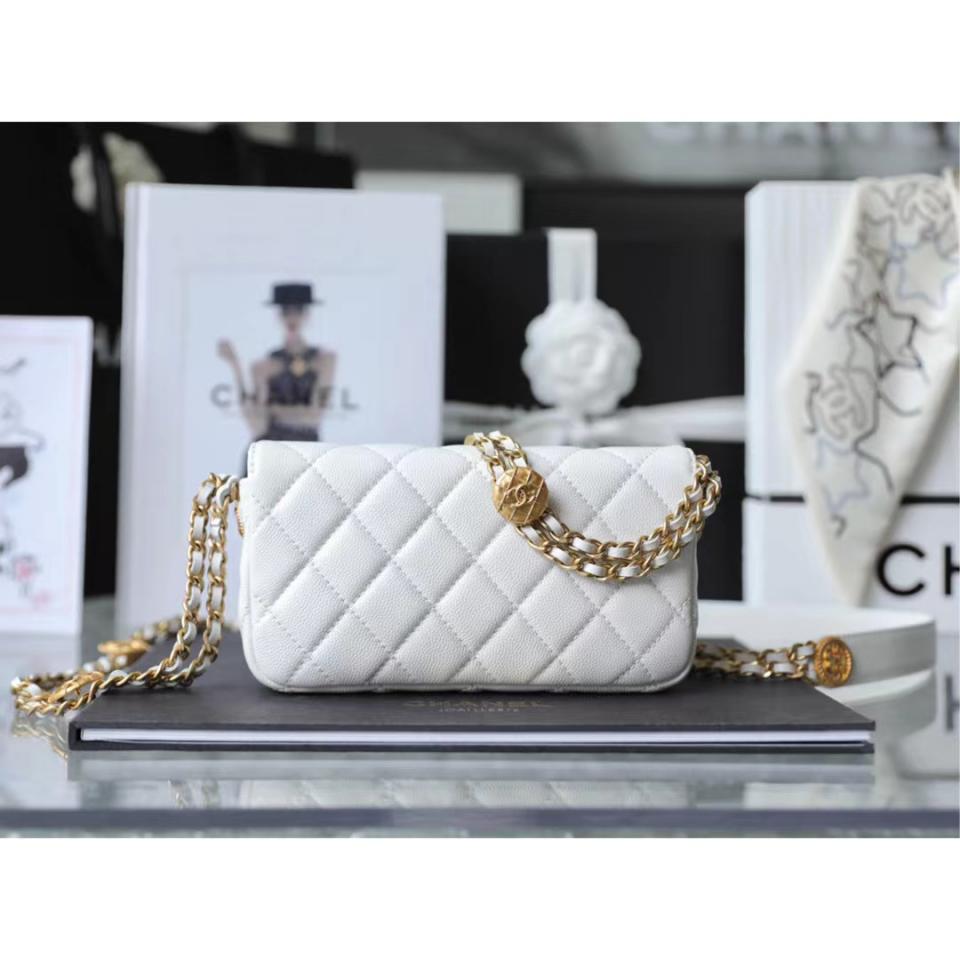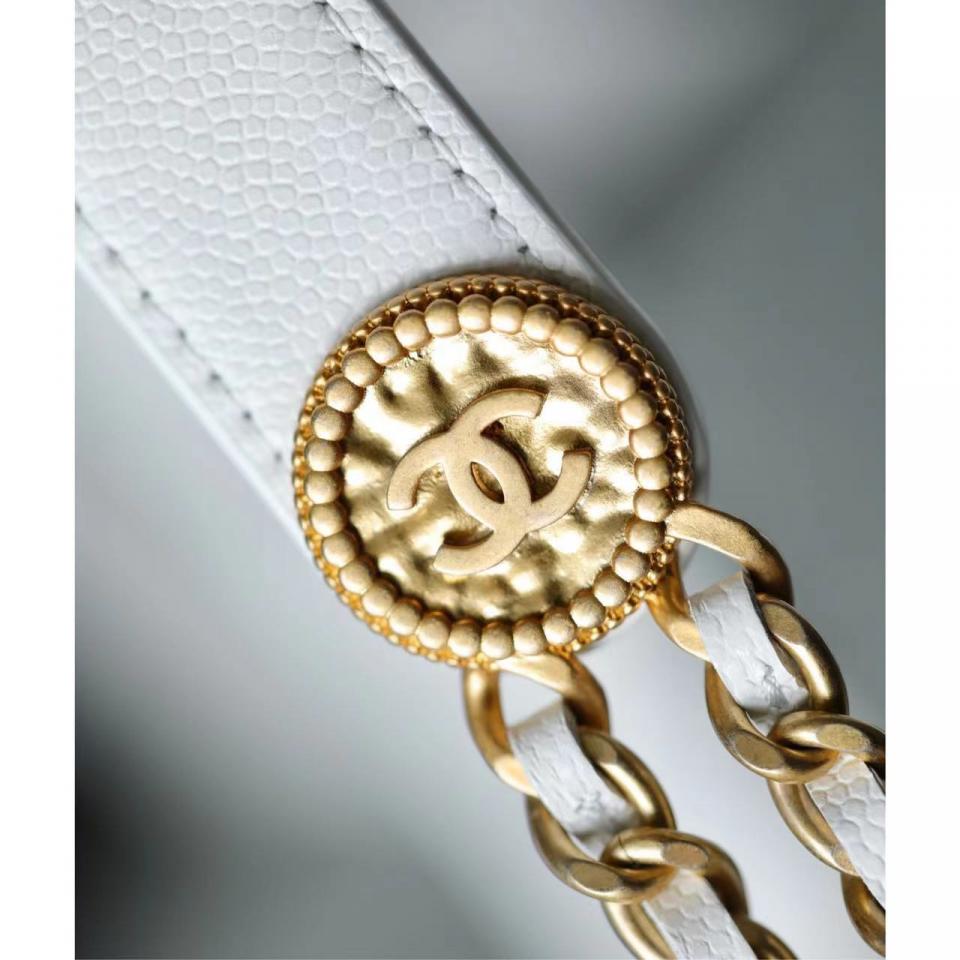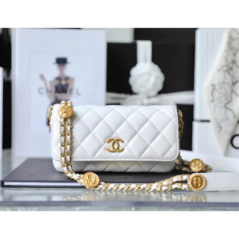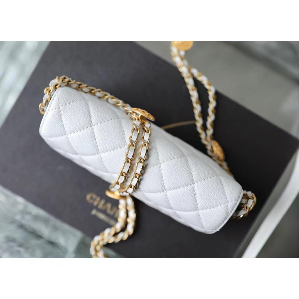 2022春夏新品 高級手工坊 徽章金幣鏈條法棍包(白色) 最火爆系列