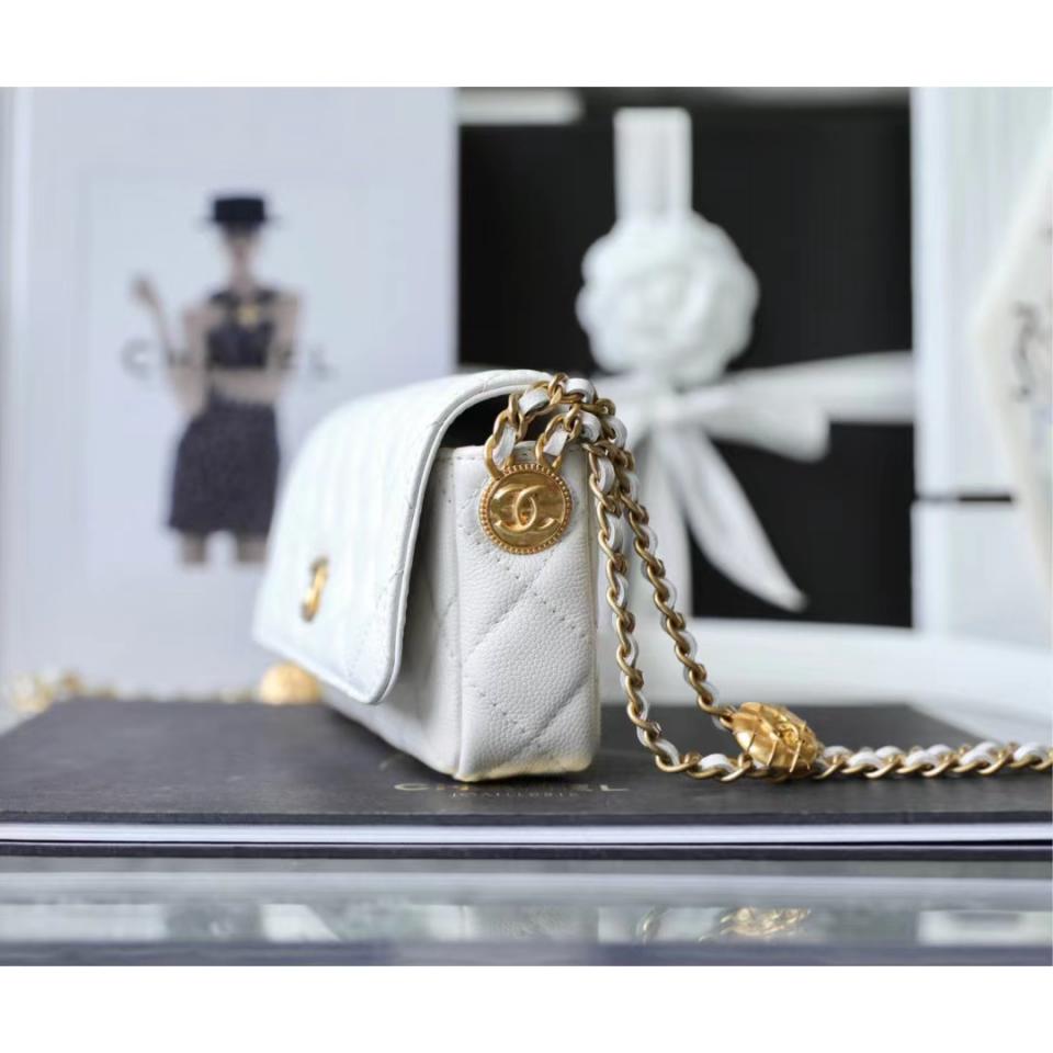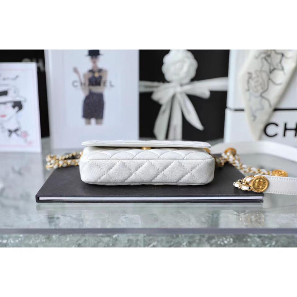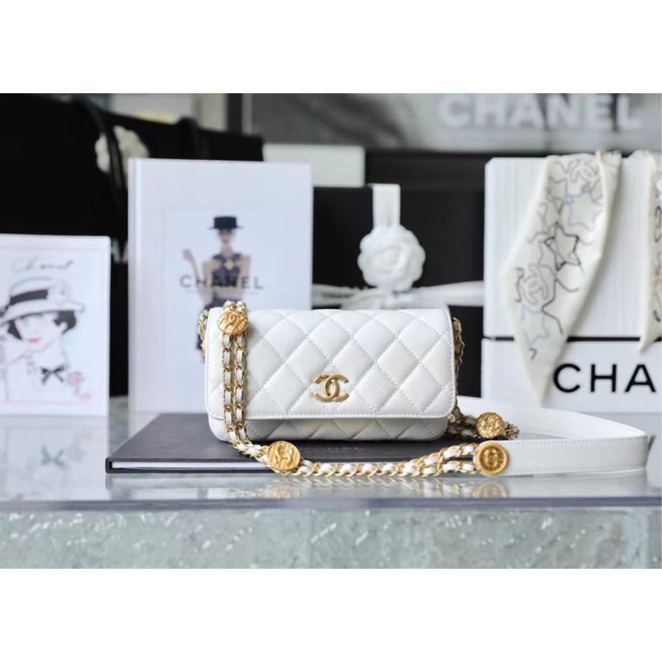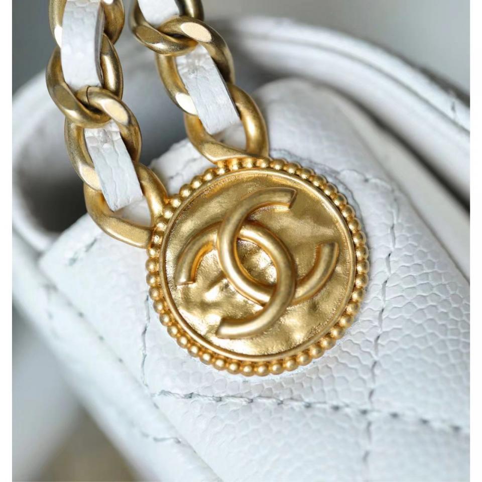 2022春夏新品 高級手工坊 徽章金幣鏈條法棍包(白色) 最火爆系列