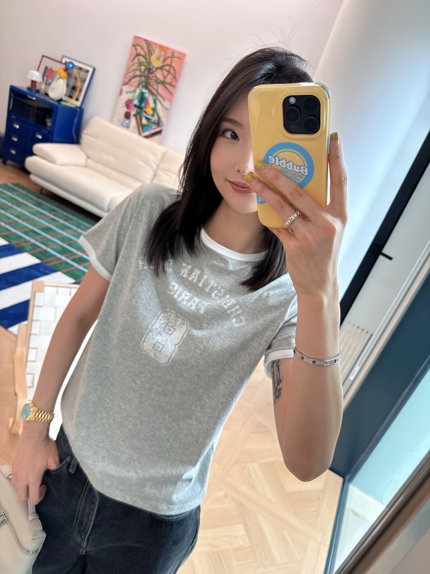 這件T恤最大的魅力就在於簡單中見細節。灰白配色低調又高級,隨性穿出門都很有氣質。