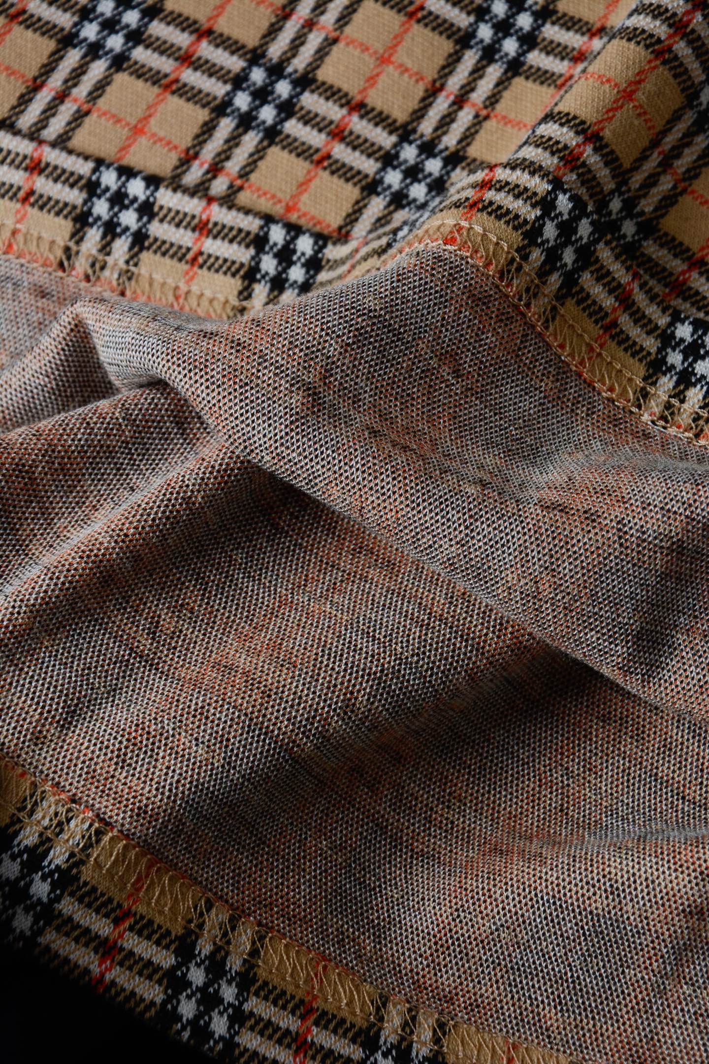 格紋不是印上去的,而是透過針織提花方式呈現,讓圖案更立體、有層次,也更耐穿不易退色。
