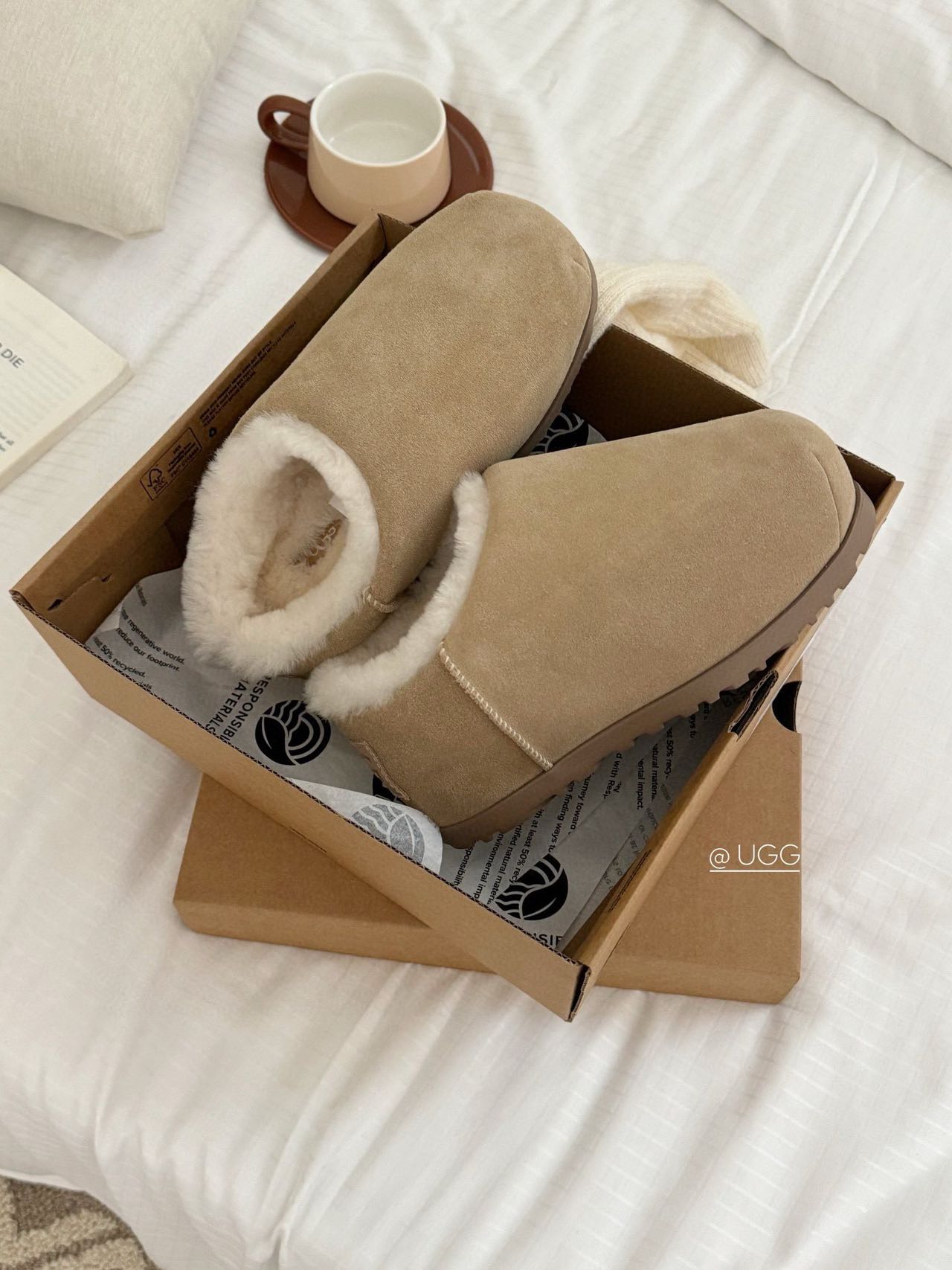 2024早秋新品 UGG家隱形內增高胖頭麵包靴 內增高5cm