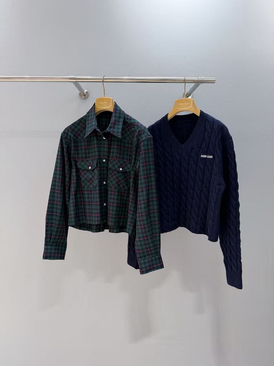 2025早秋 Miu家 復古格紋短版襯衫