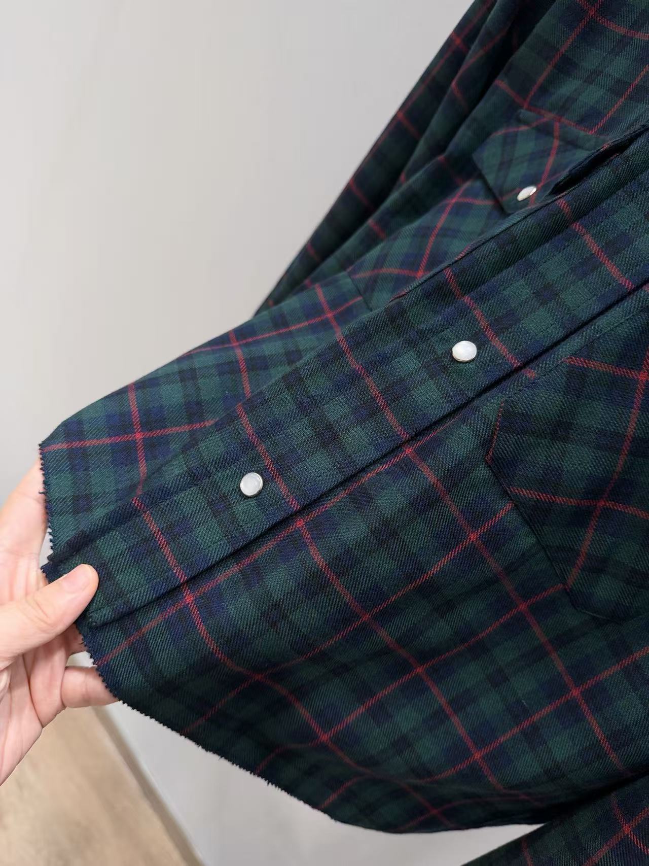 深綠與紅棕交織出的復古格紋,自帶美式校園氛圍,隨便穿都很有故事感。