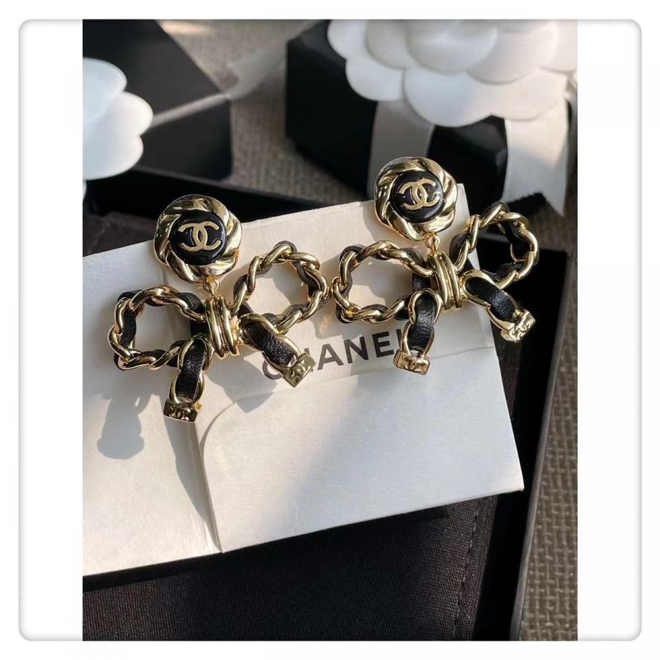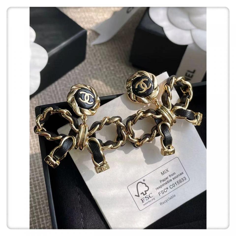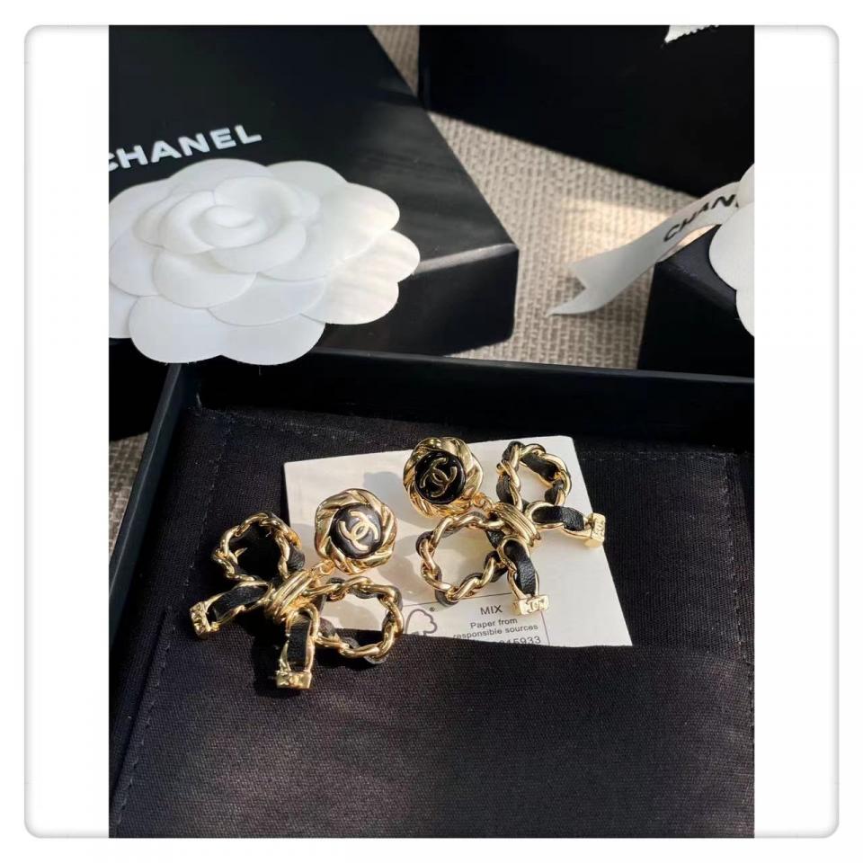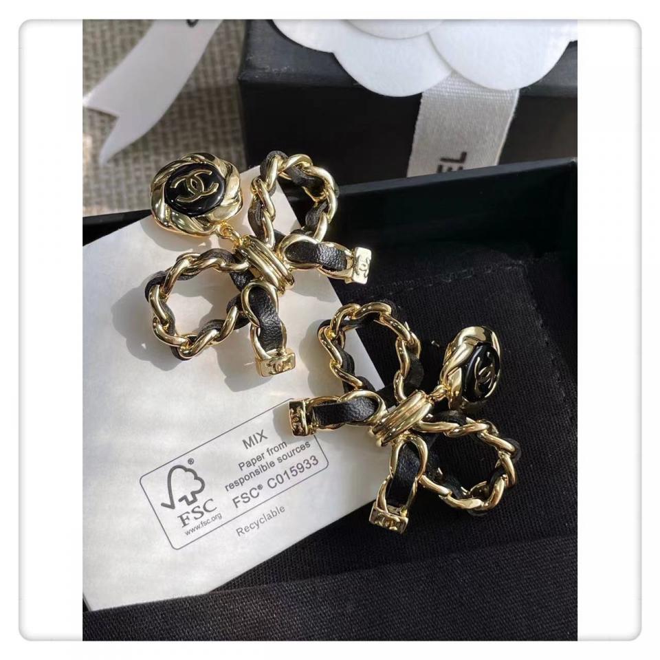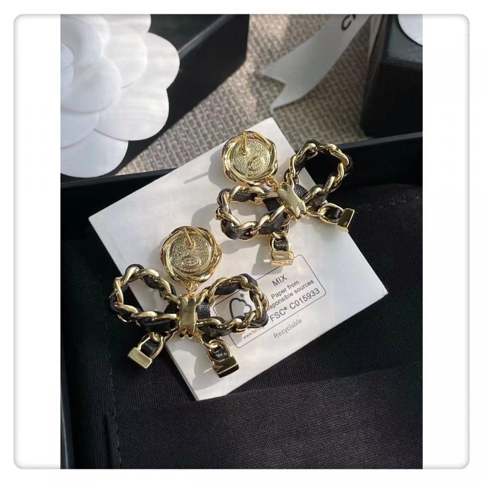 2022早秋 C家皮圓形吊蝴蝶結耳環