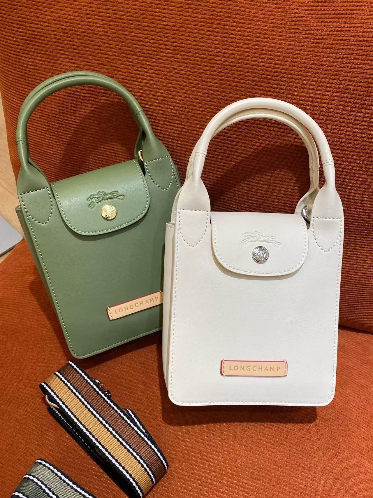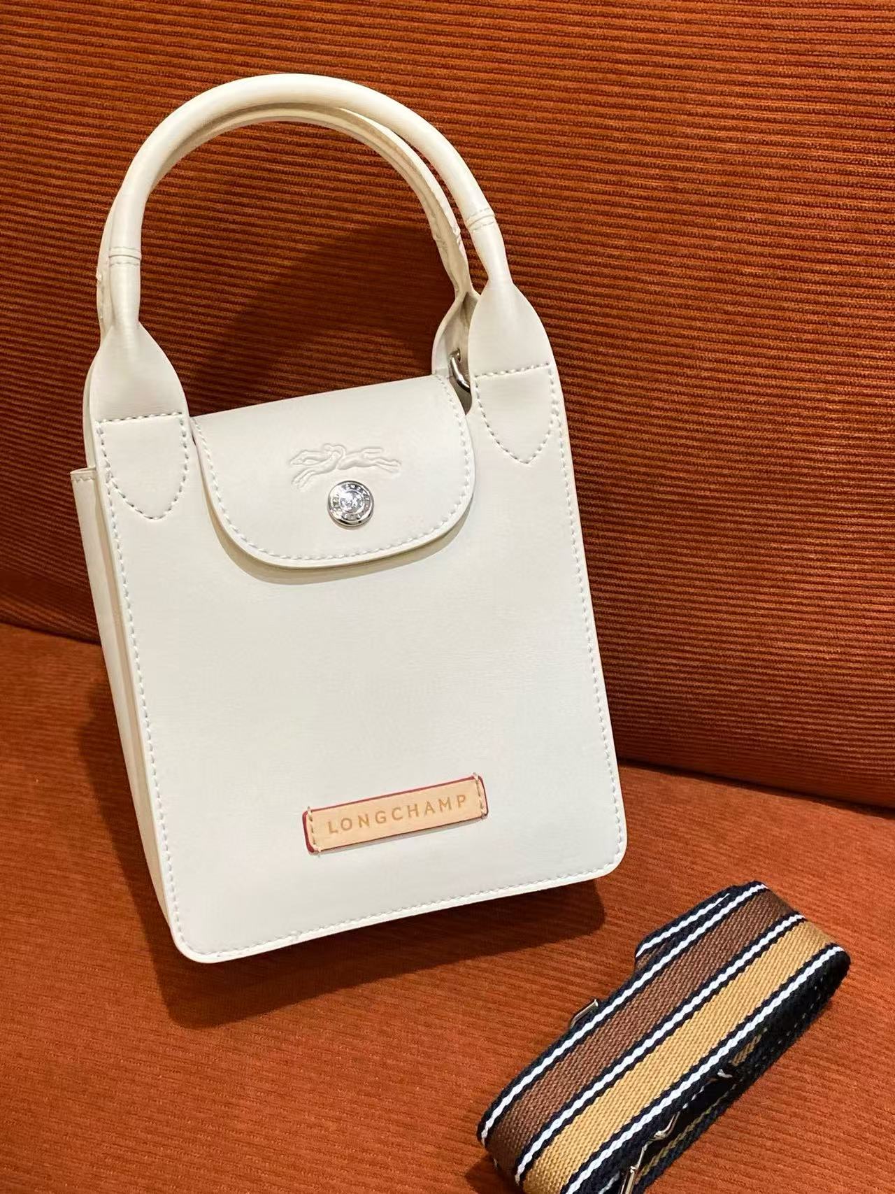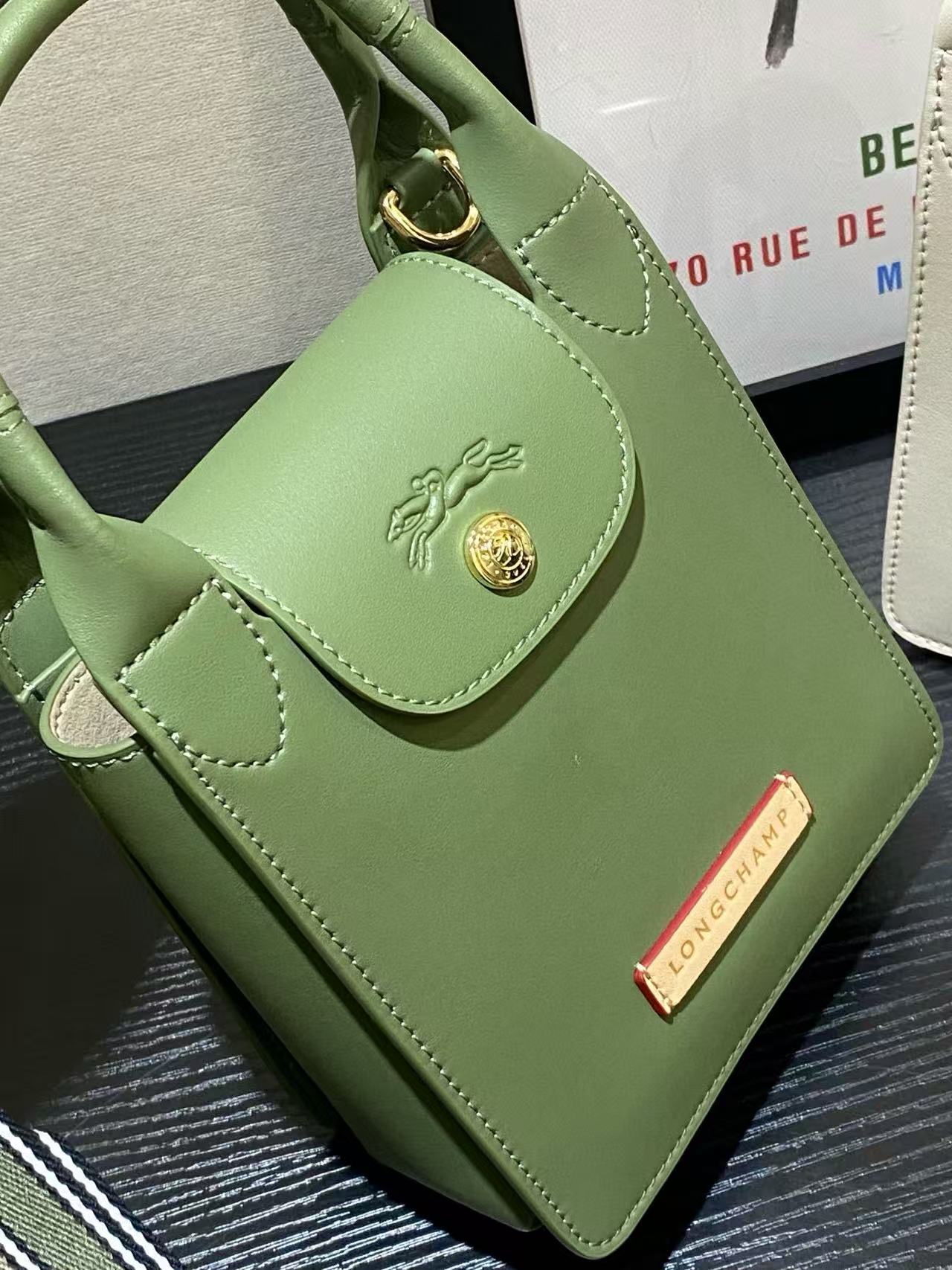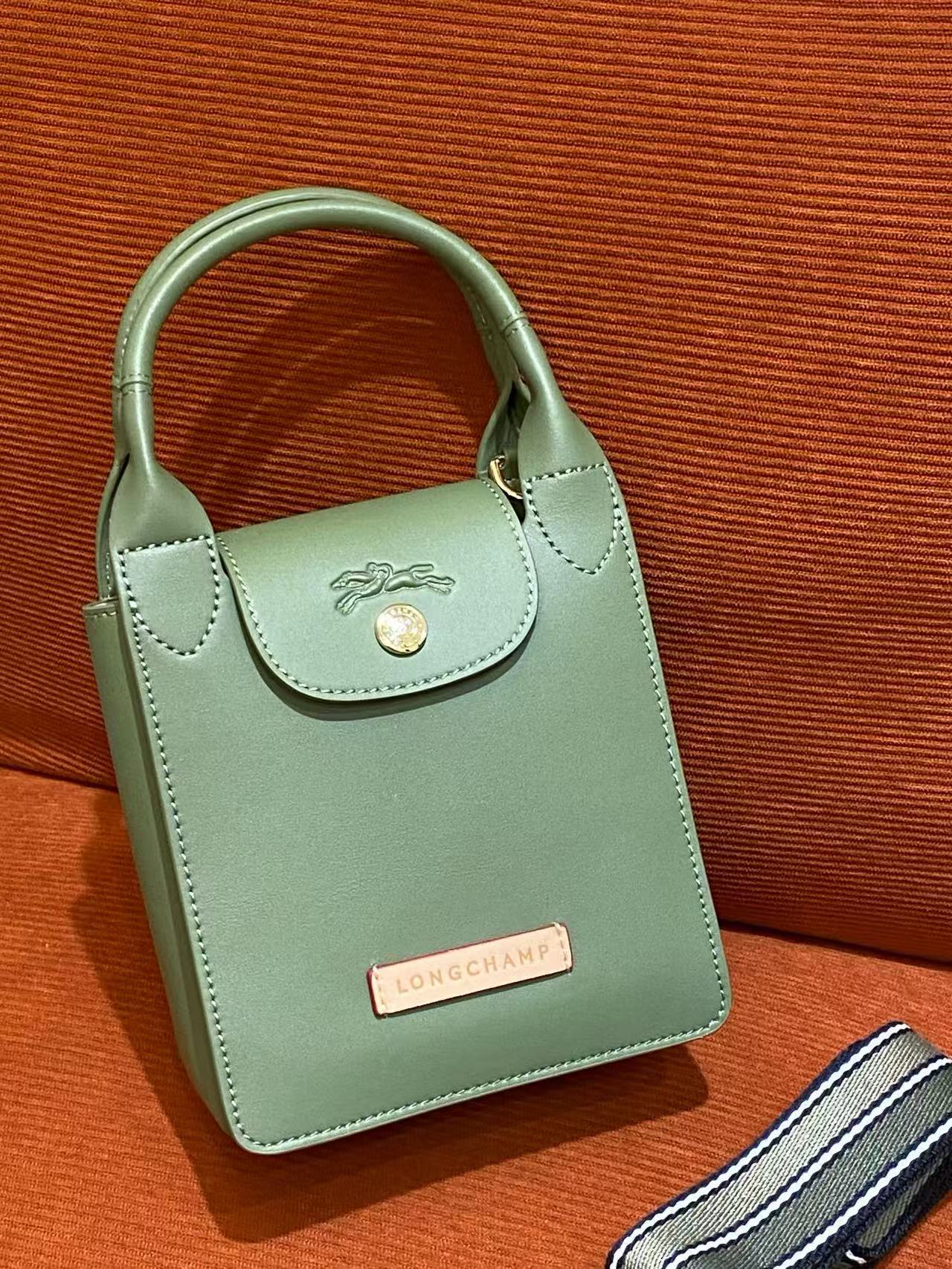 包款靈感來自園藝師圍裙,讓設計感不再只是都會俐落,而多了一份輕鬆愜意的生活氛圍。色系溫柔自然,給人一種療癒放鬆的視覺感受,搭配撞色皮革標籤與品牌經典logo壓印,處處展現品牌對細節的講究。