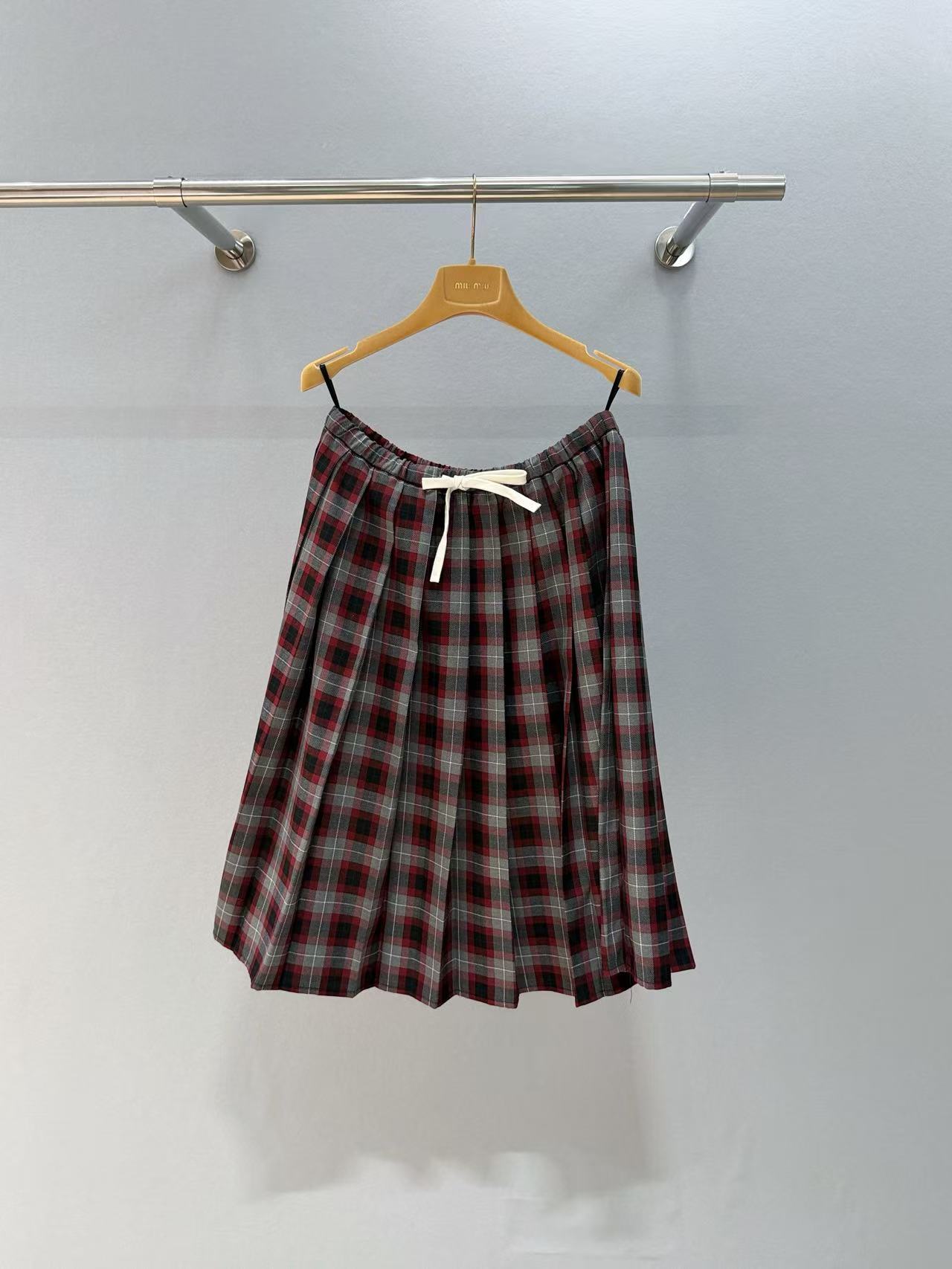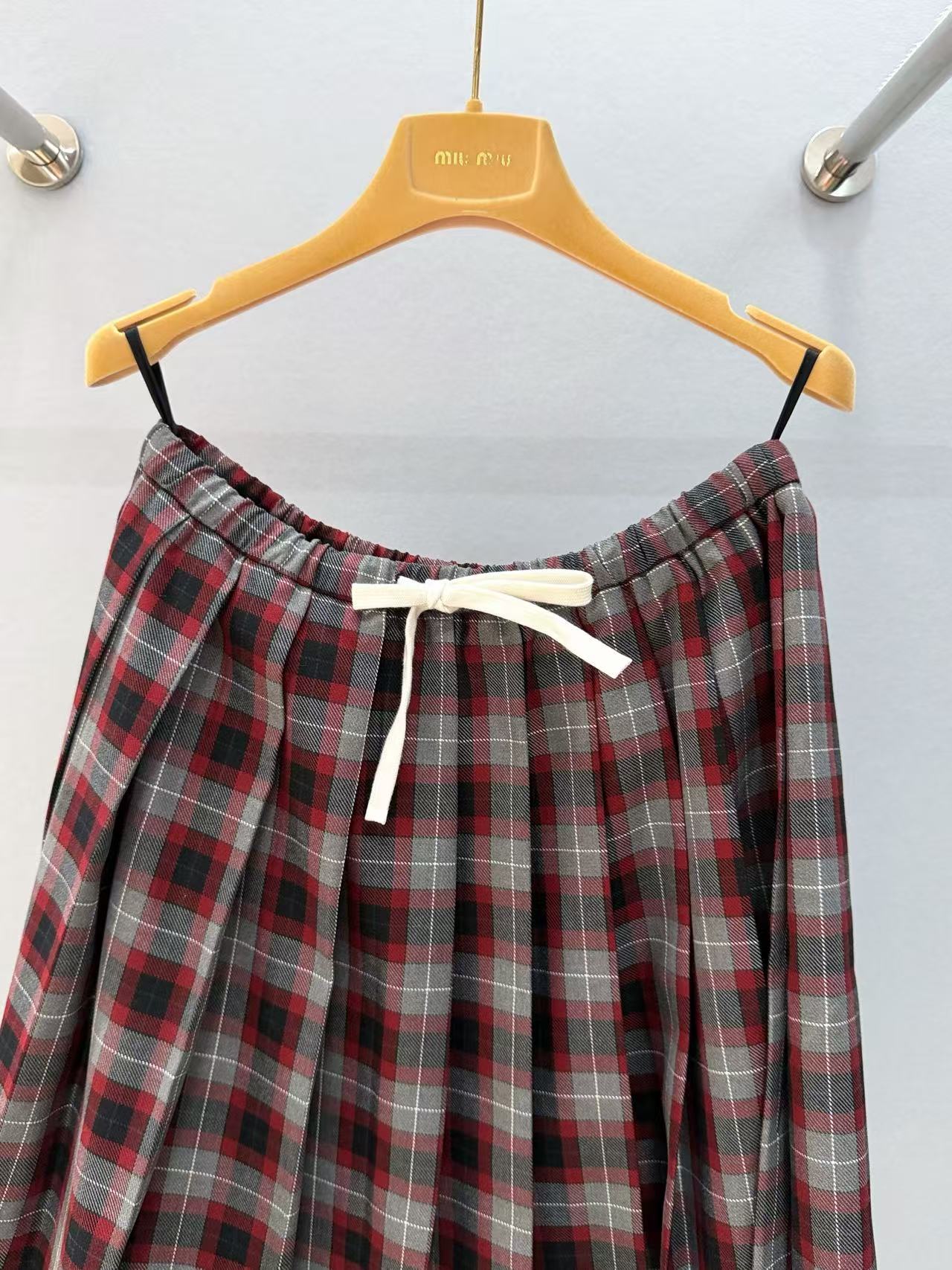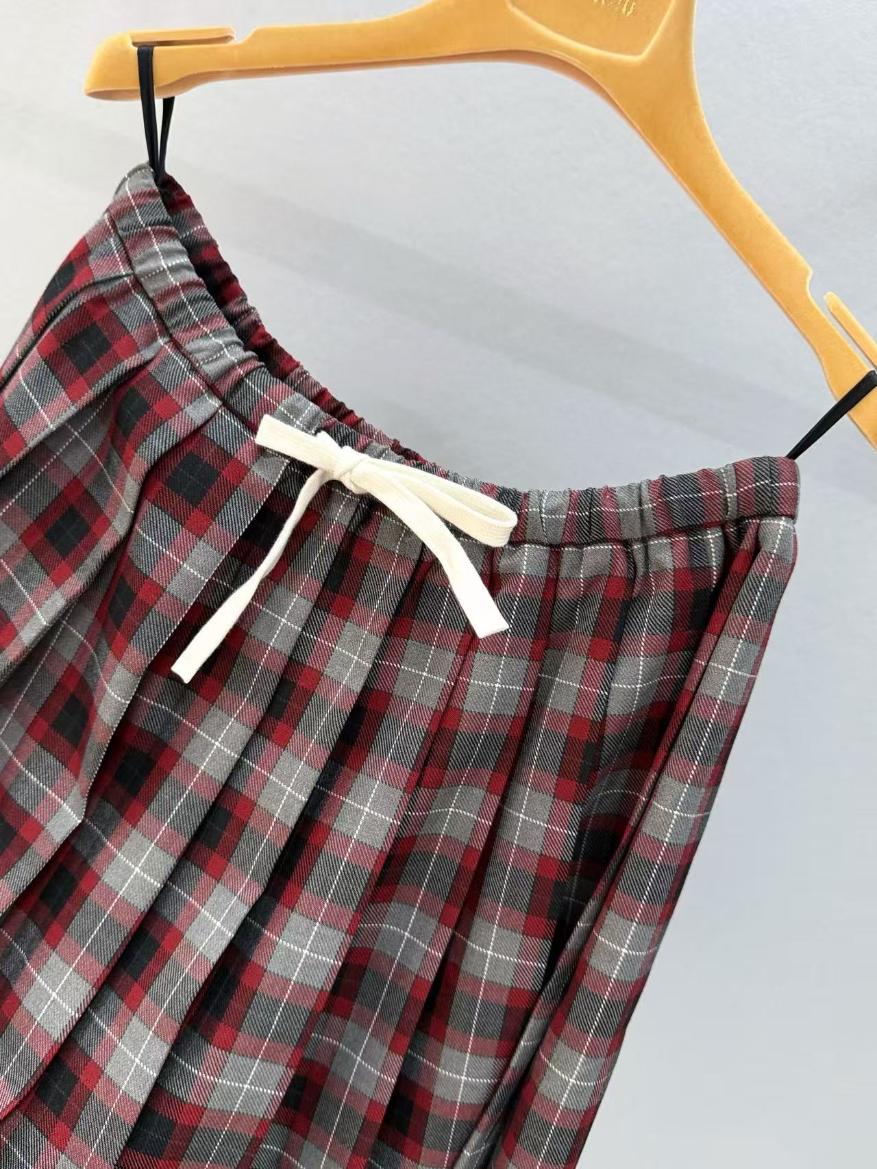 2025秋冬 Miu家 格紋百褶抽繩半裙