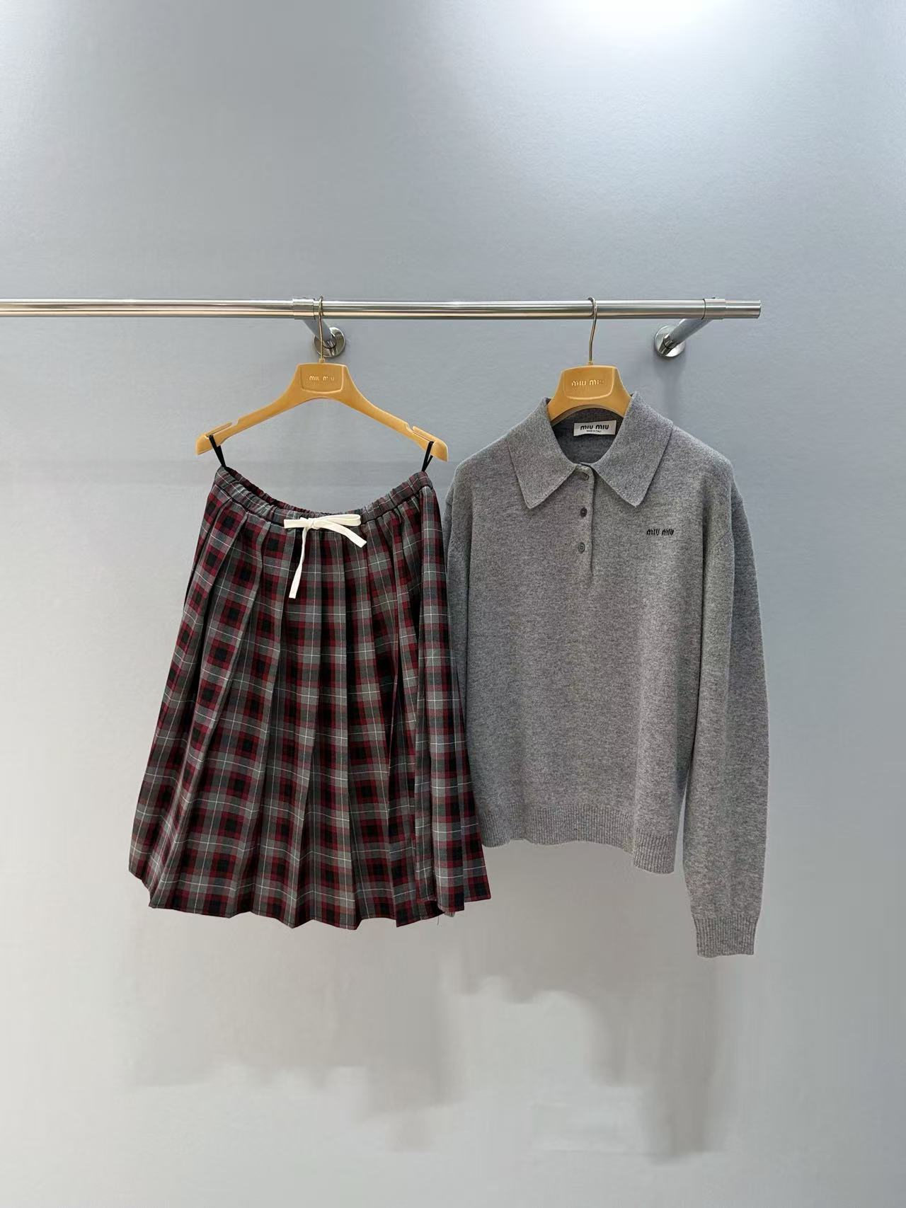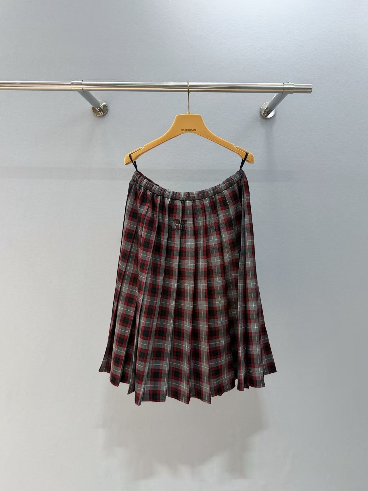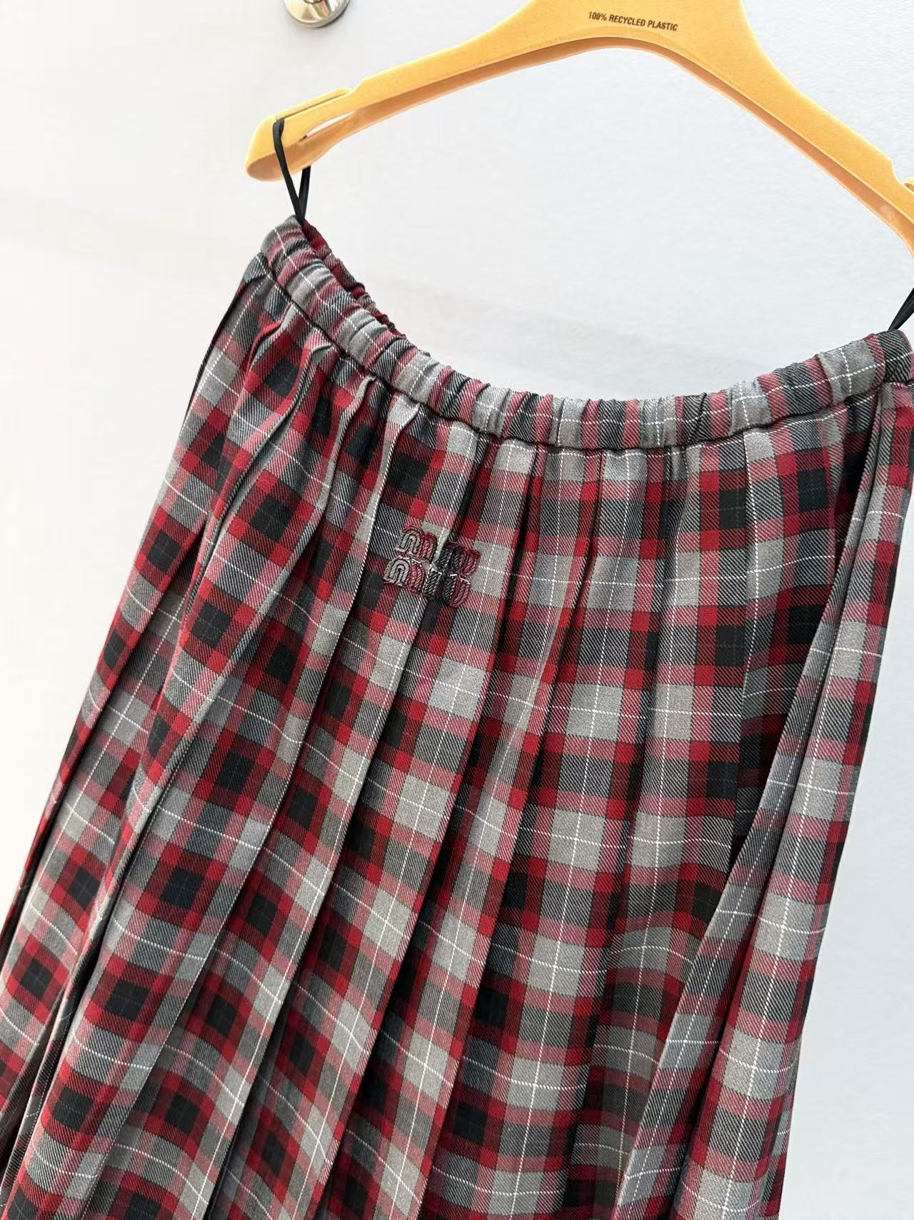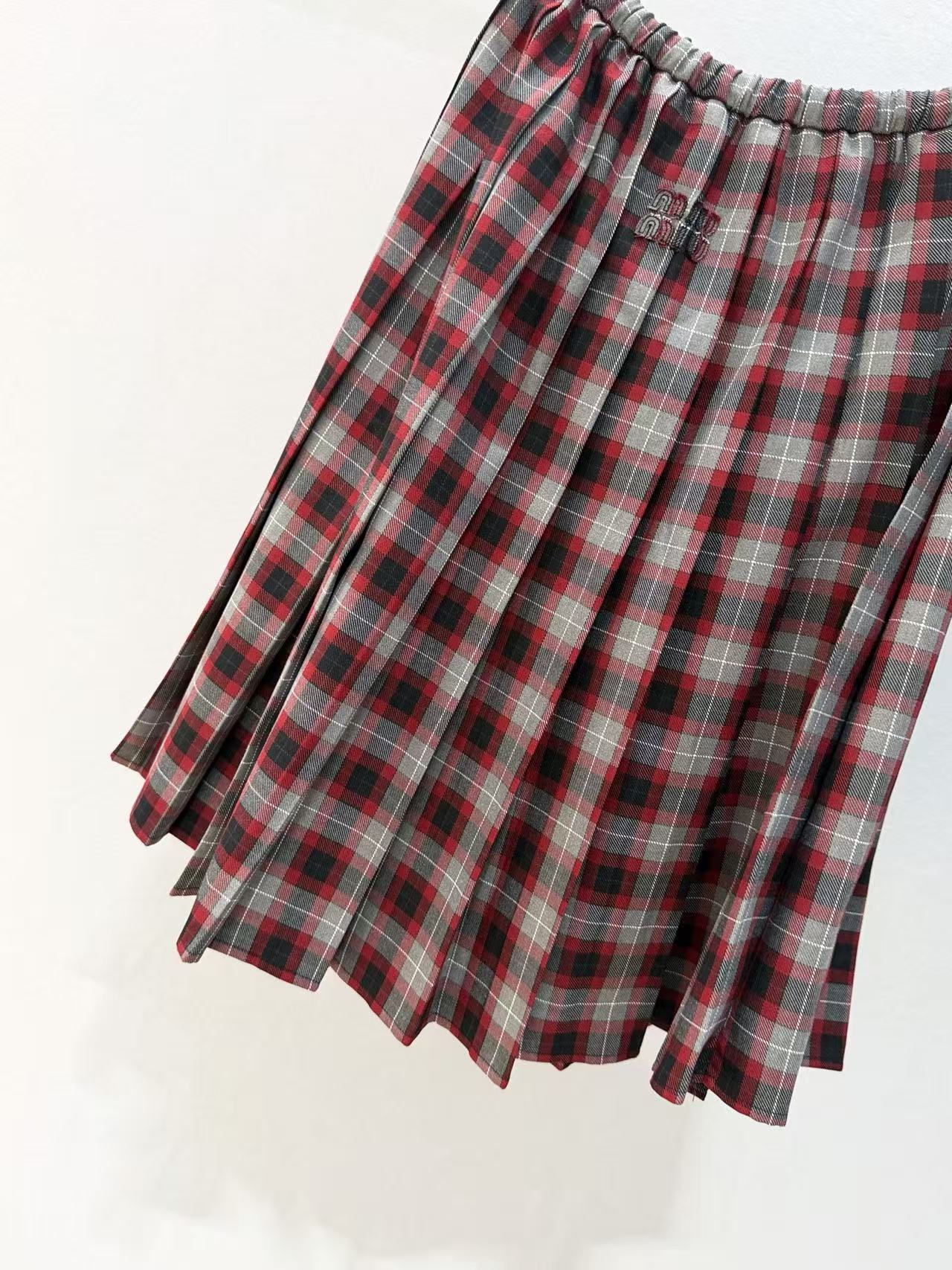 2025秋冬 Miu家 格紋百褶抽繩半裙