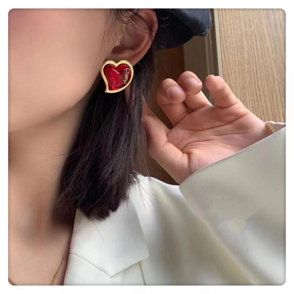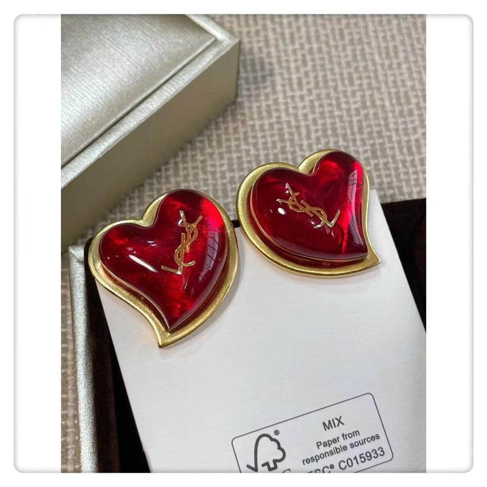 2022春夏 YSL紅愛心耳釘