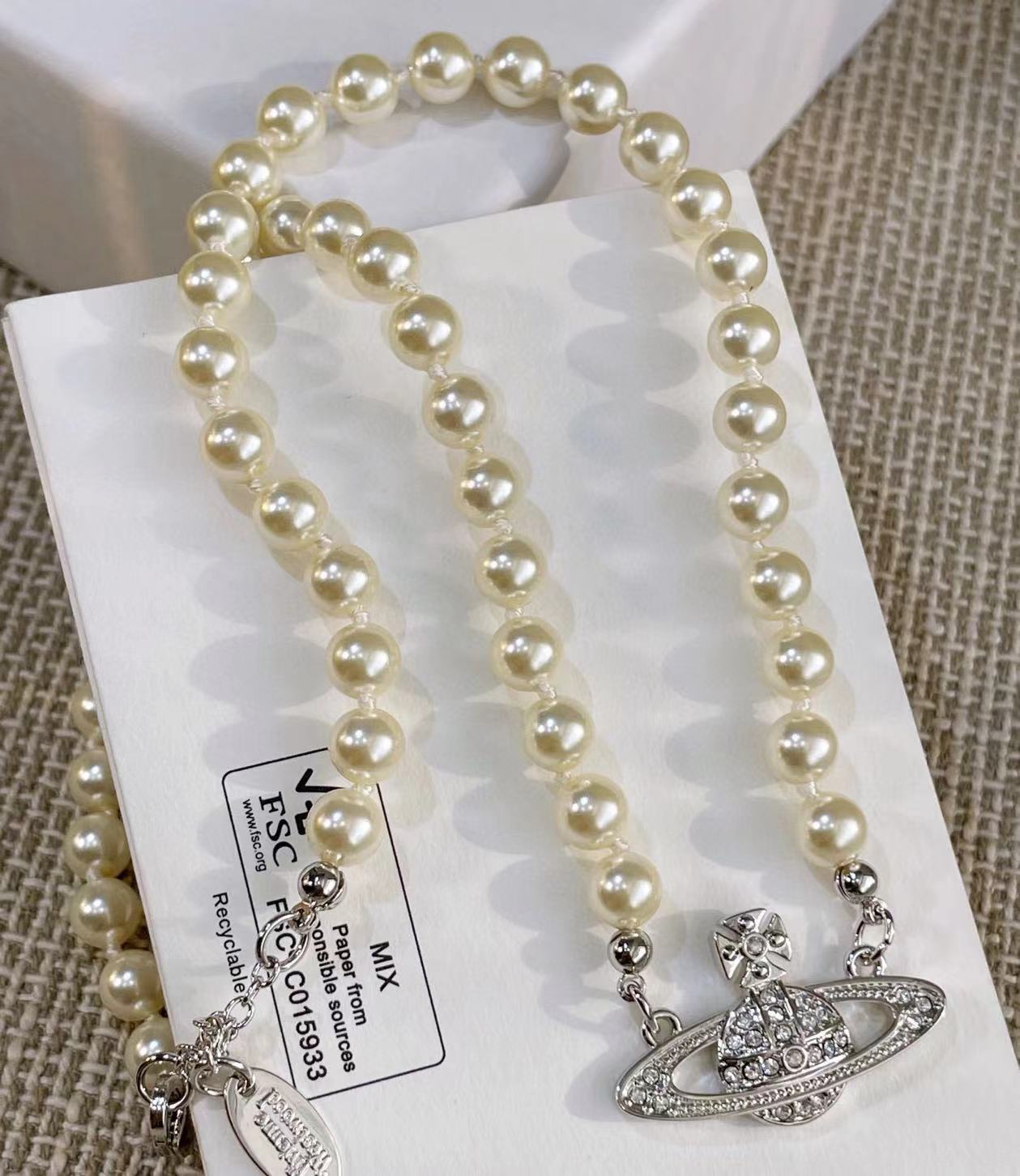 VW家土星水鑽珍珠項鏈