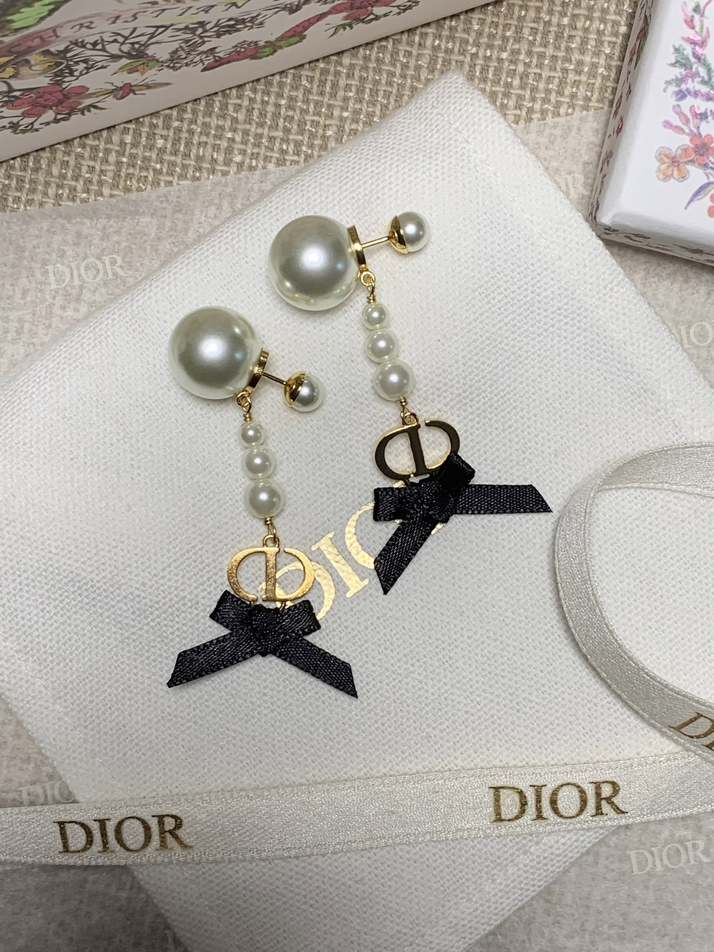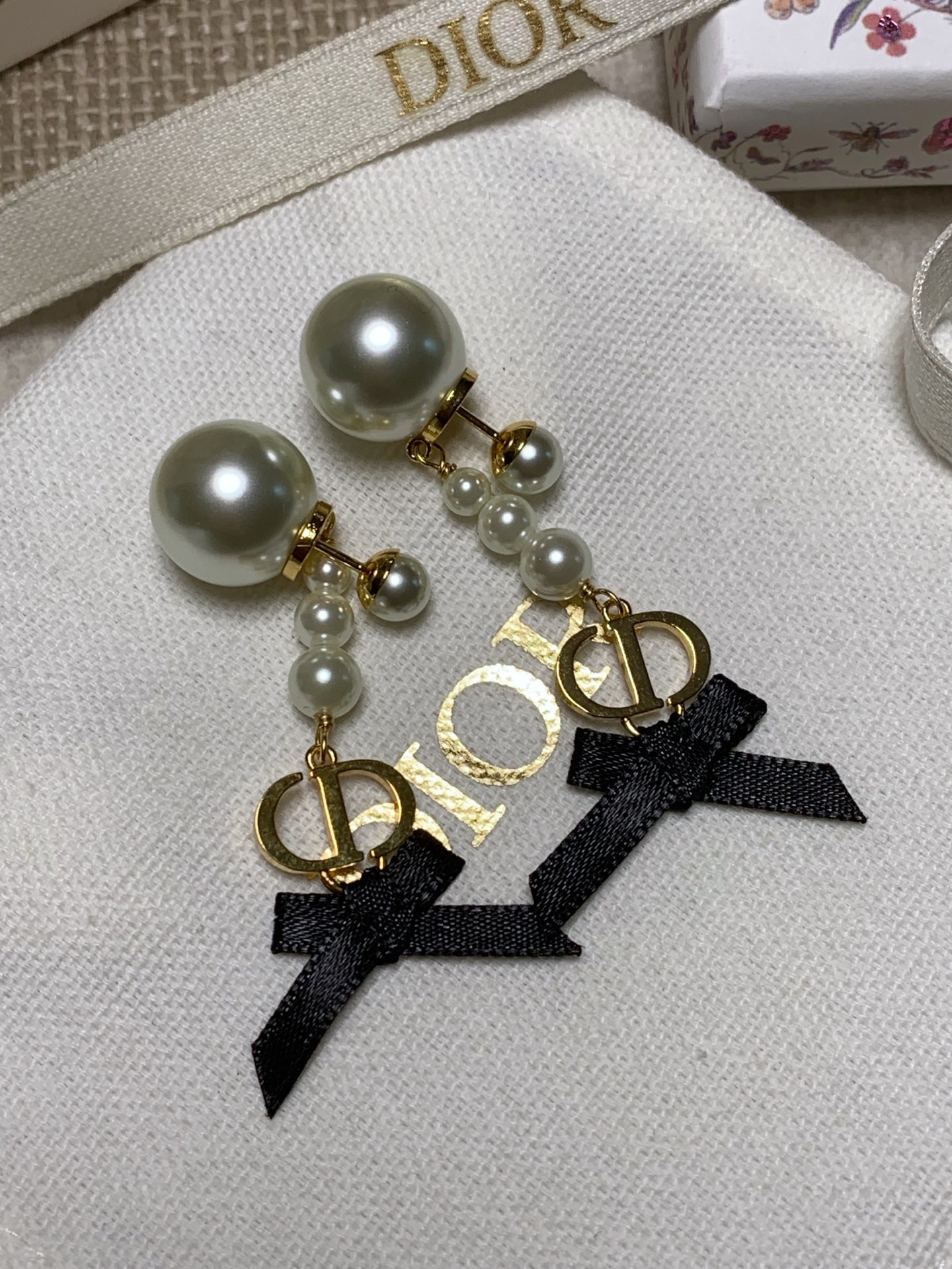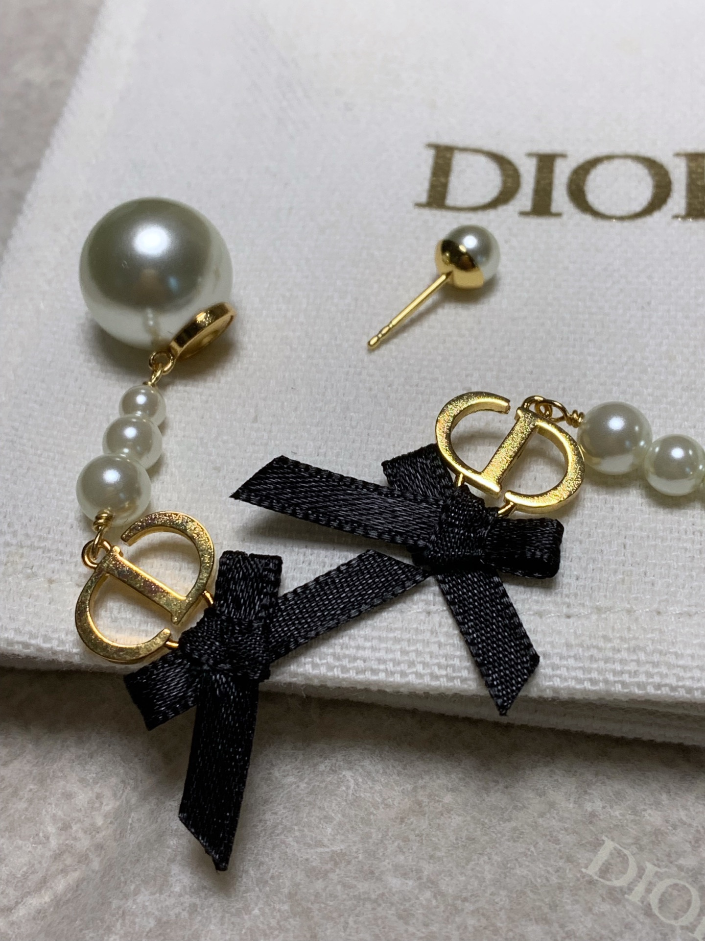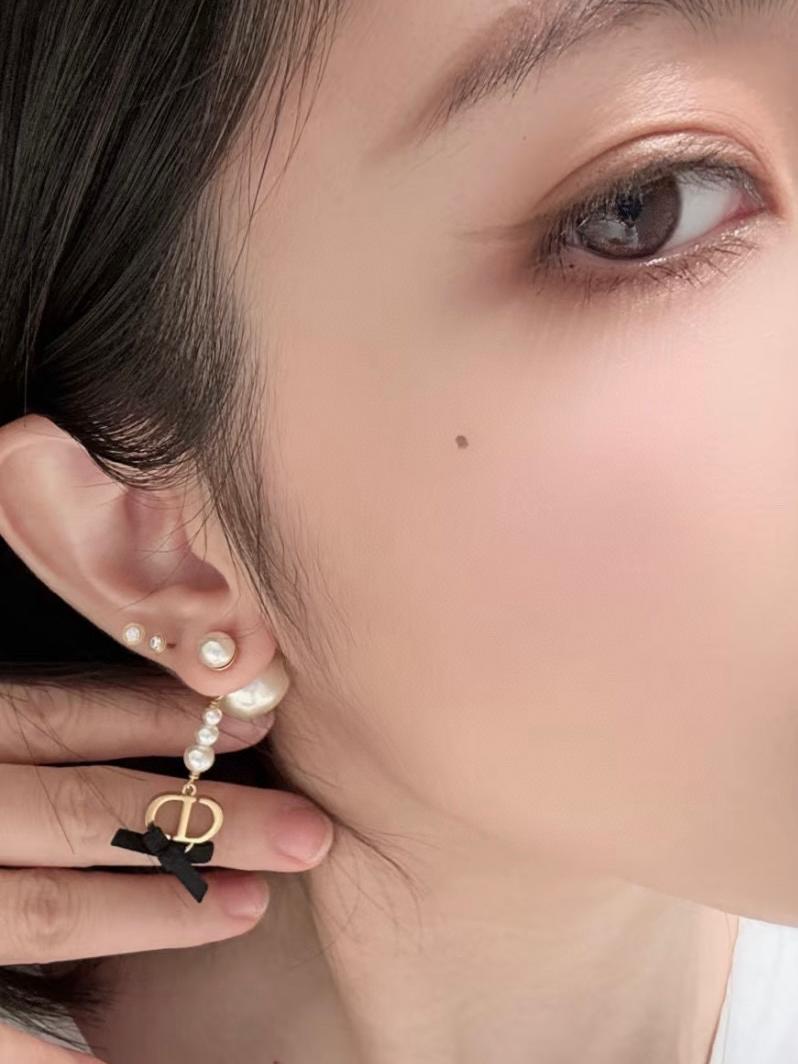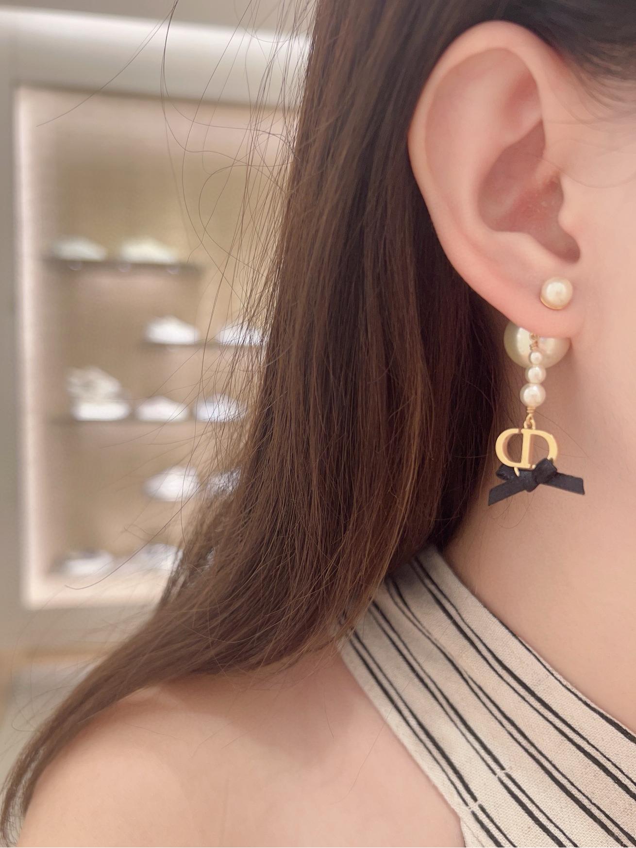 2025早春新品 CD家 黑色蝴蝶結珍珠耳環