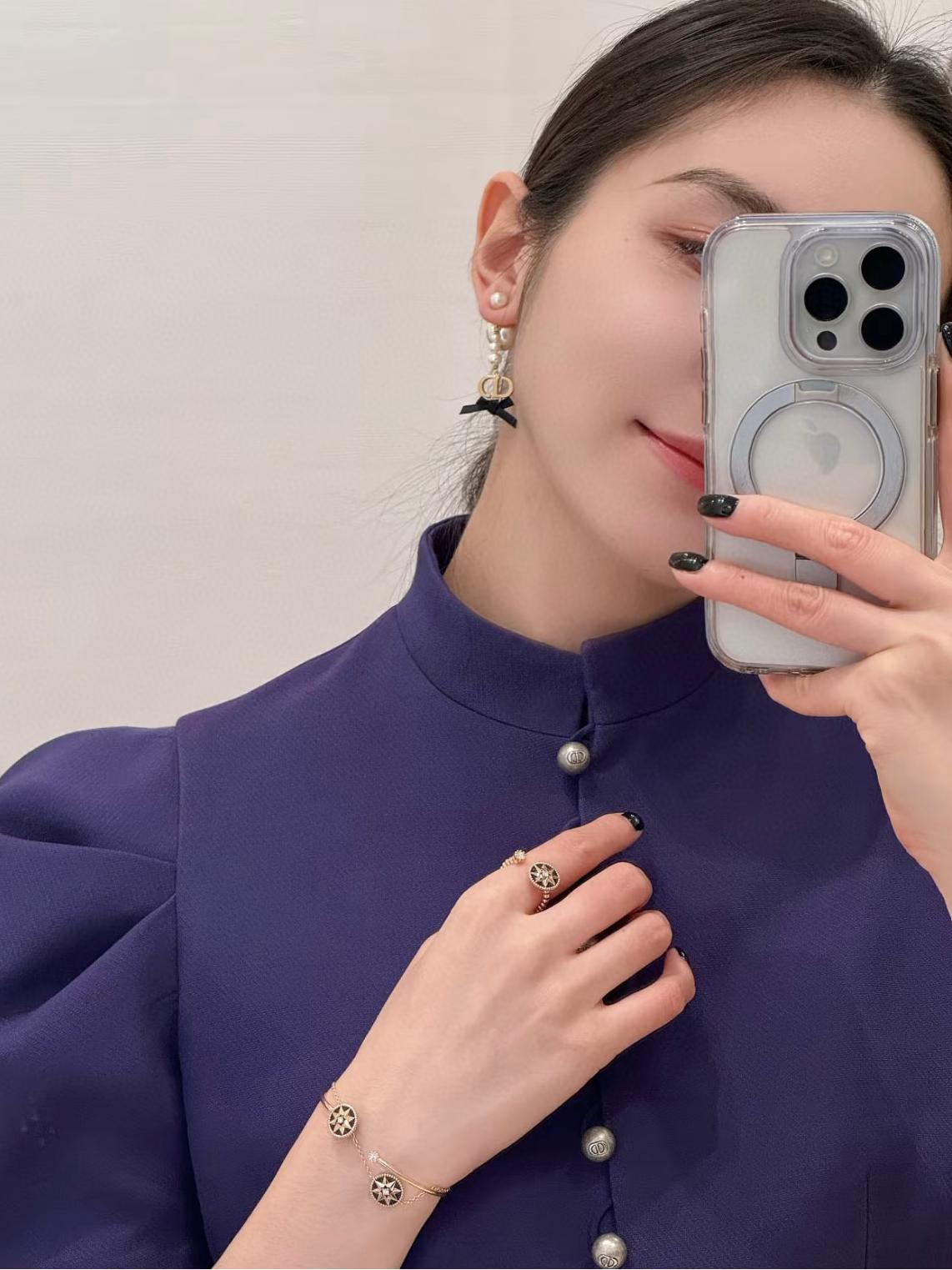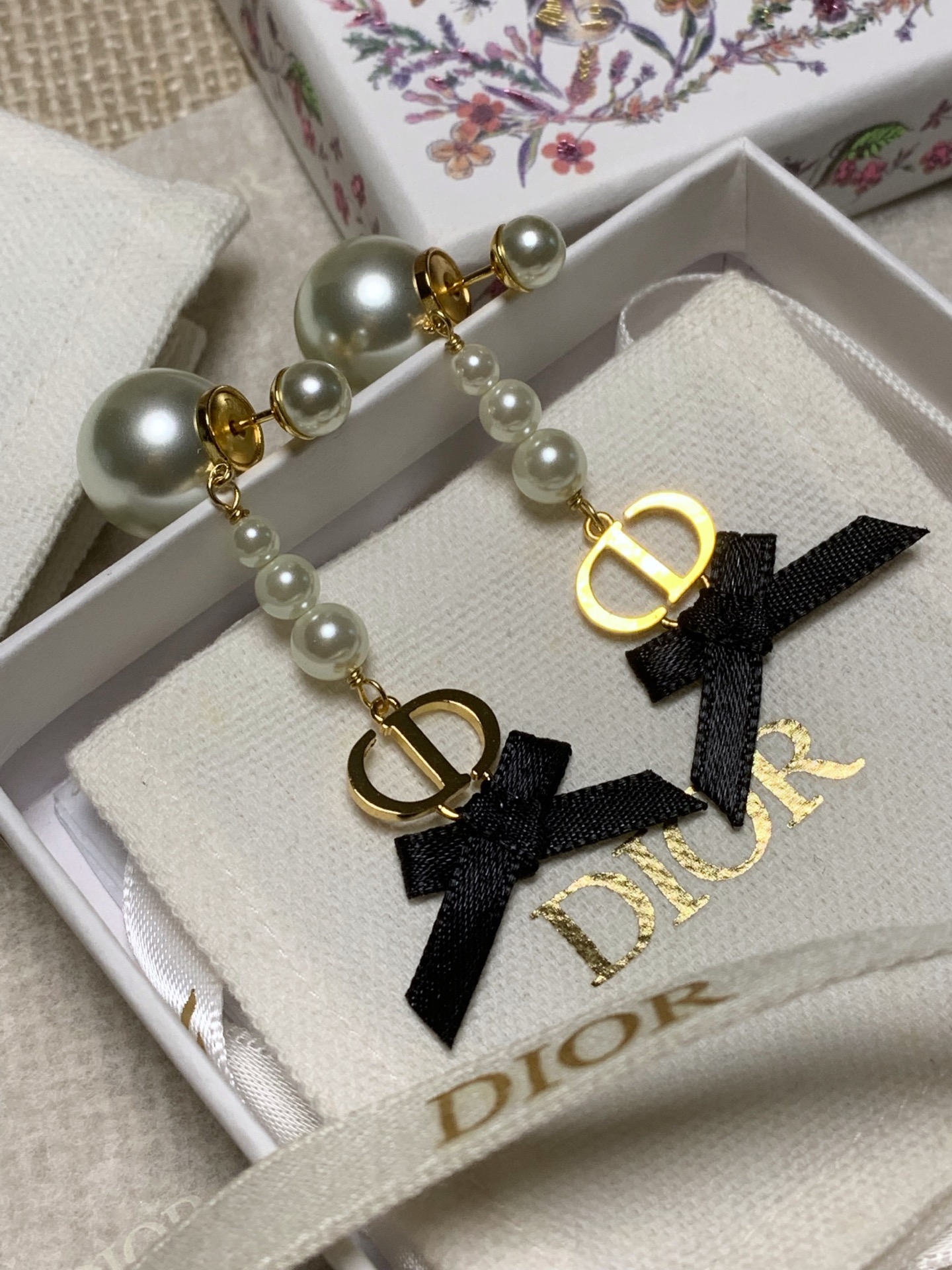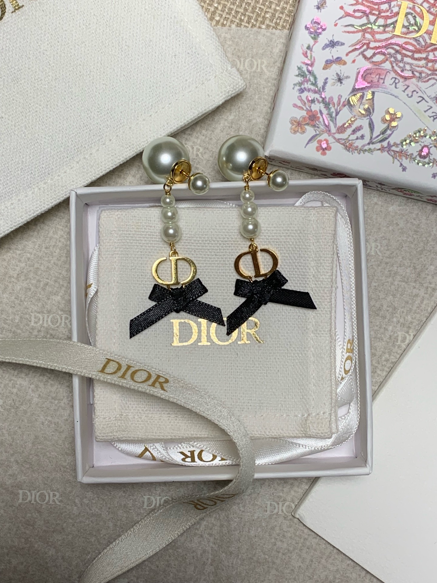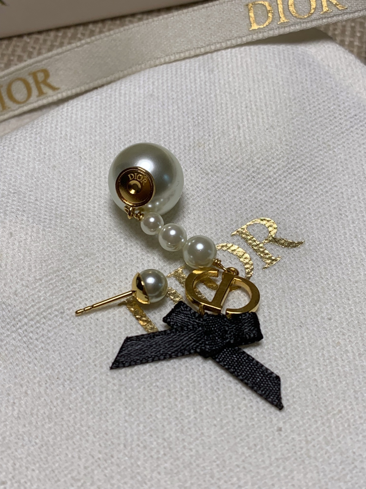 2025早春新品 CD家 黑色蝴蝶結珍珠耳環