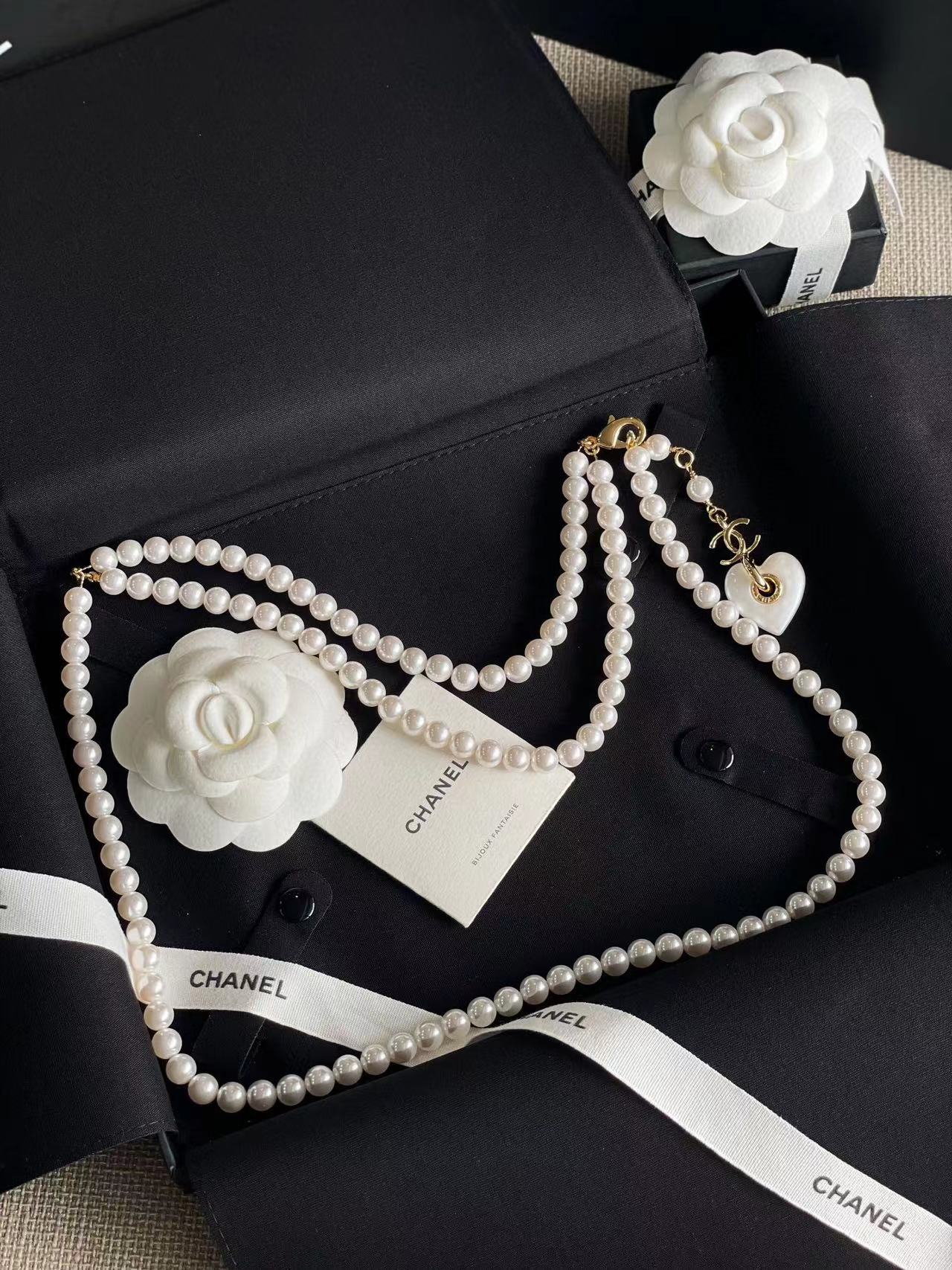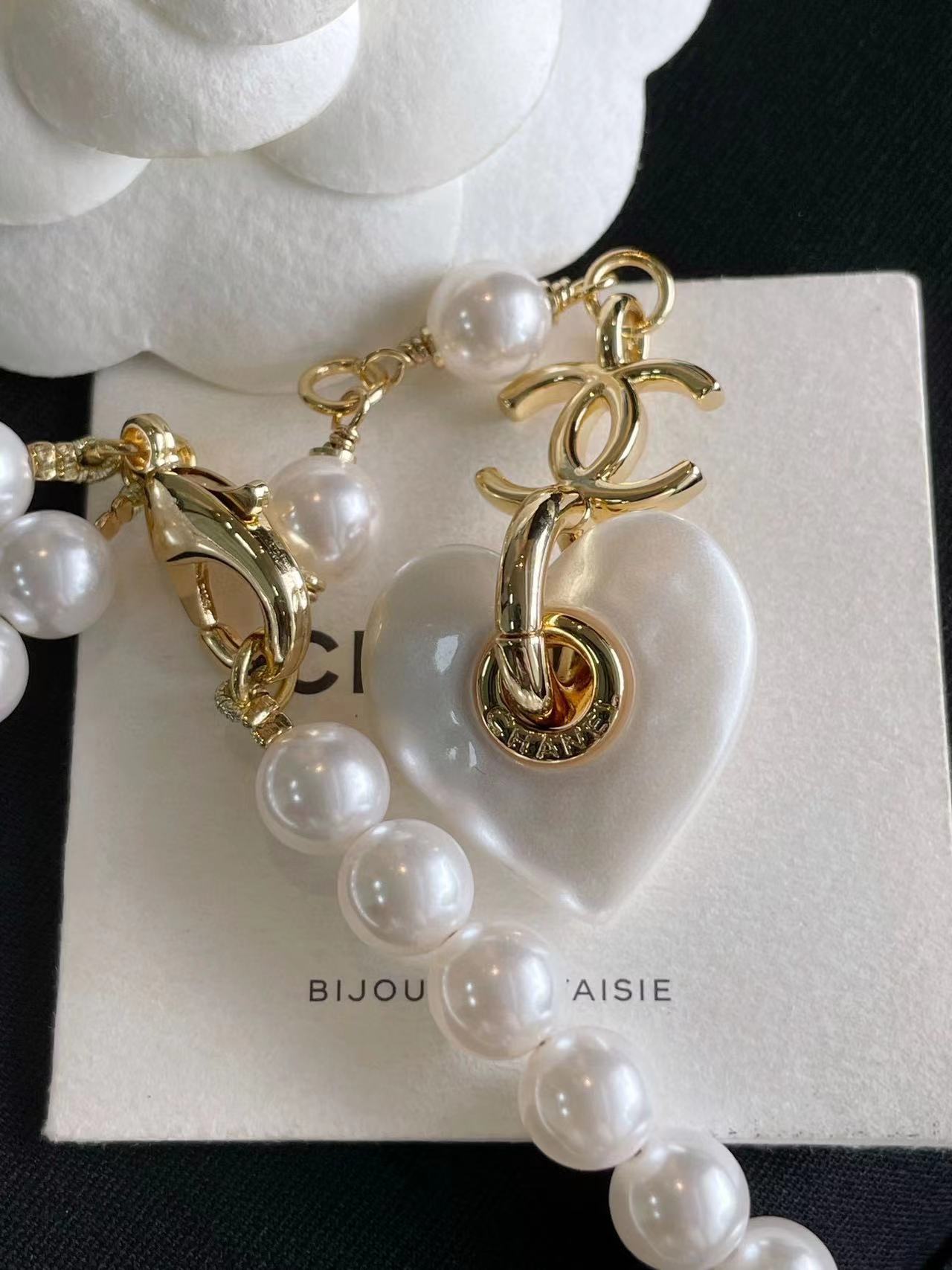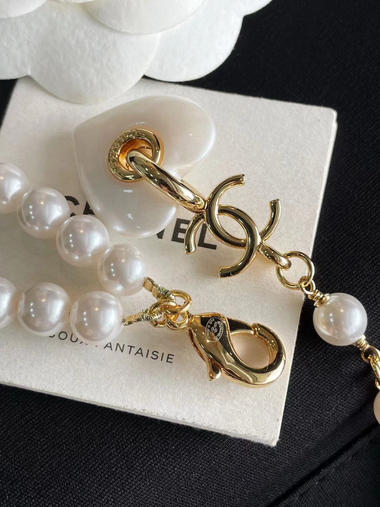 2024春夏 C家雙C白色愛心珍珠腰鏈