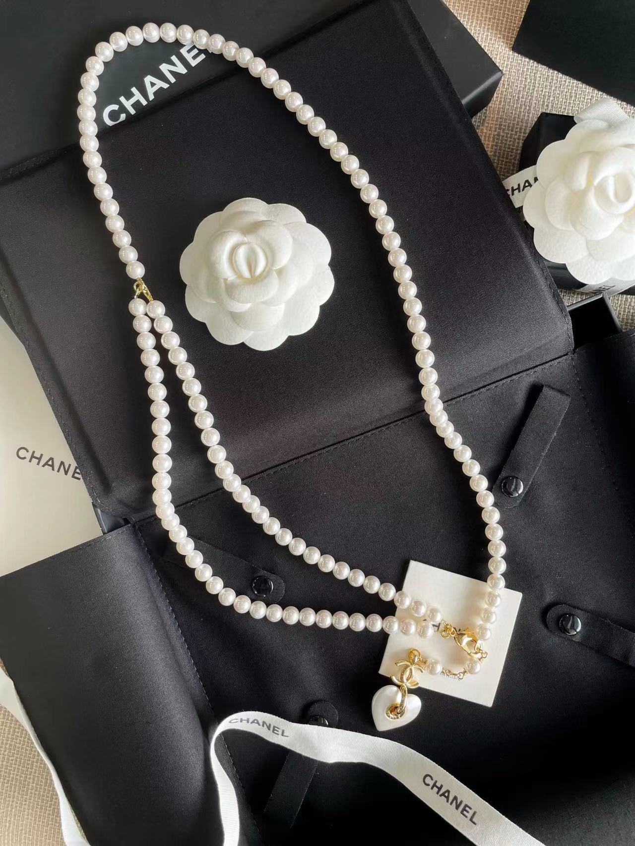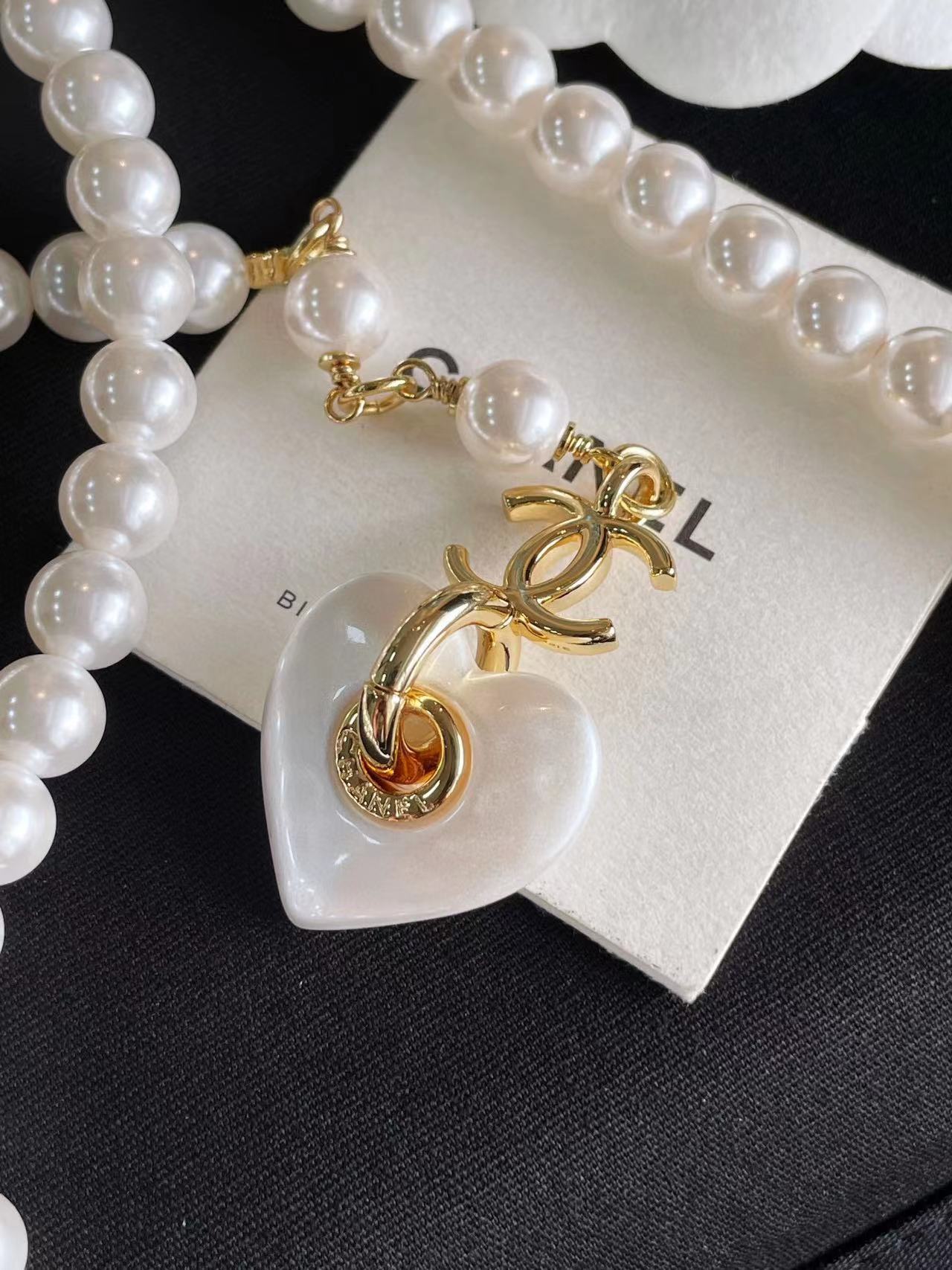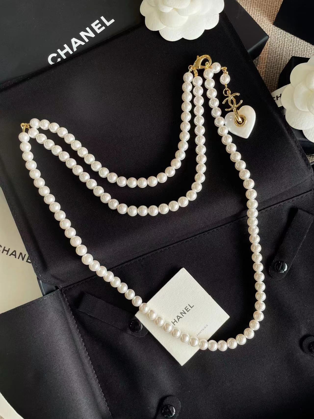 2024春夏 C家雙C白色愛心珍珠腰鏈