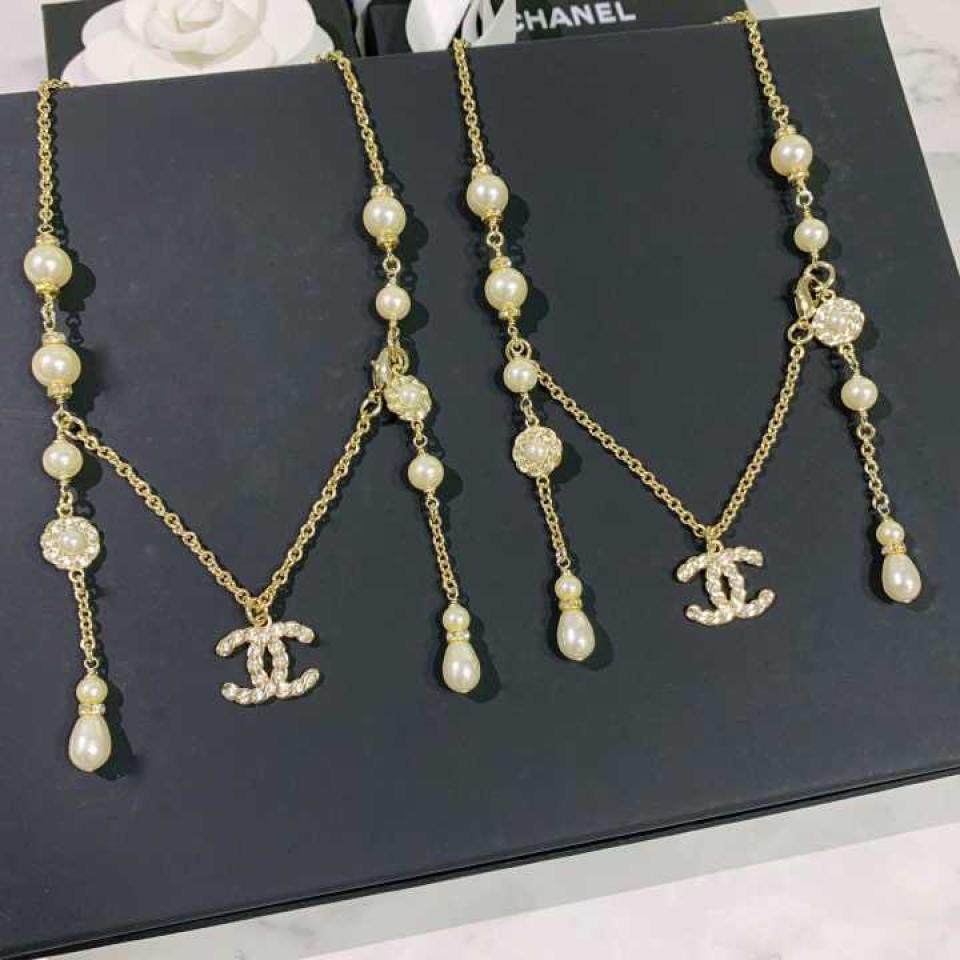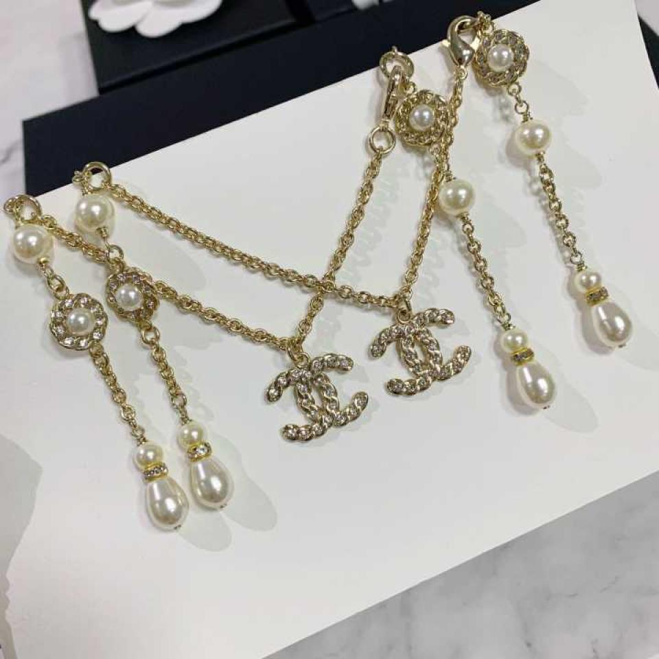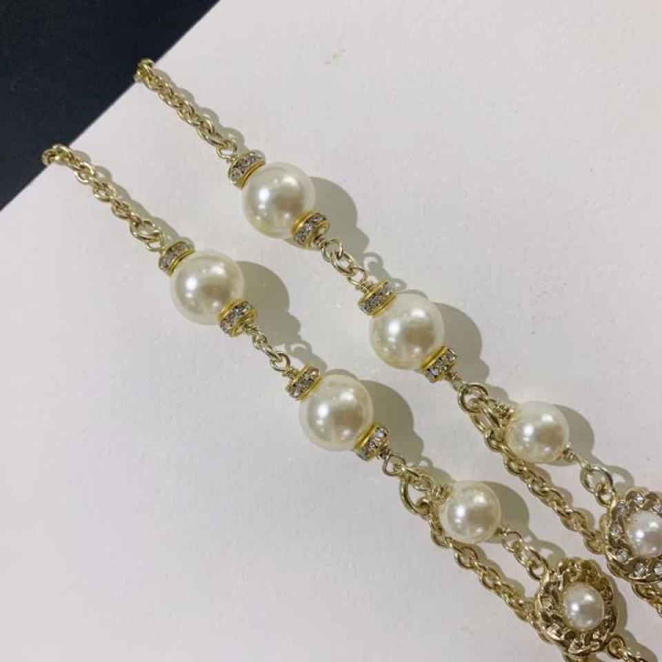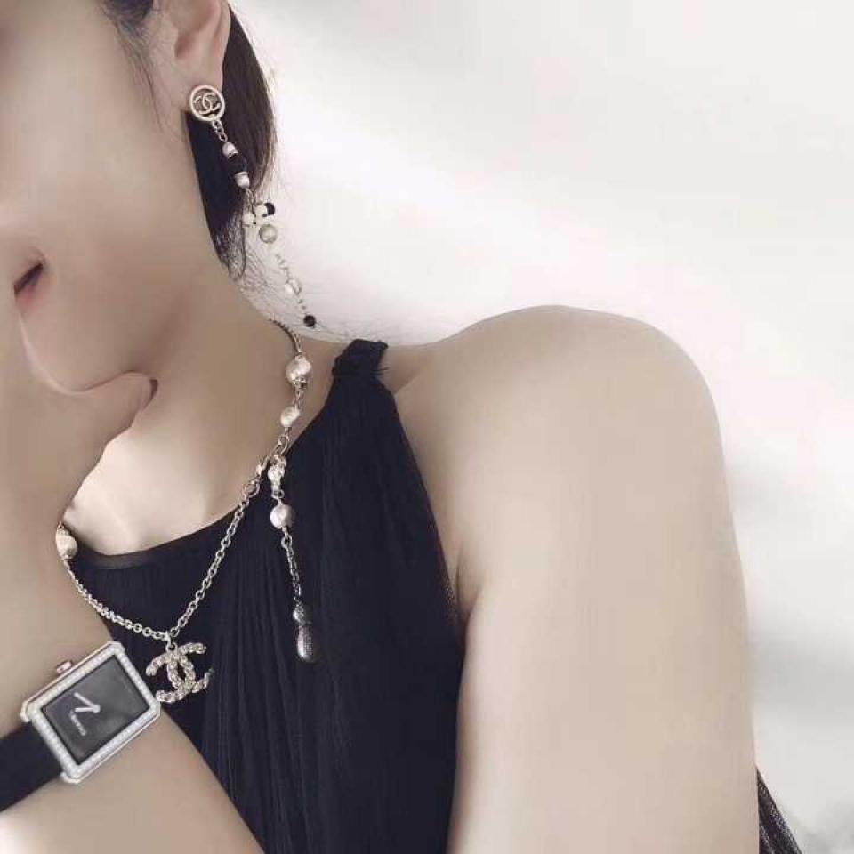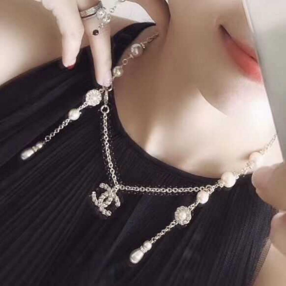 美到窒息 水鑽雙C搭配珍珠項鍊 經典百搭
