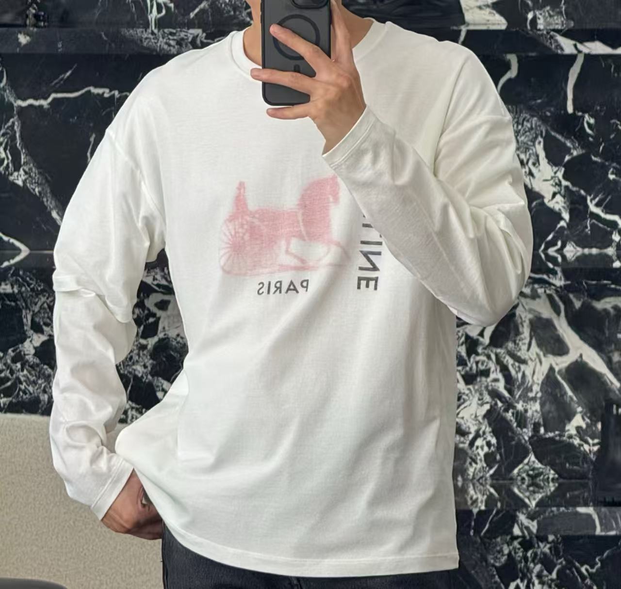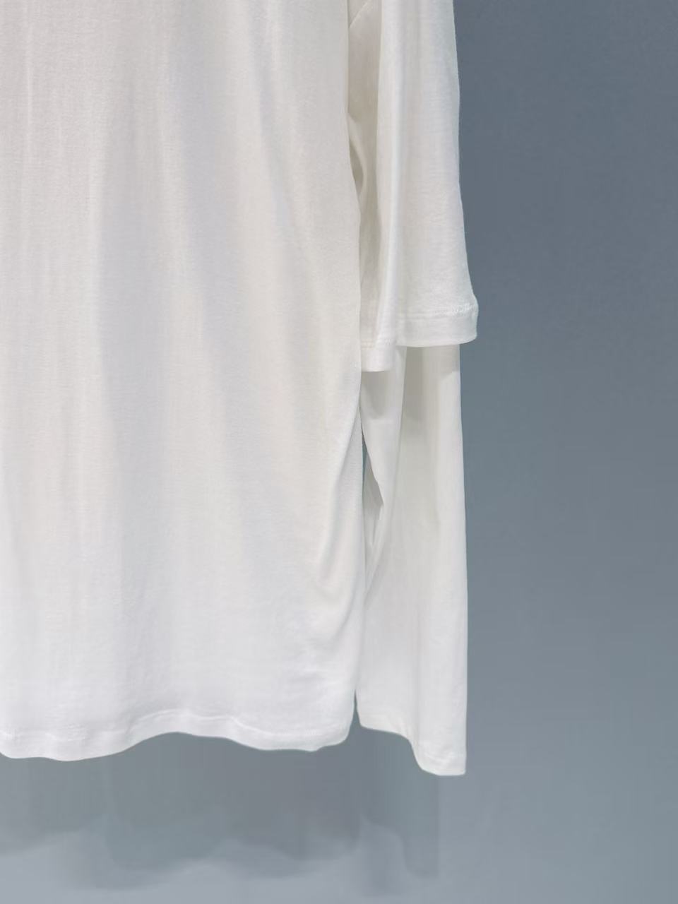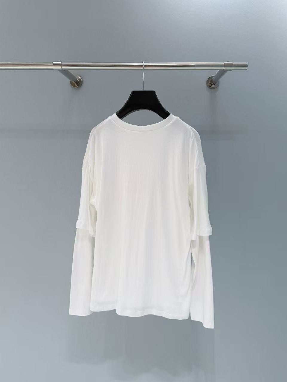 。這種「雙層設計」讓簡約的長袖多了一份精緻感與層次美。整體走的是法式高級簡潔風,簡單搭一件牛仔褲就能輕鬆穿出時髦感。