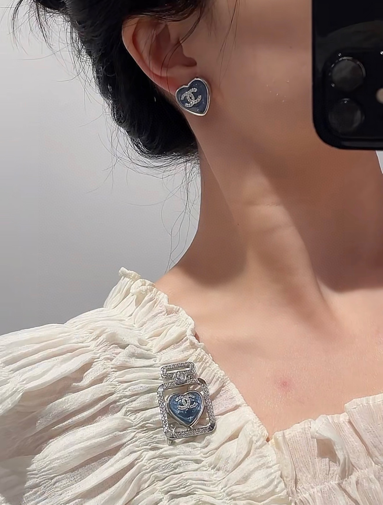 2025春夏新品 C家 𝟮𝟱𝗣藍/粉心小號耳釘