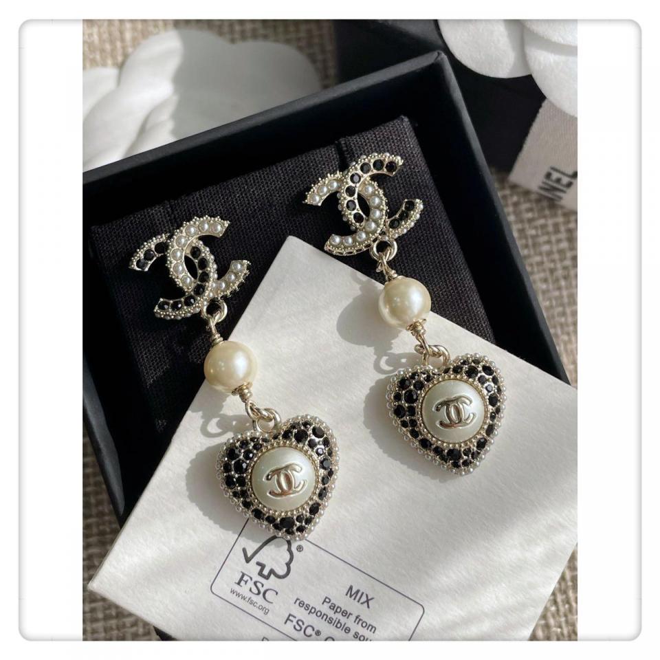 2022秋冬 C家雙C吊珠愛心耳環