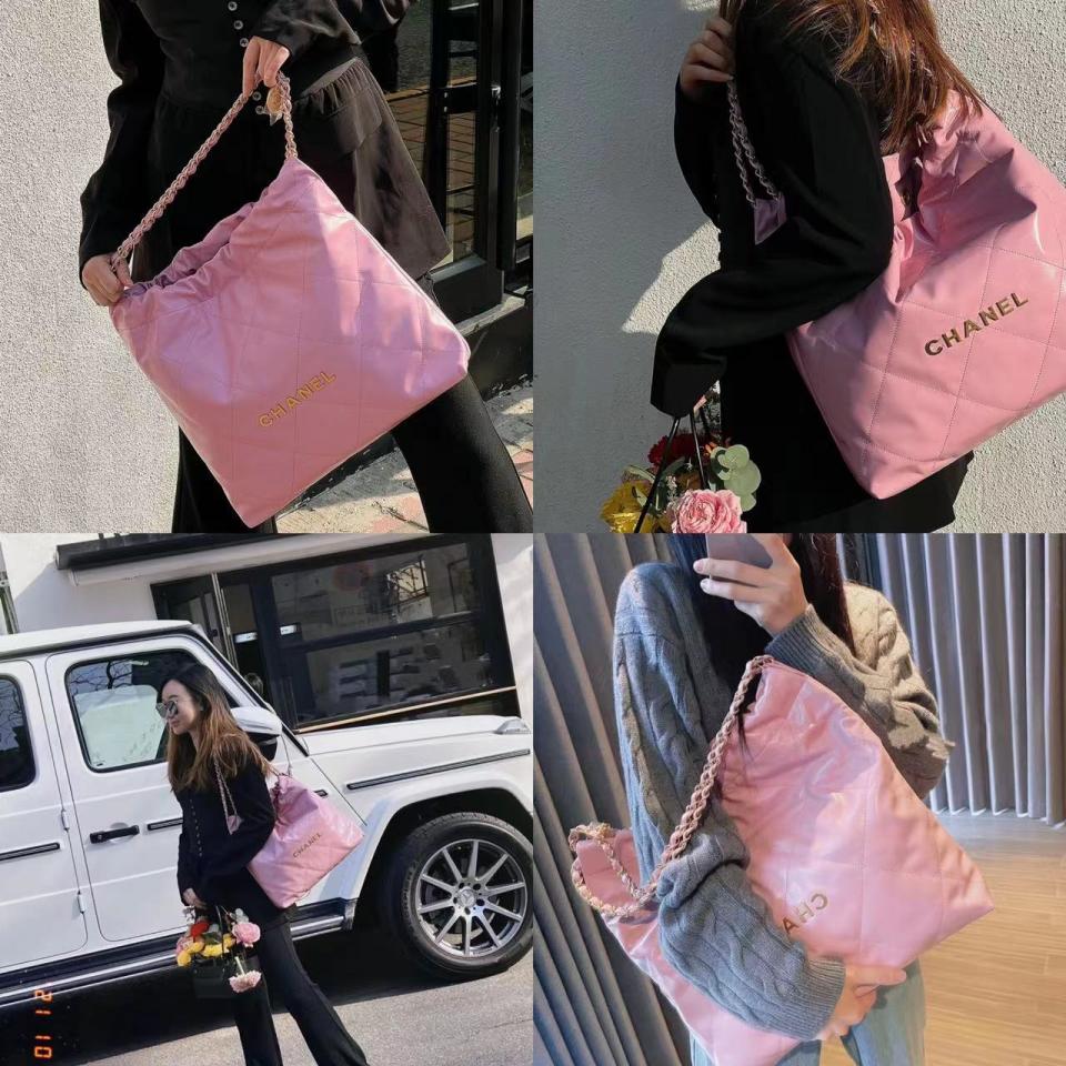 2022春夏新品 超級火爆款 22bag字母單肩購物袋 淺粉色(中號)