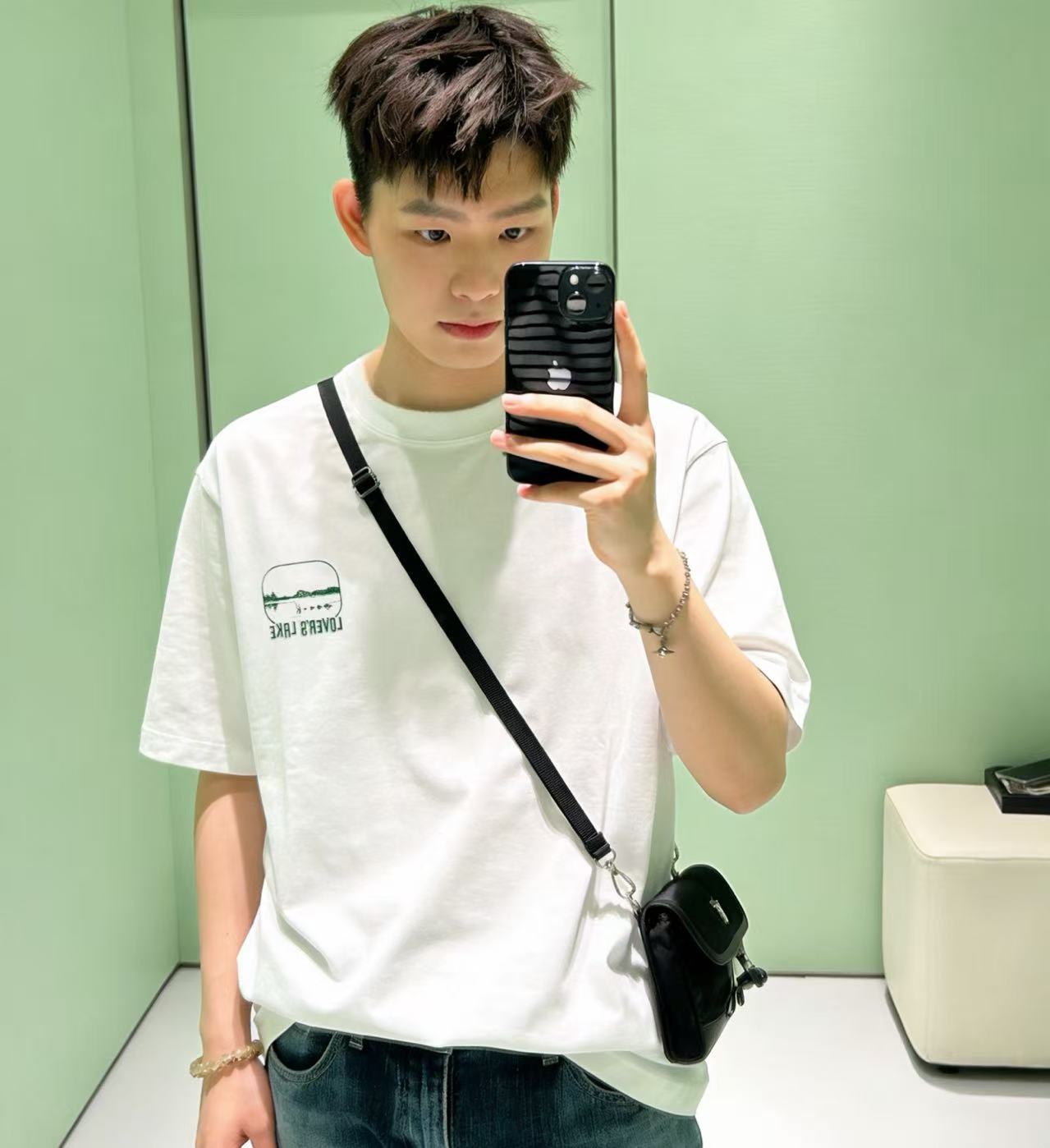 ✨ 設計亮點:湖畔藝術印花與針織三角形徽標