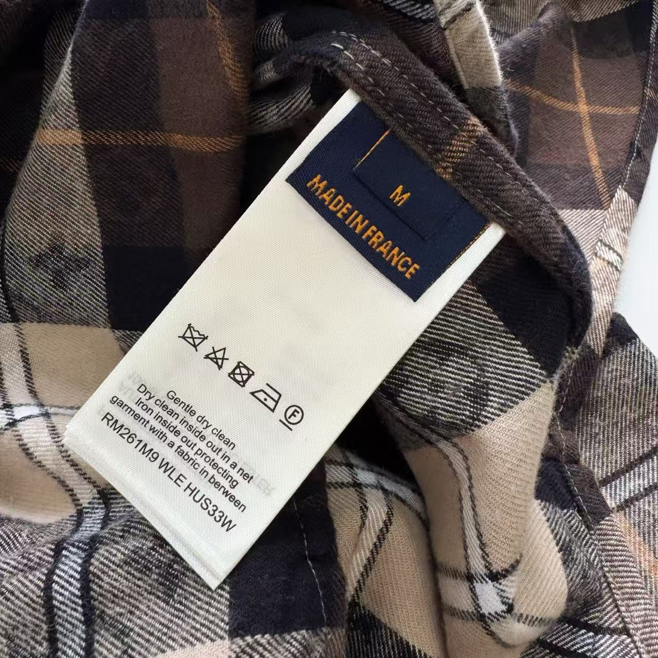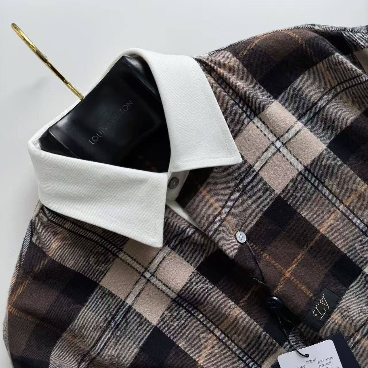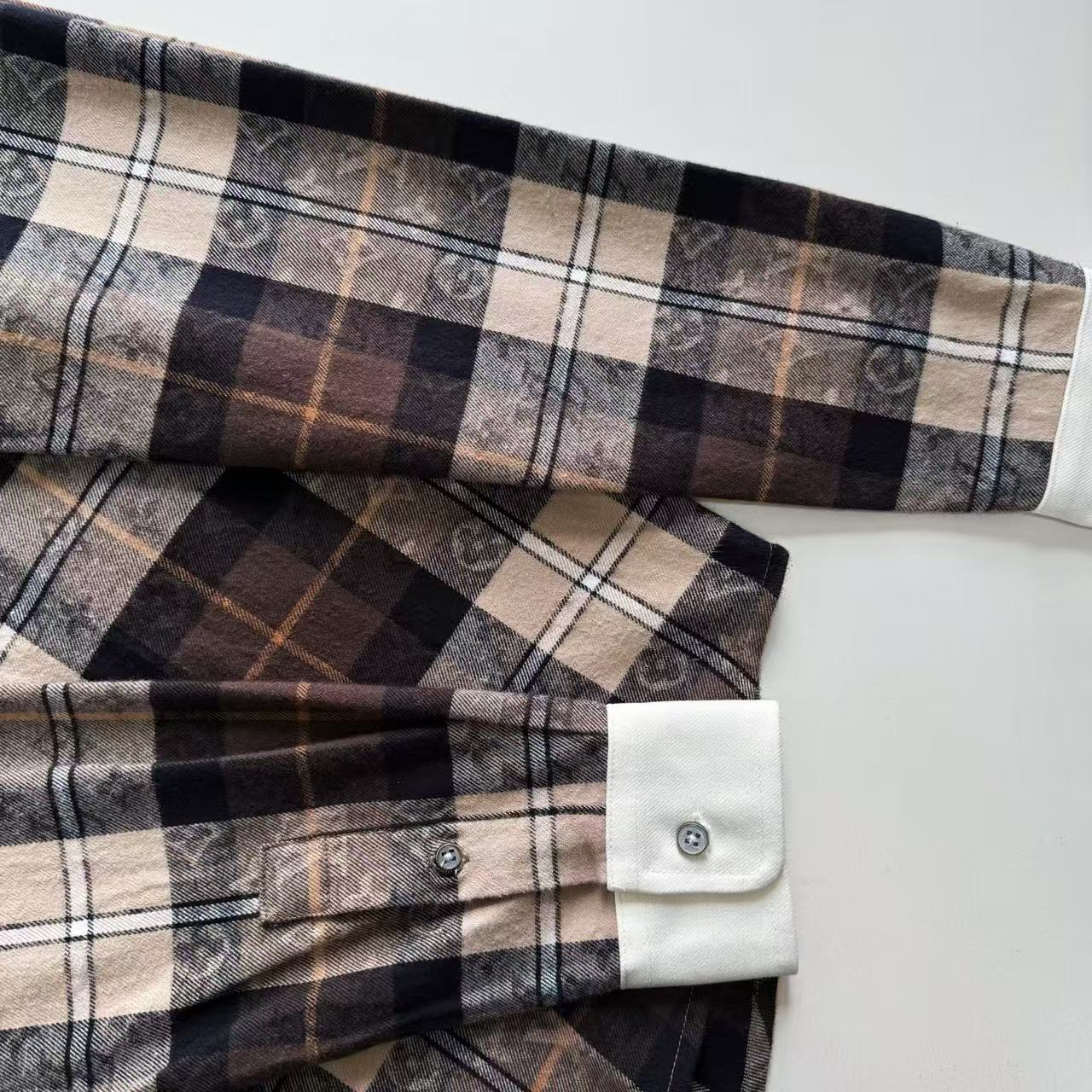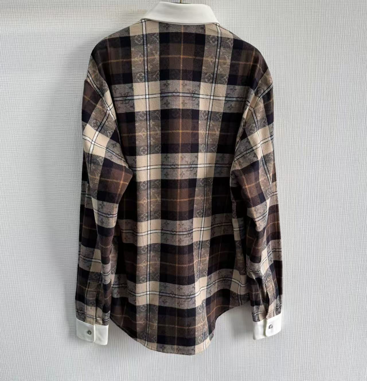 這款長袖襯衫以直筒翻領寬鬆版型為基調,線條俐落、結構感強,輕鬆修飾身形比例。Monogram格紋提花是最大亮點,全身對格對紋,紅外線激光定位+人工手工裁剪,每塊裁片嚴格對版,確保圖案精準無誤、層次分明。合金思孔包扣開模定制,開合間散發高級光澤。無論單穿還是內搭T恤,這件襯衫都能為你的造型注入滿滿的格紋層次風情!