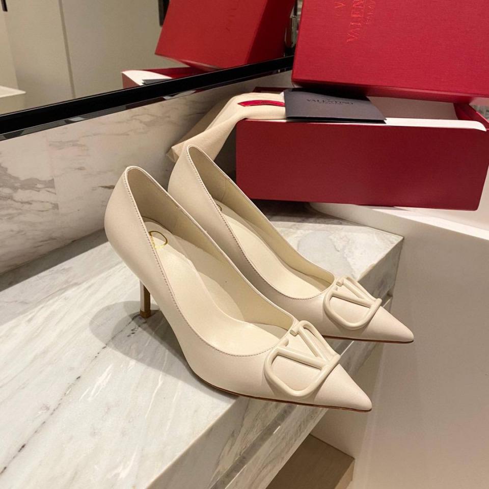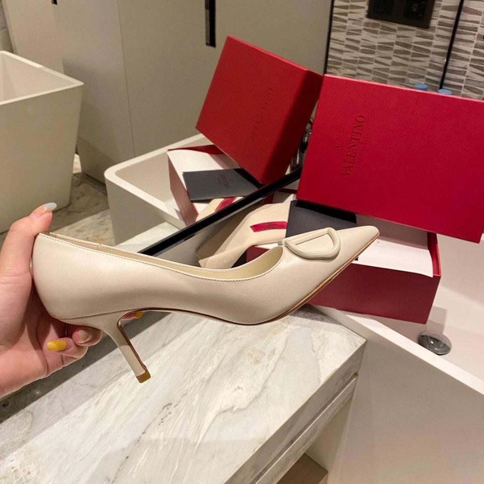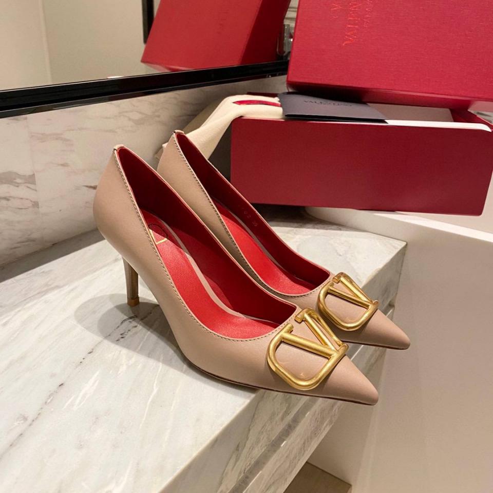 2024早春經典款 V家金屬大logo跟鞋(7.5cm) 牛皮材質