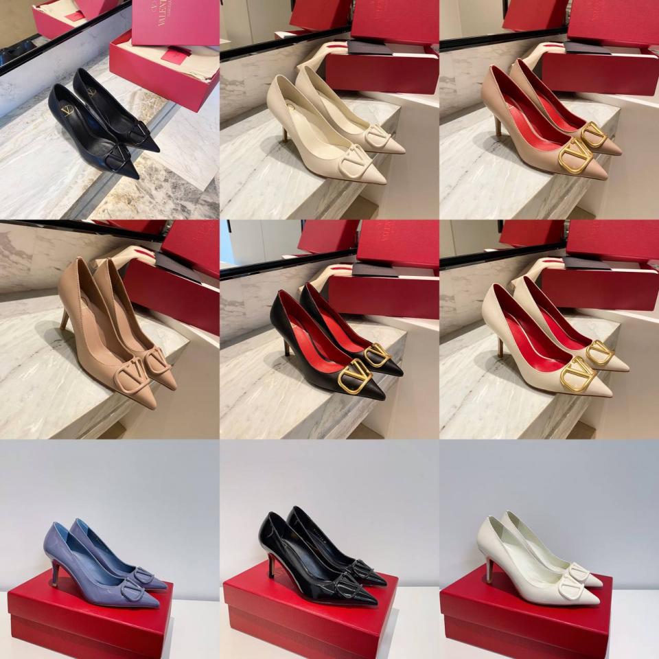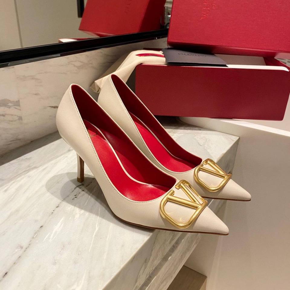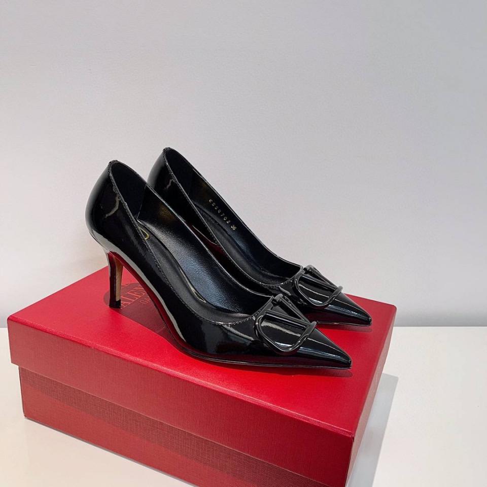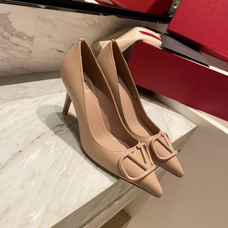 2024早春經典款 V家金屬大logo跟鞋(7.5cm) 牛皮材質