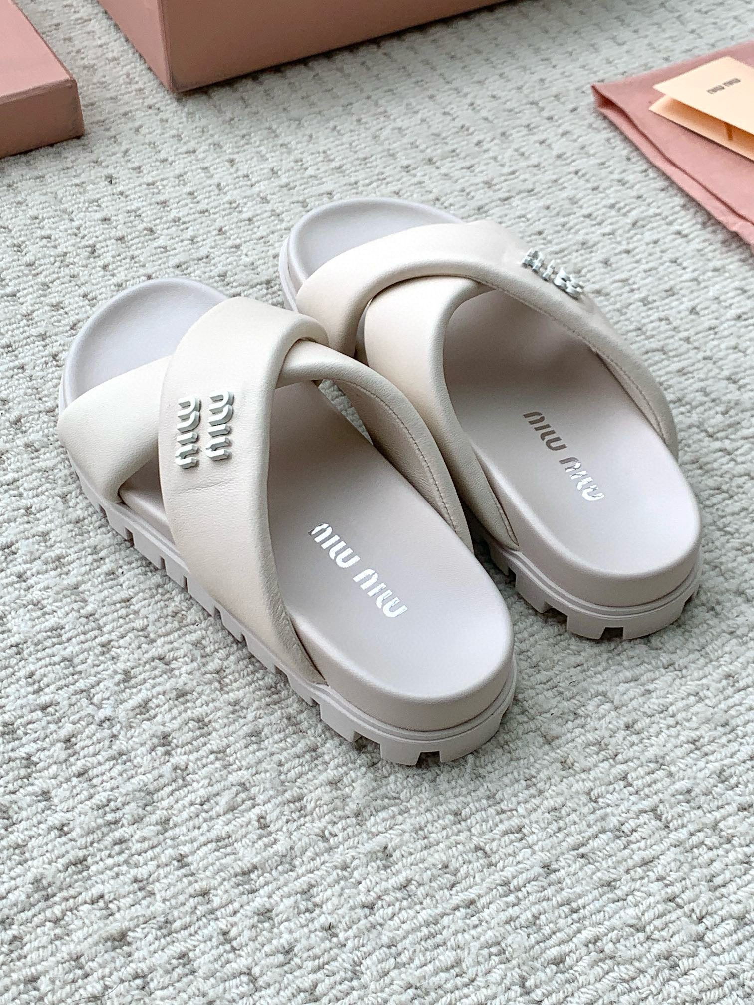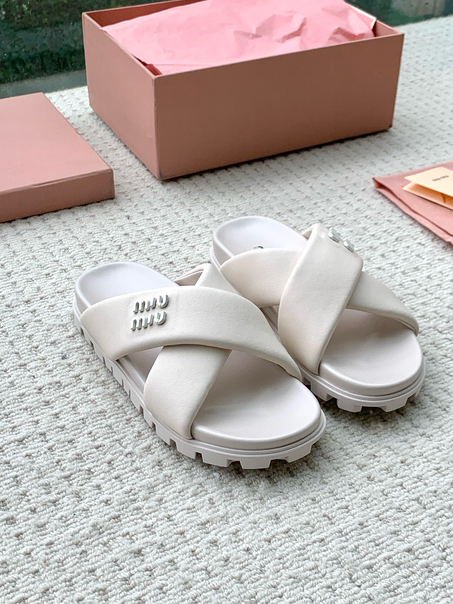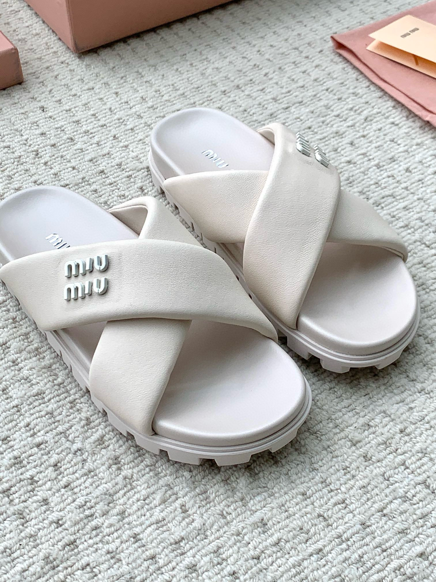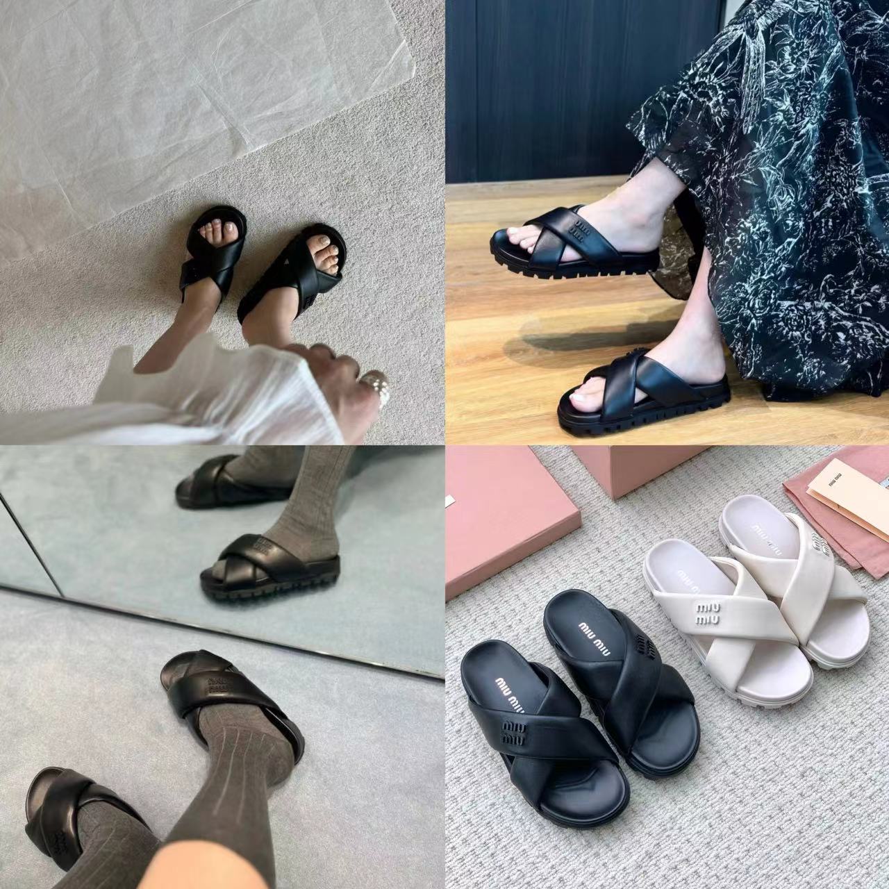 2024春夏新品 Miu家交叉羊皮拖鞋 好穿好走