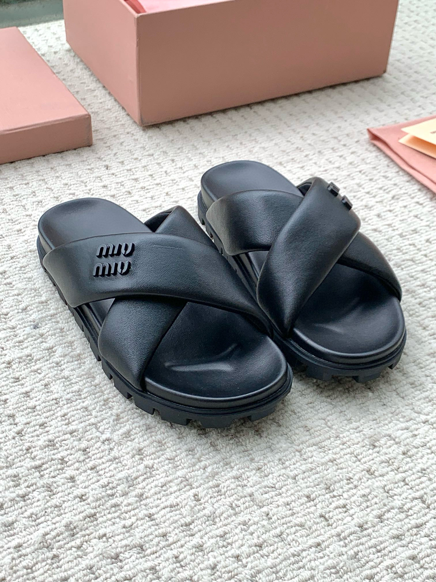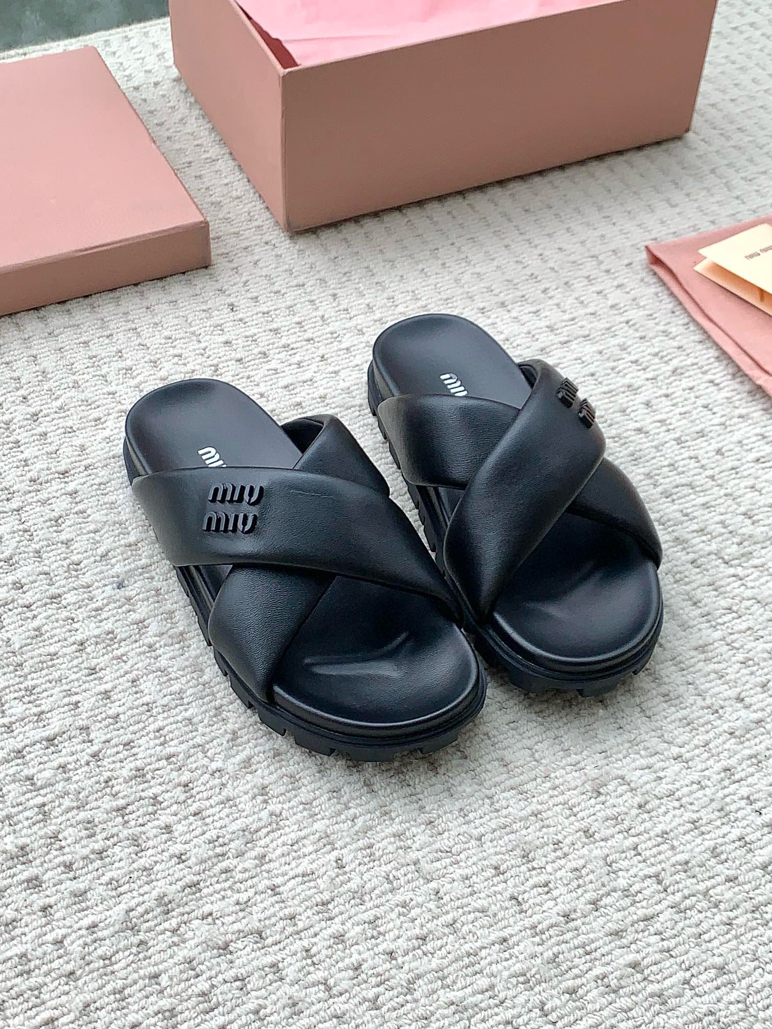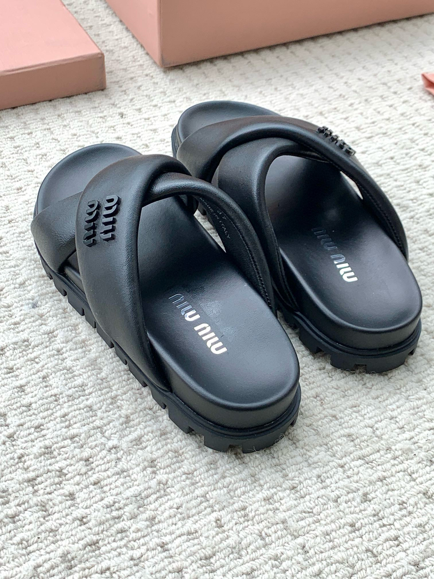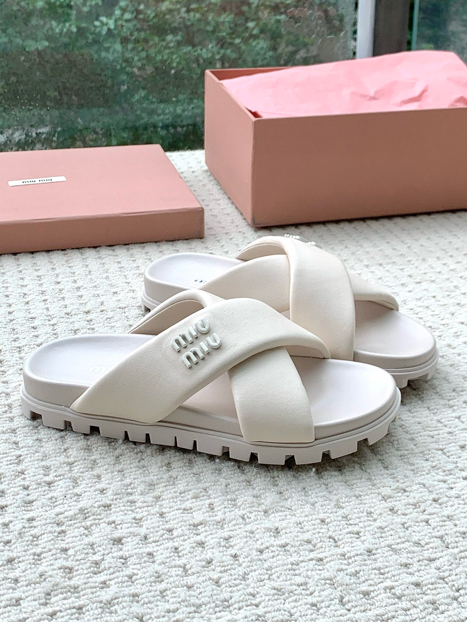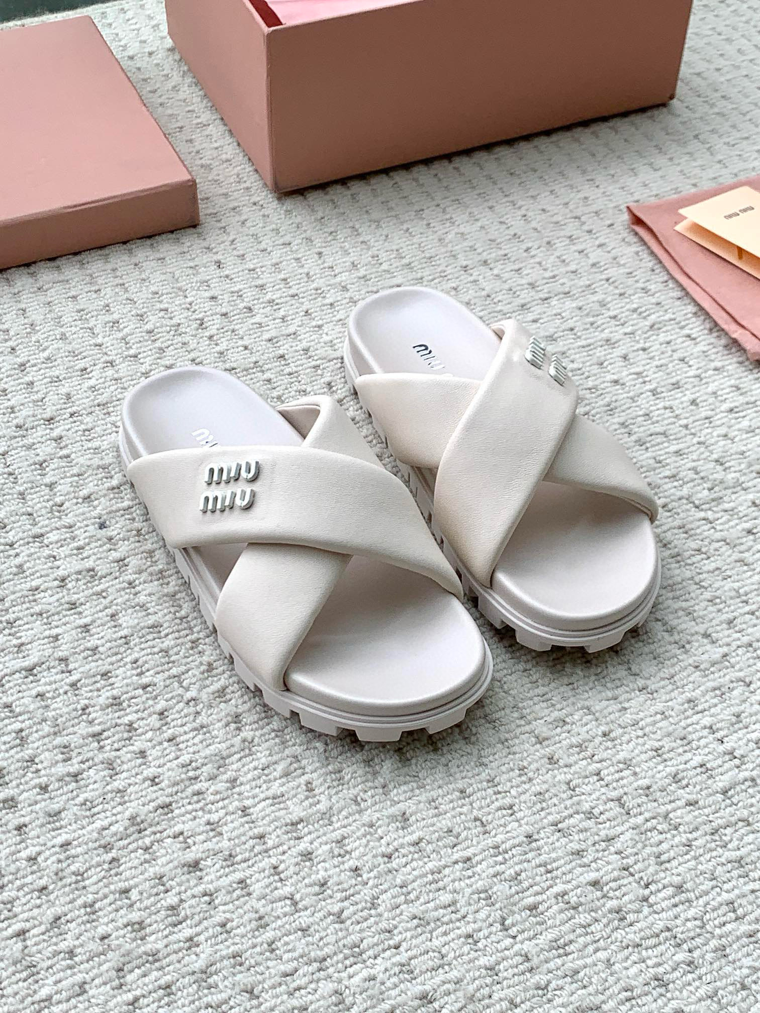 2024春夏新品 Miu家交叉羊皮拖鞋 好穿好走
