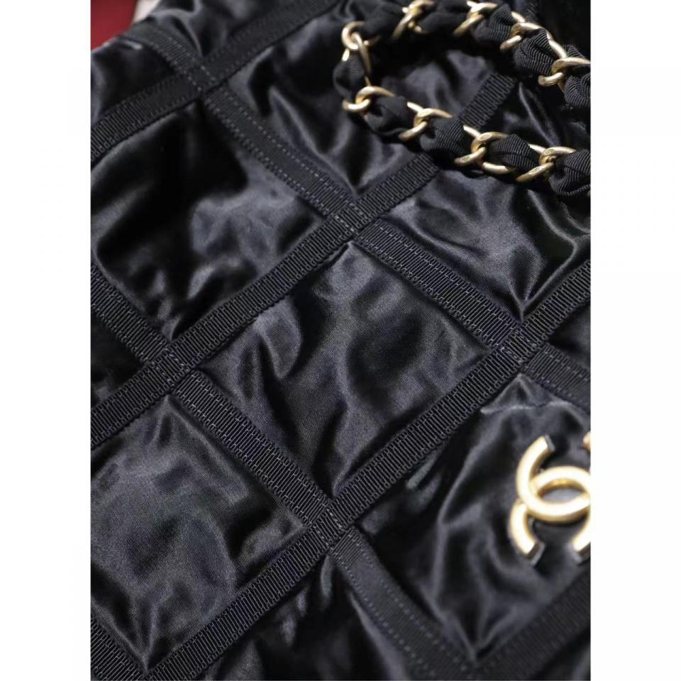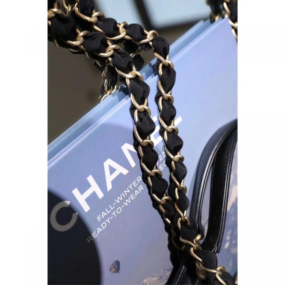 C家22bag字母單肩購物袋 黑色金扣(中號)
