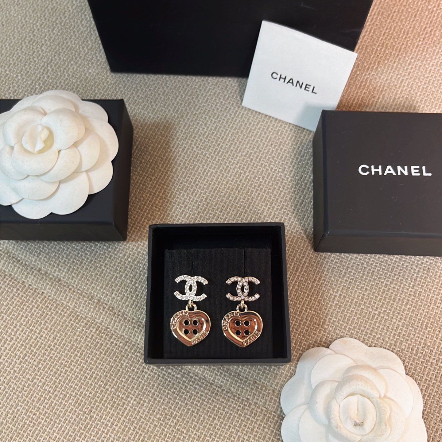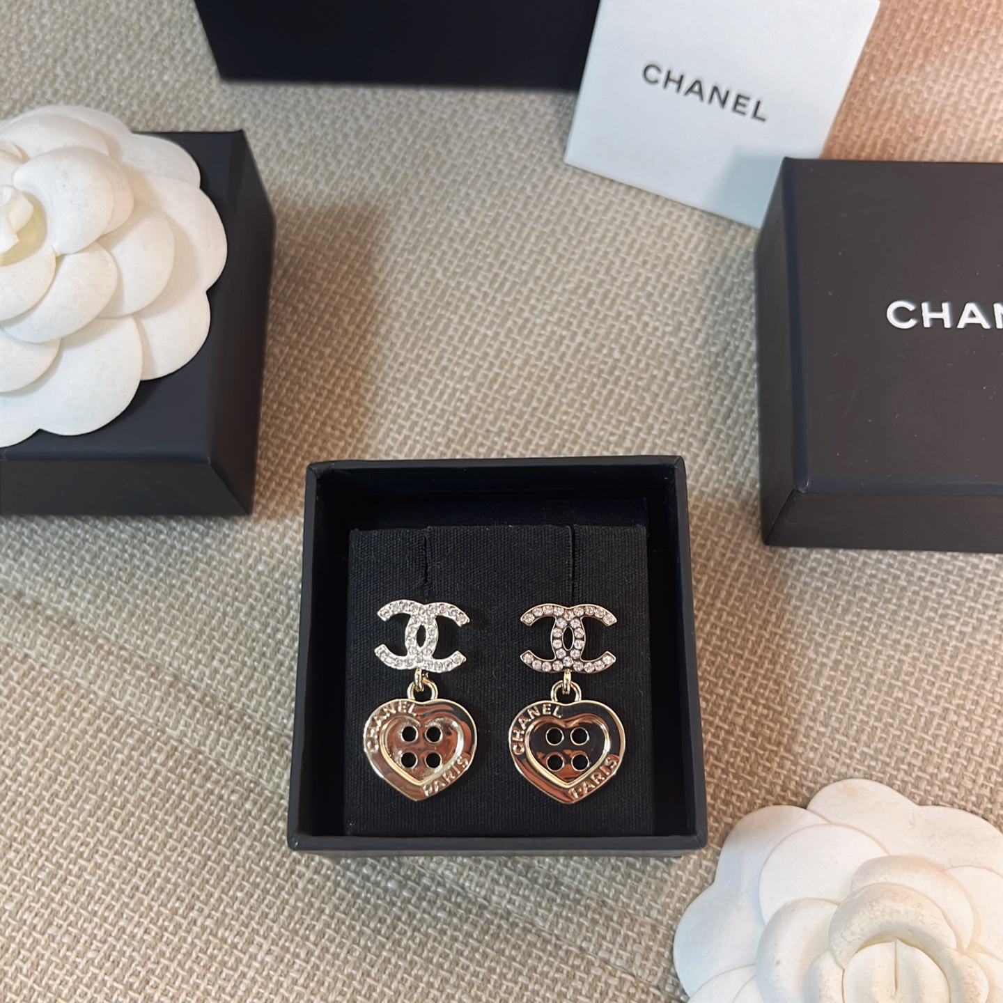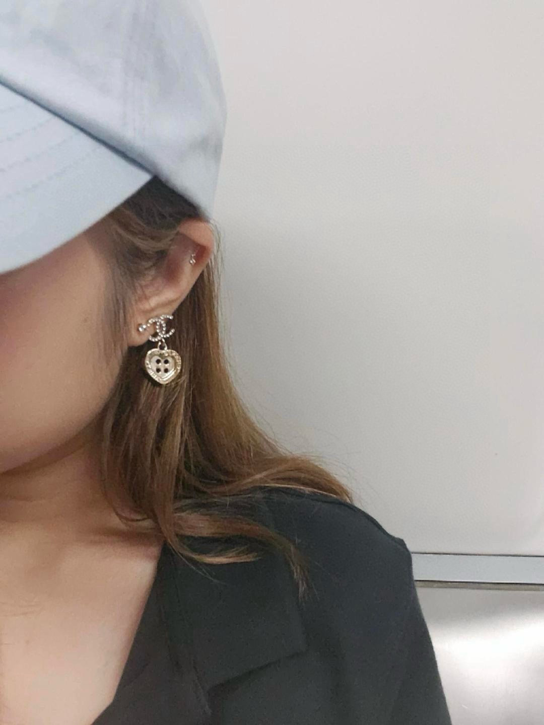 2025秋冬新品 C家 雙C吊紐扣愛心耳環