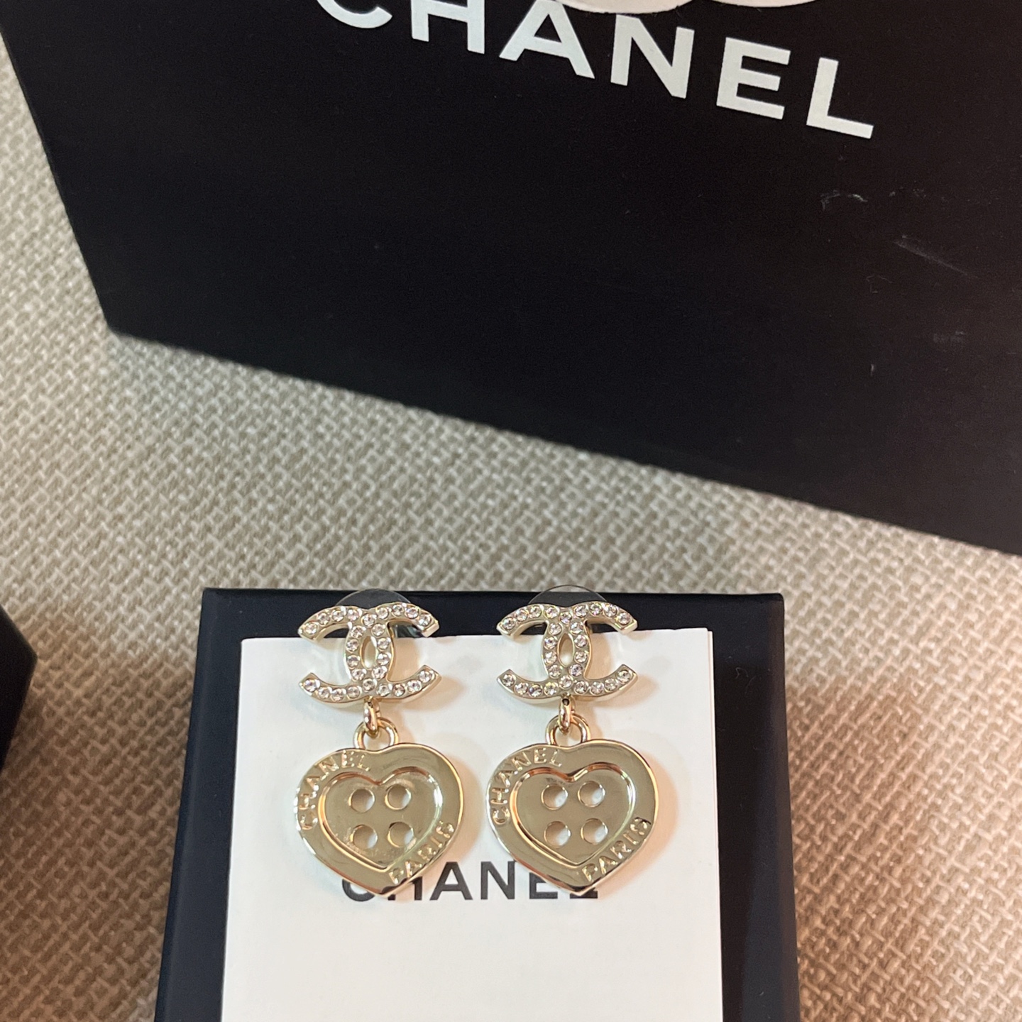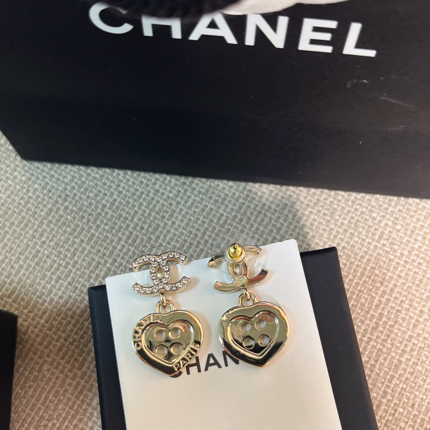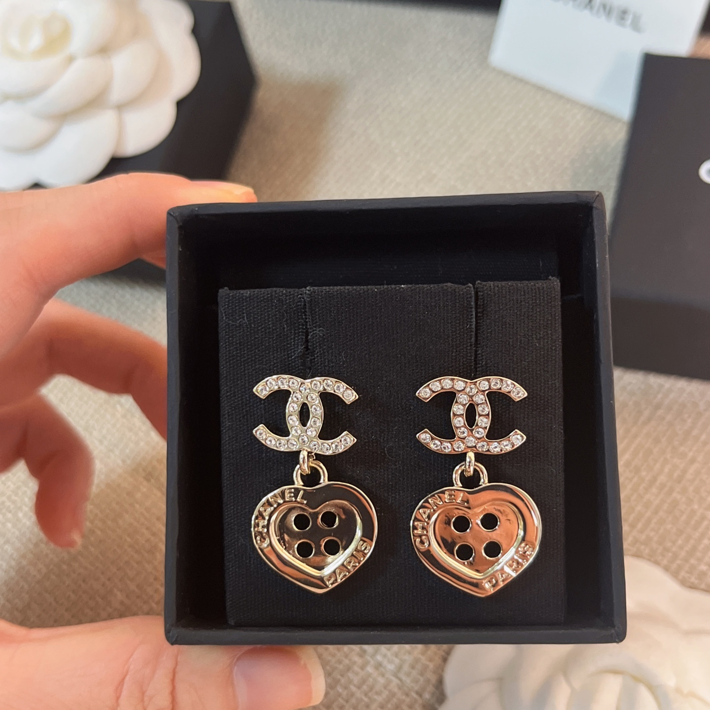 2025秋冬新品 C家 雙C吊紐扣愛心耳環