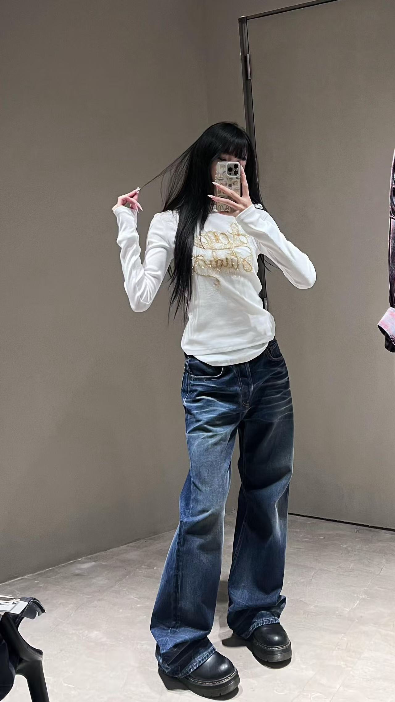 胸前金色品牌刺繡低調點睛,寬鬆版型包容各種身材,單穿內搭都超百搭,輕鬆應對春秋日常。