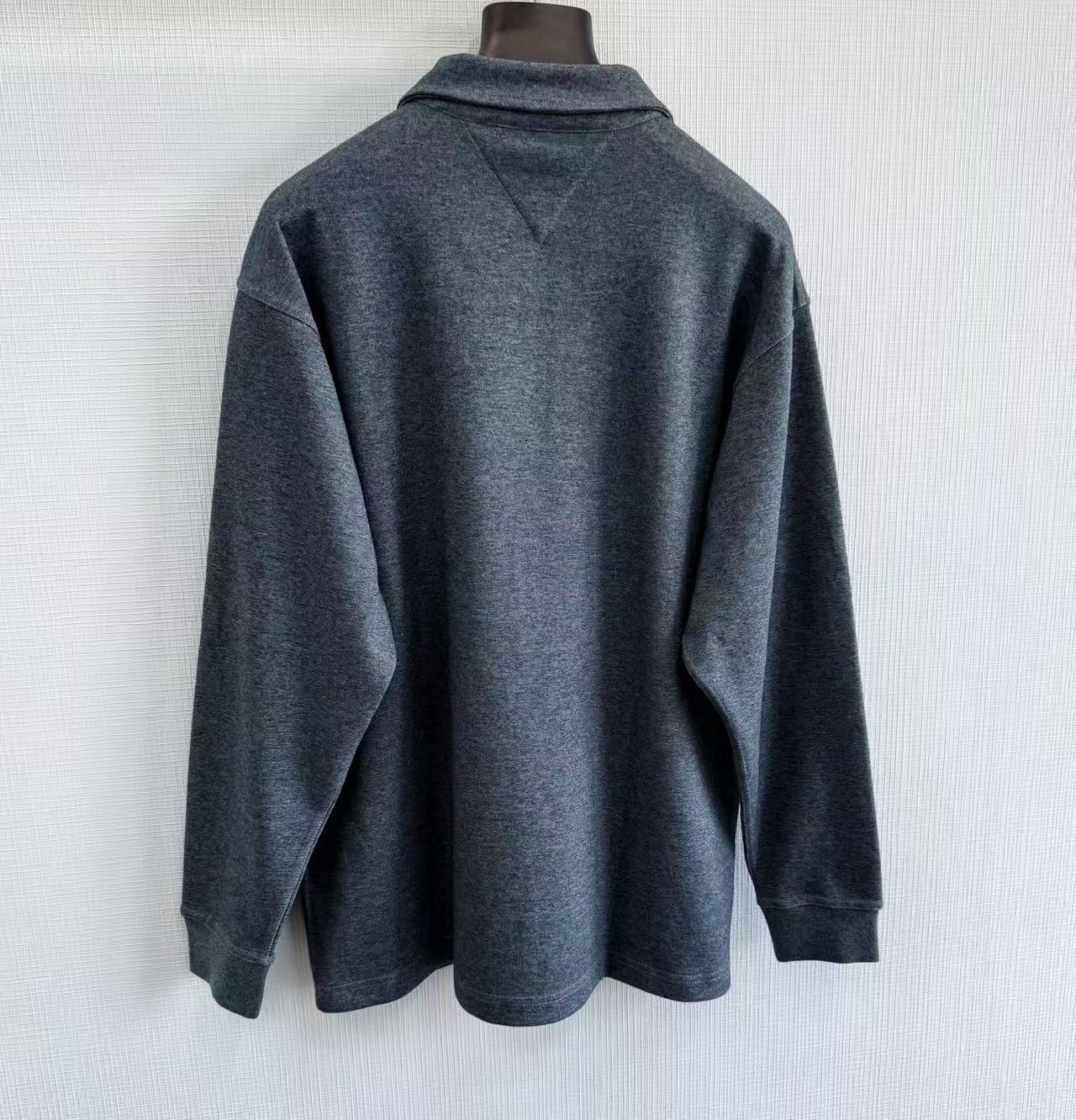 這件 Polo 衫的材質真的非常講究!它使用了 330g 的棉質雙面布材料,正反面都是平滑的縱向紋路,不僅厚實又密實,而且垂墜感超強,穿起來版型超挺,完全不會鬆垮。