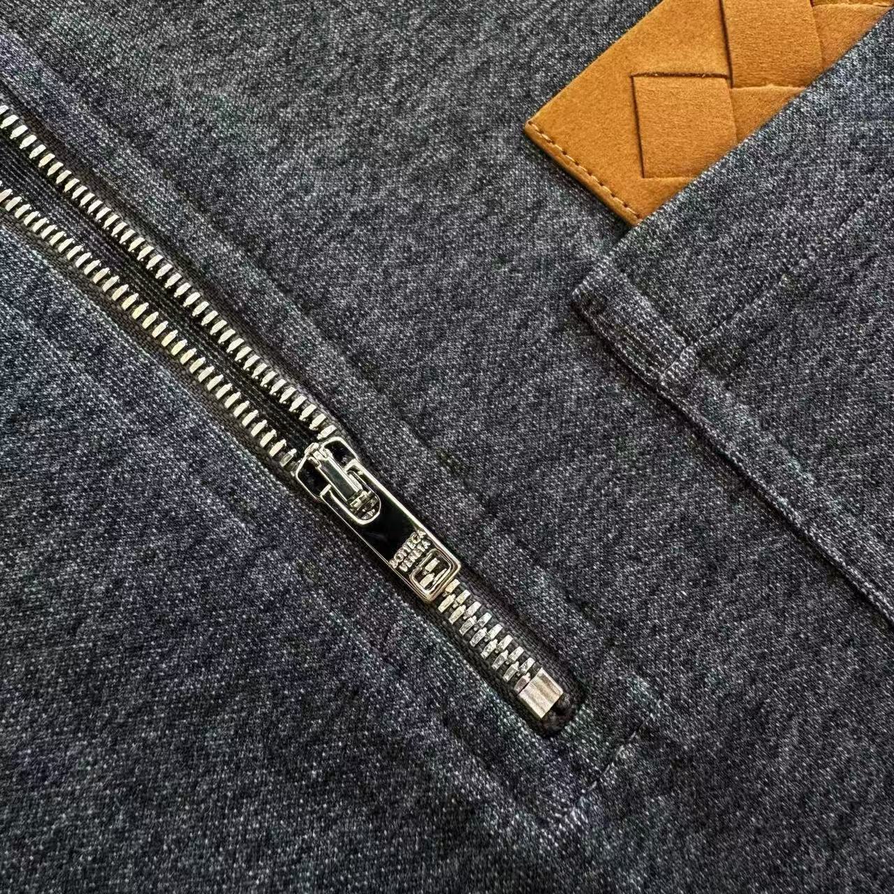 編織絨面革貼飾:胸前的編織絨面革貼飾,帶有獨特的磨砂質感,這種啞光效果,讓整件上衣看起來更有層次感,也完美展現了 Bottega Veneta 的品牌格調。