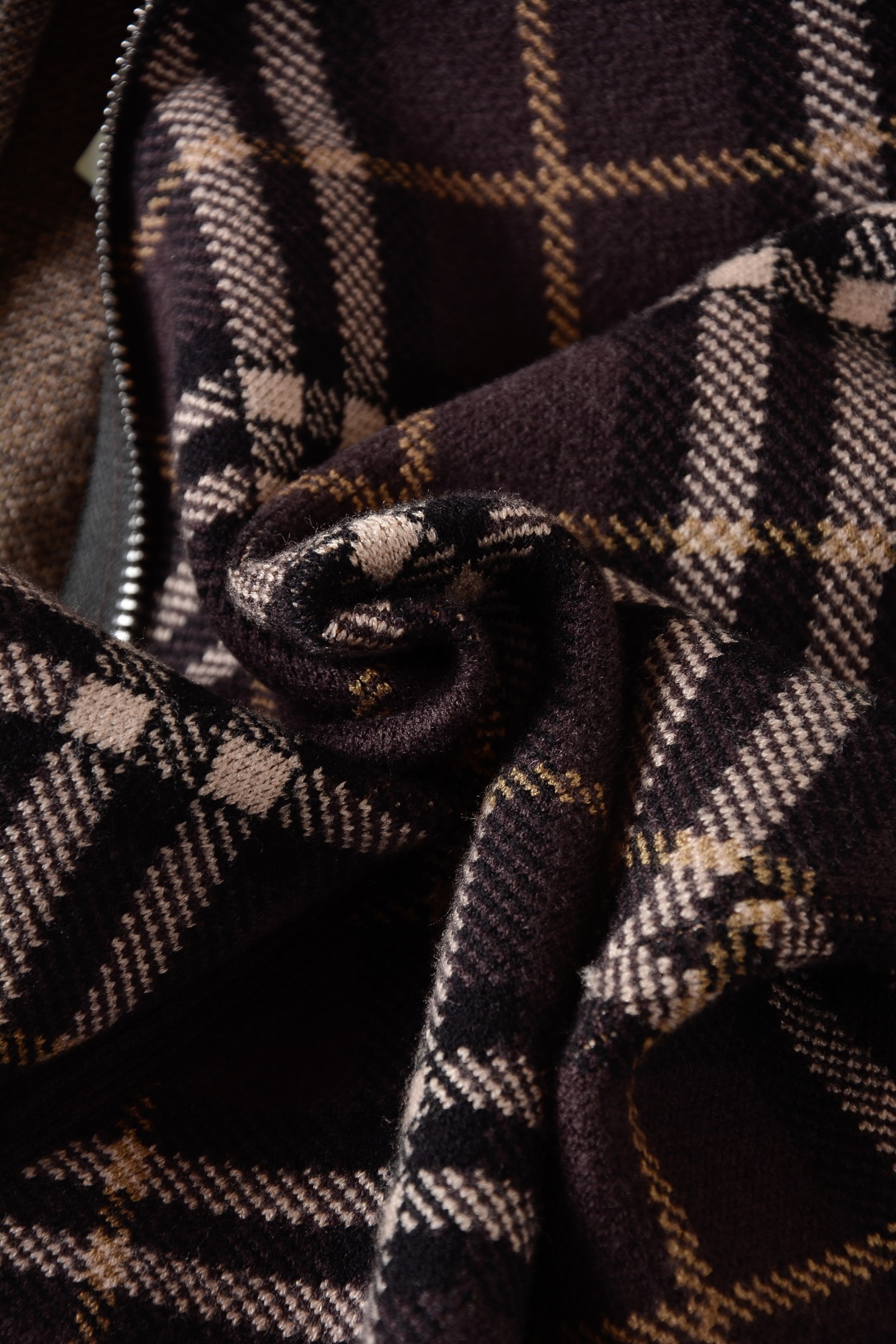 BUR家 格紋羊毛羊絨混紡飛行夾克