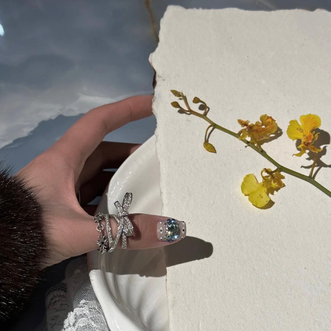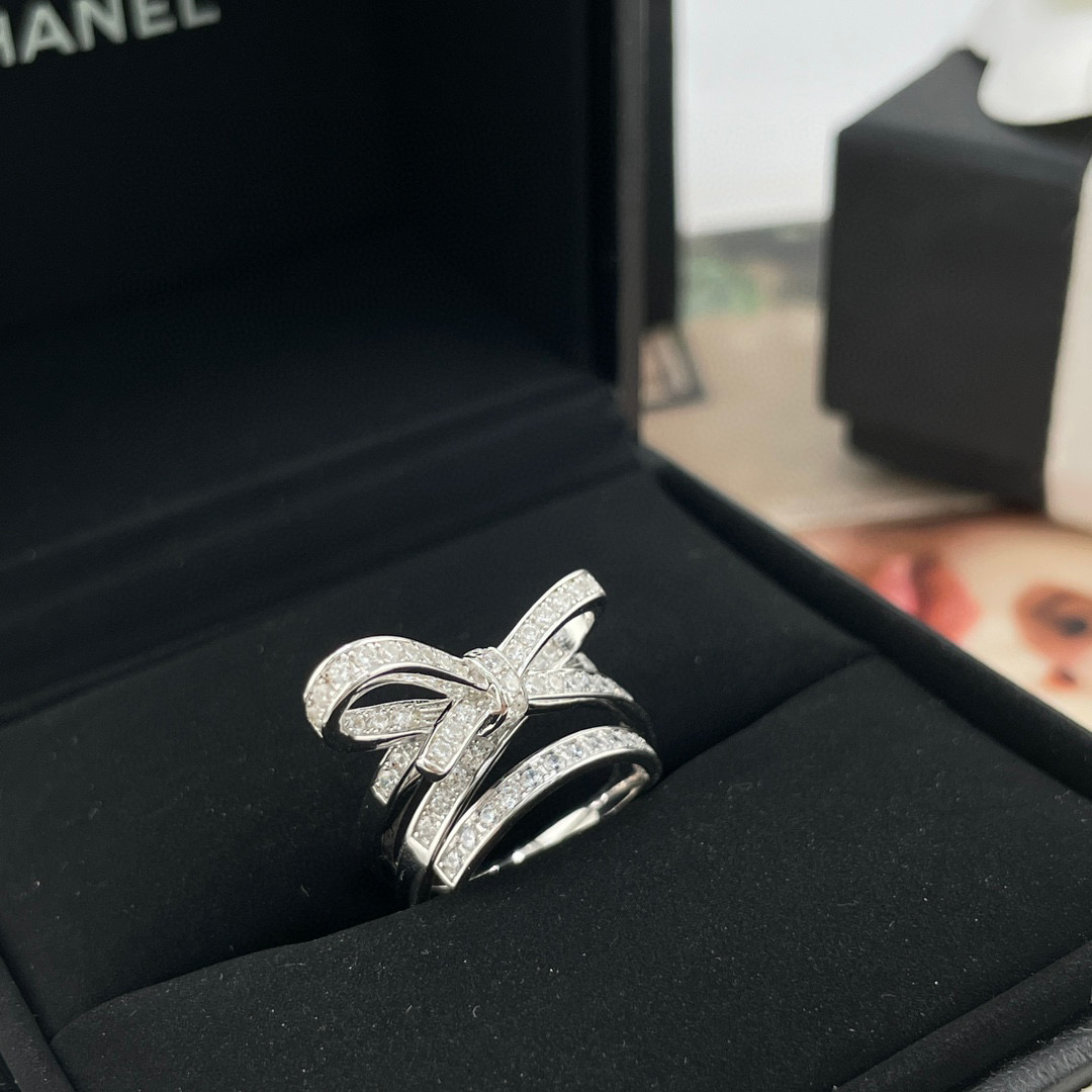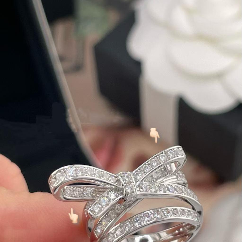 2025春夏新品 C家 風格滿鑽多層立體蝴蝶結戒指