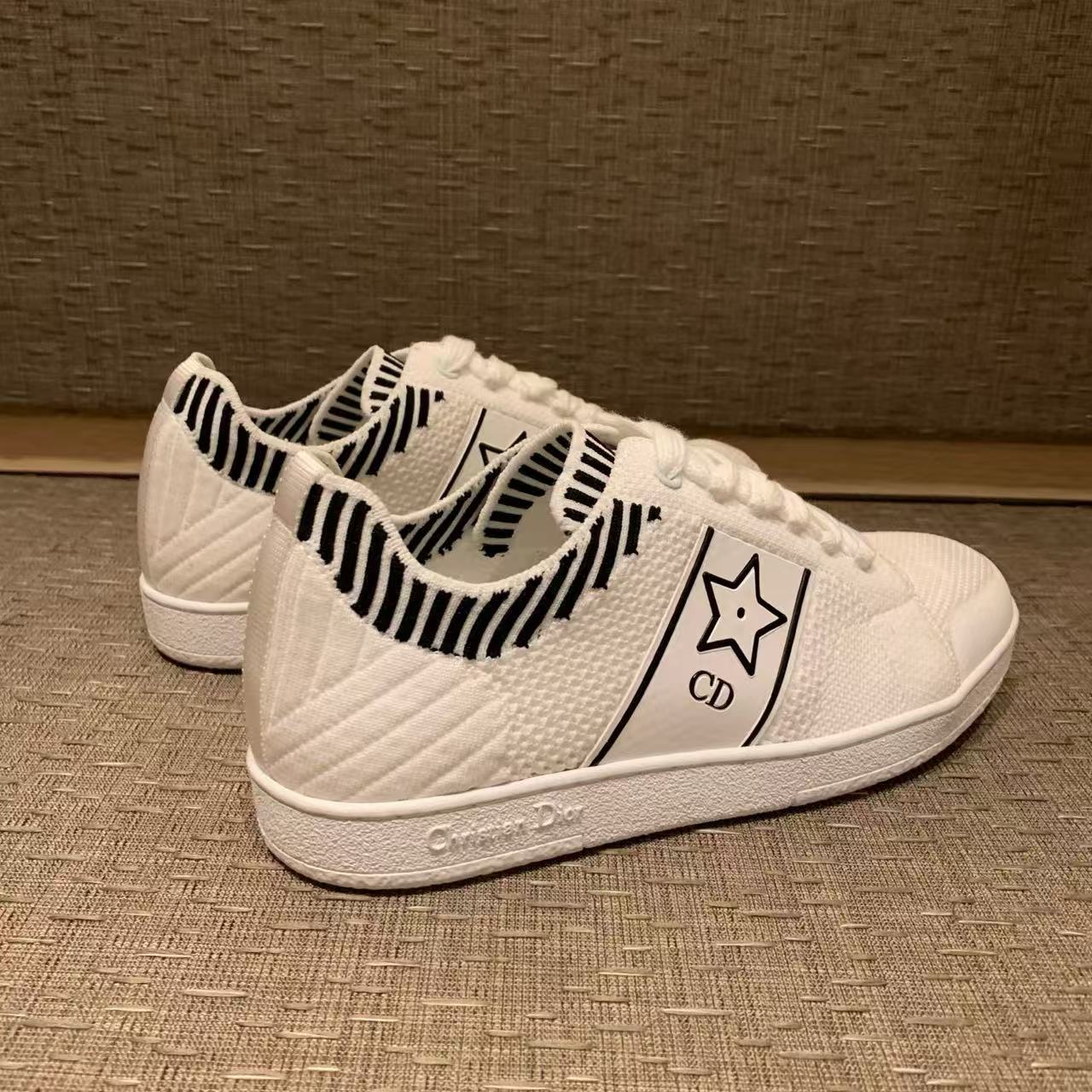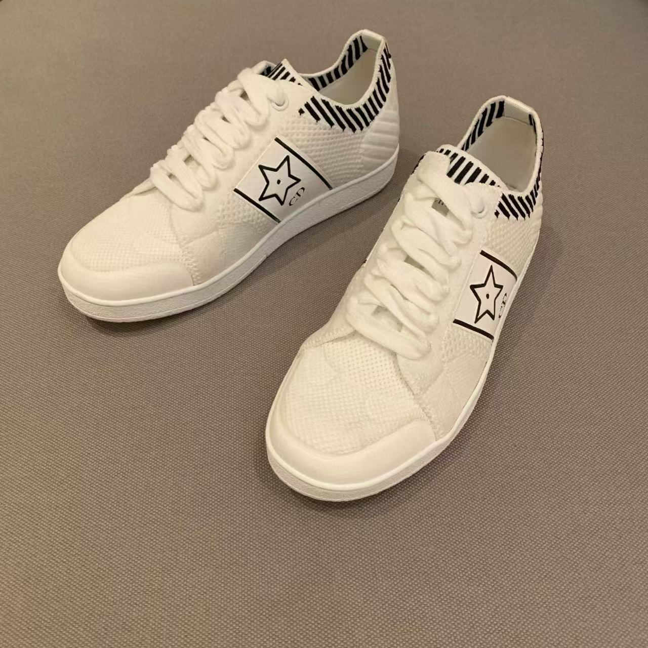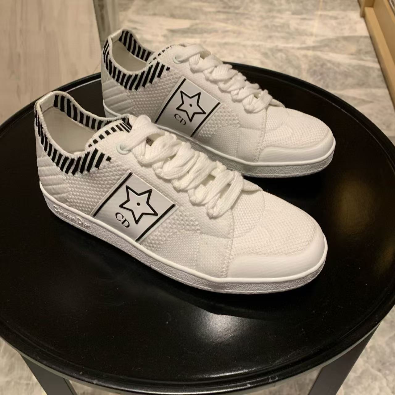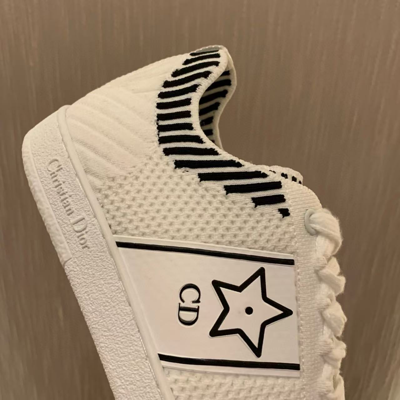 以白色網眼織物精心打造,側面點綴黑色CD標誌與星星圖案,鞋舌更飾以Christian Dior Paris標誌,展現品牌的高級風範。搭配輕薄鞋底,輕盈舒適四季皆宜,無論搭配牛仔褲還是休閒裙裝,都能輕鬆為造型增添時尚亮點!