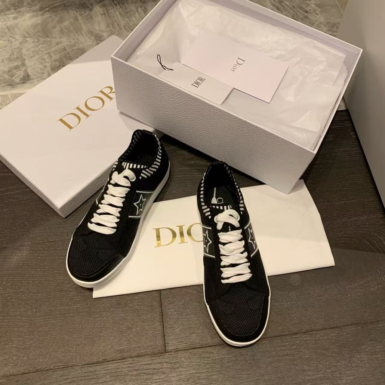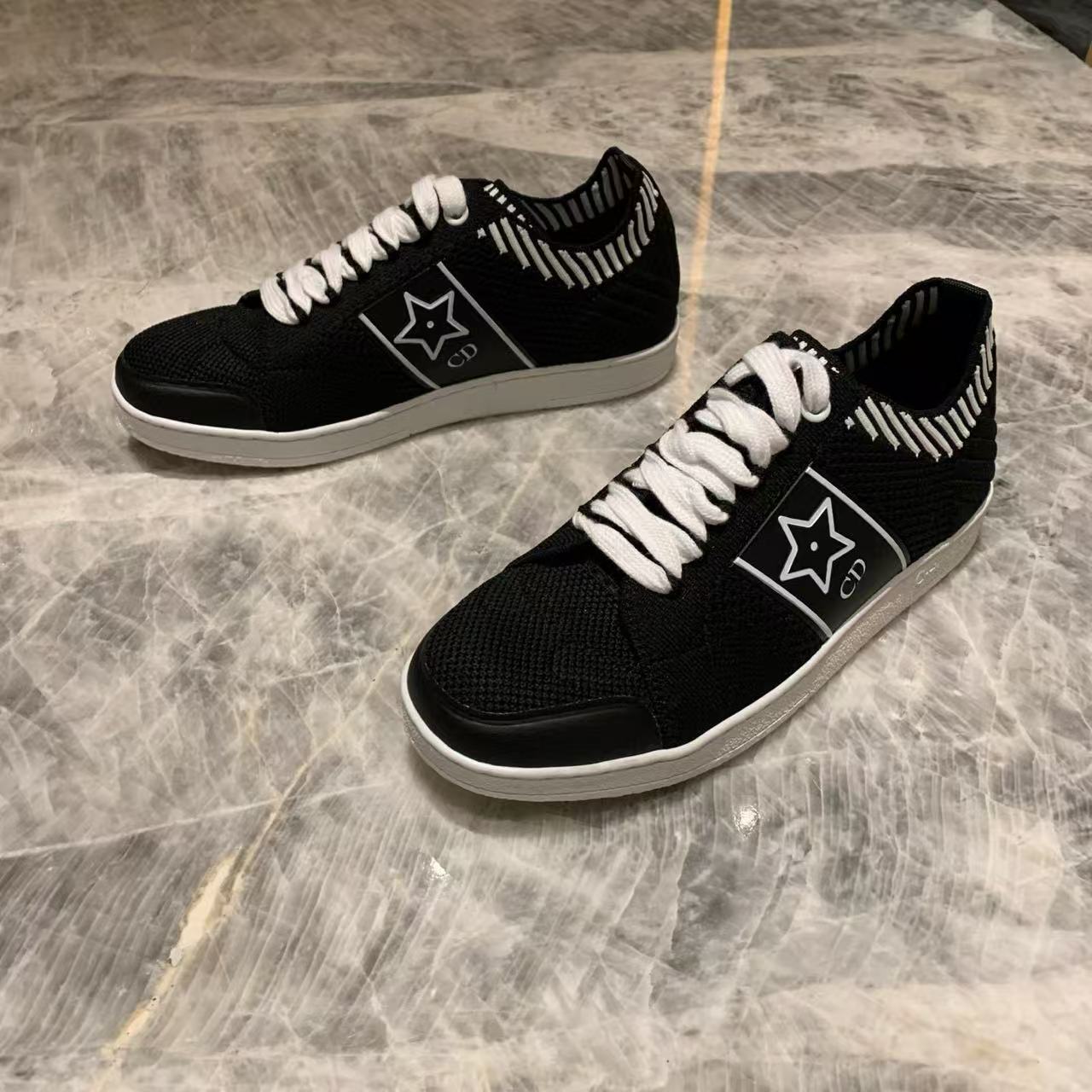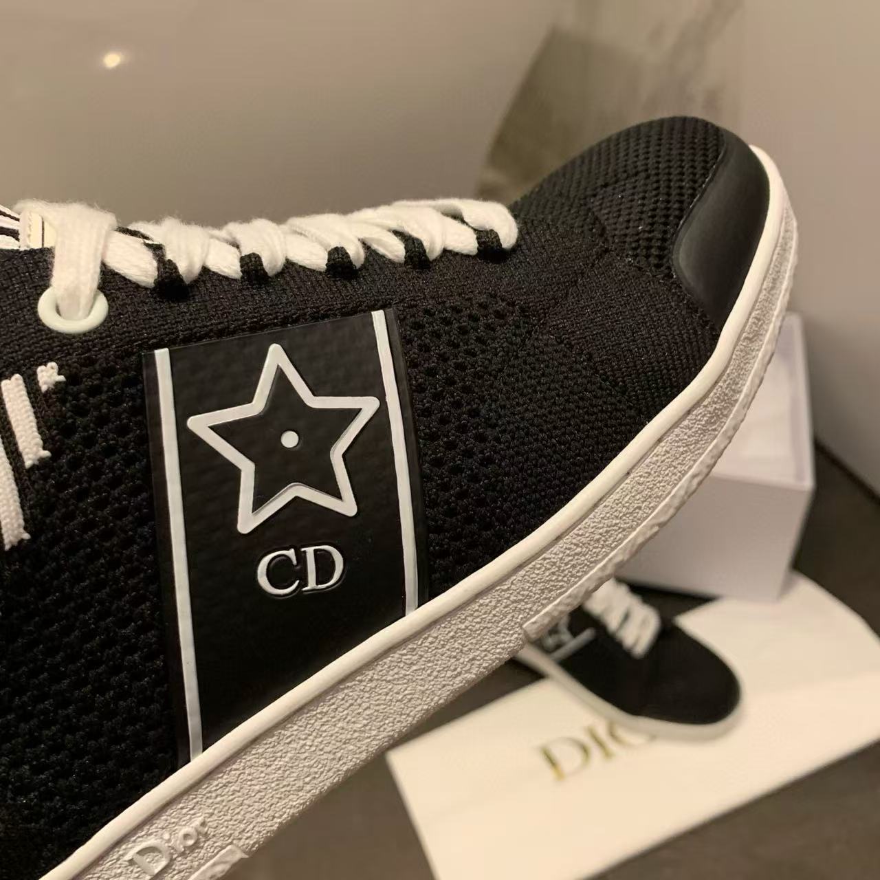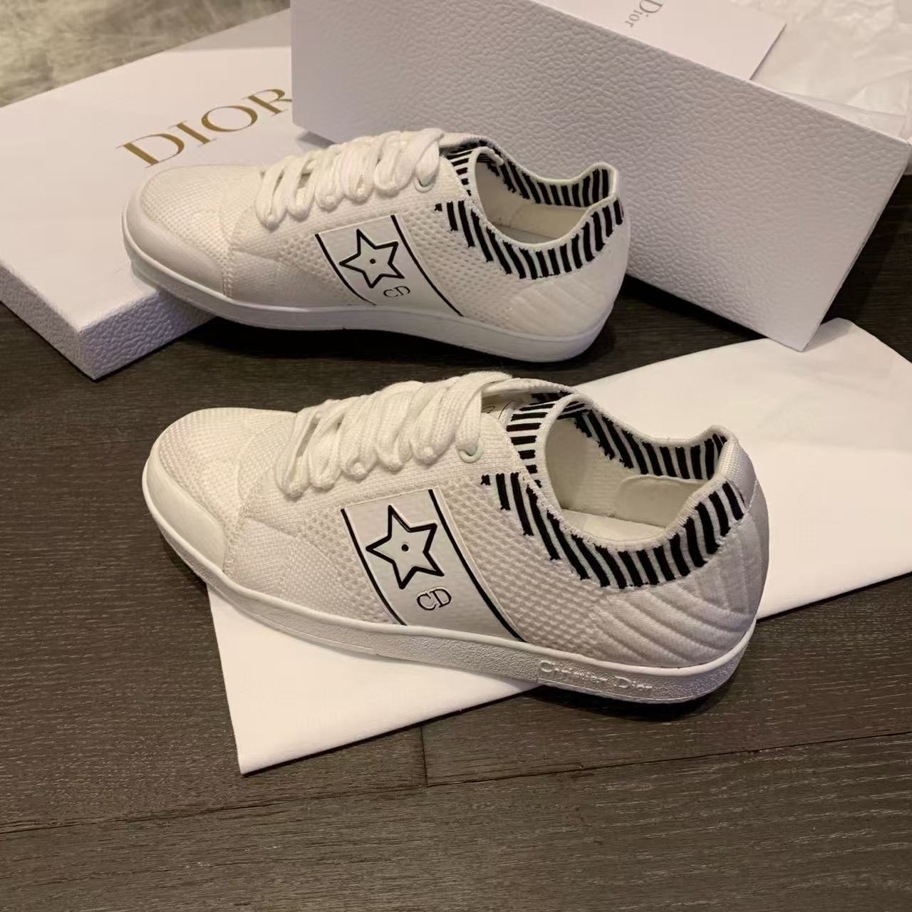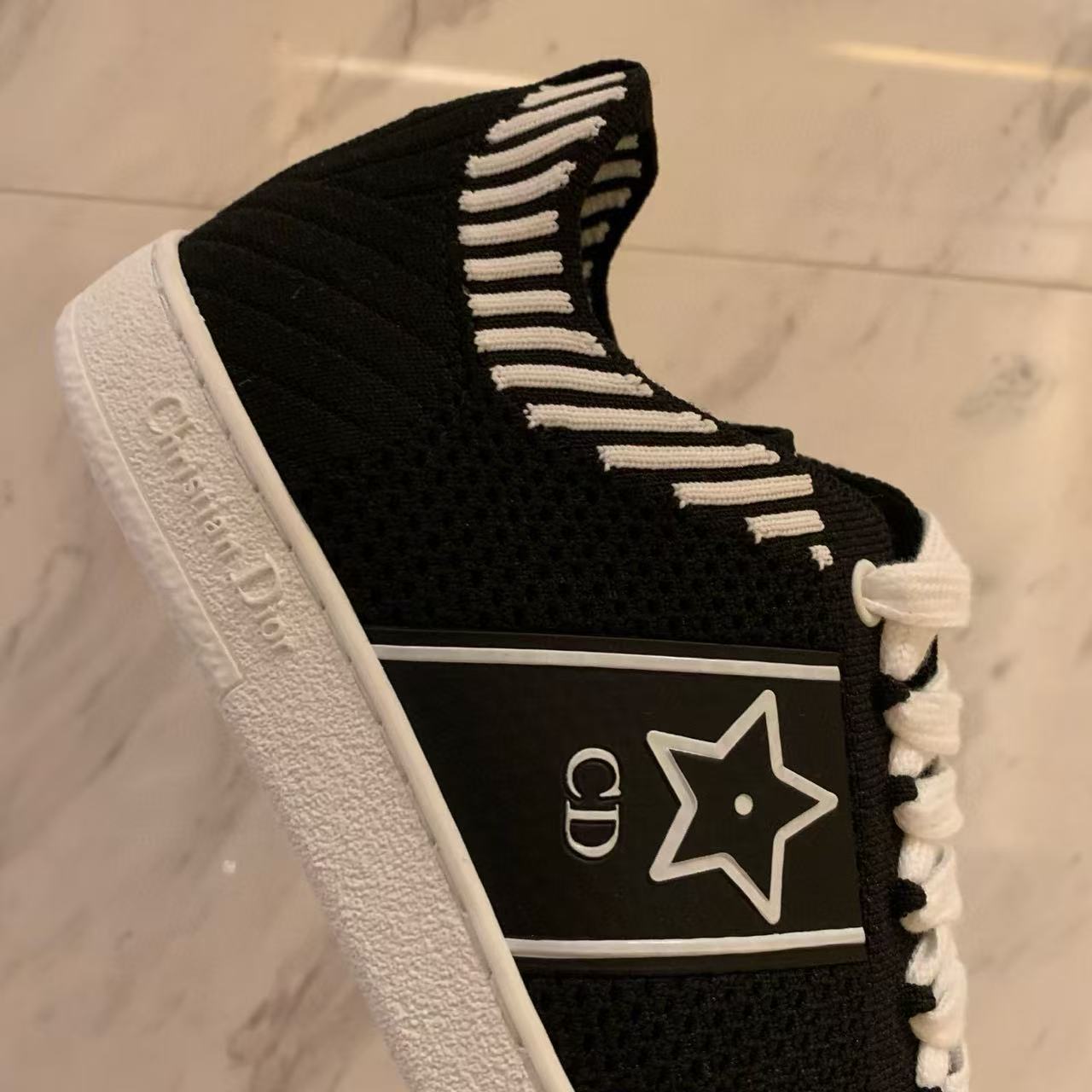 以白色網眼織物精心打造,側面點綴黑色CD標誌與星星圖案,鞋舌更飾以Christian Dior Paris標誌,展現品牌的高級風範。搭配輕薄鞋底,輕盈舒適四季皆宜,無論搭配牛仔褲還是休閒裙裝,都能輕鬆為造型增添時尚亮點!