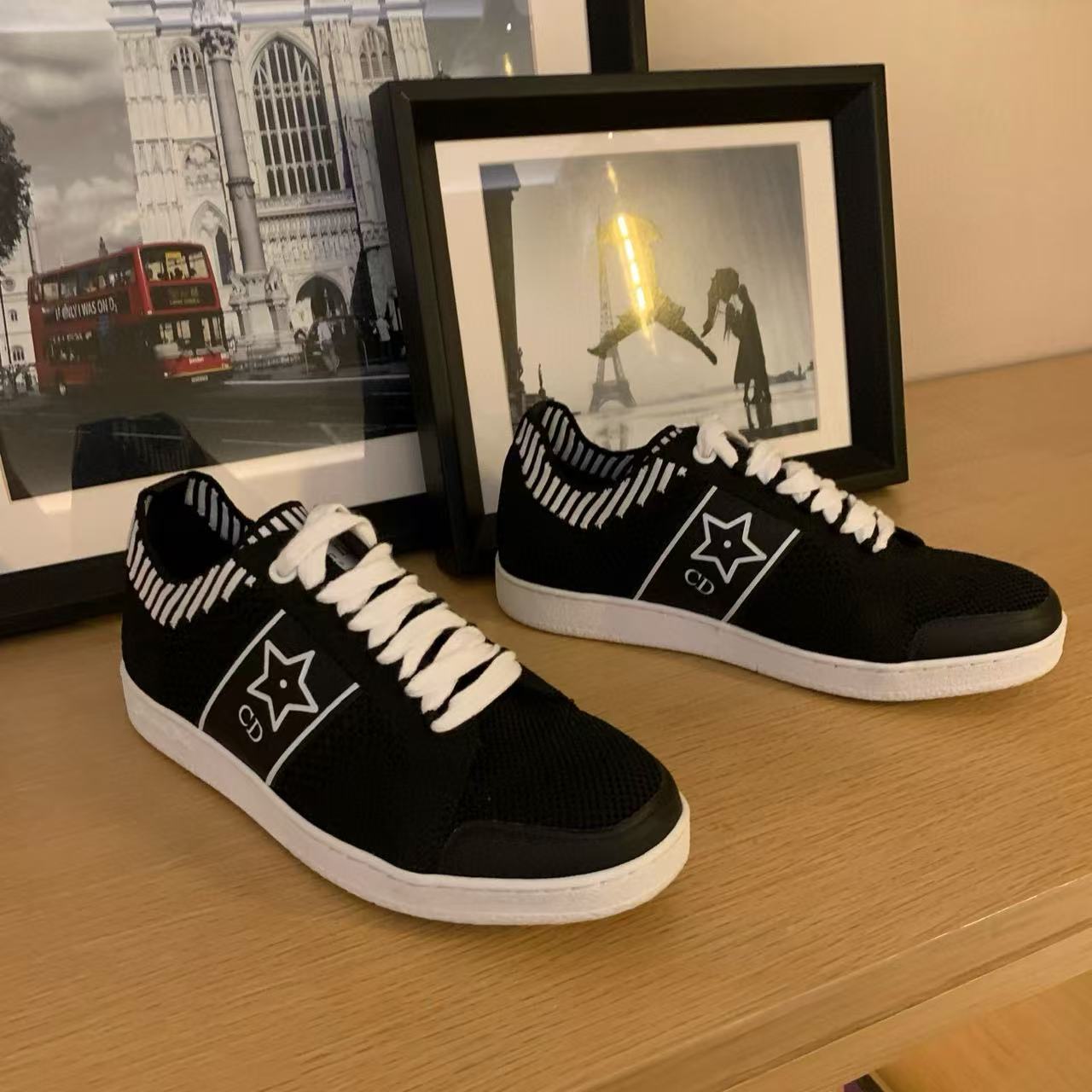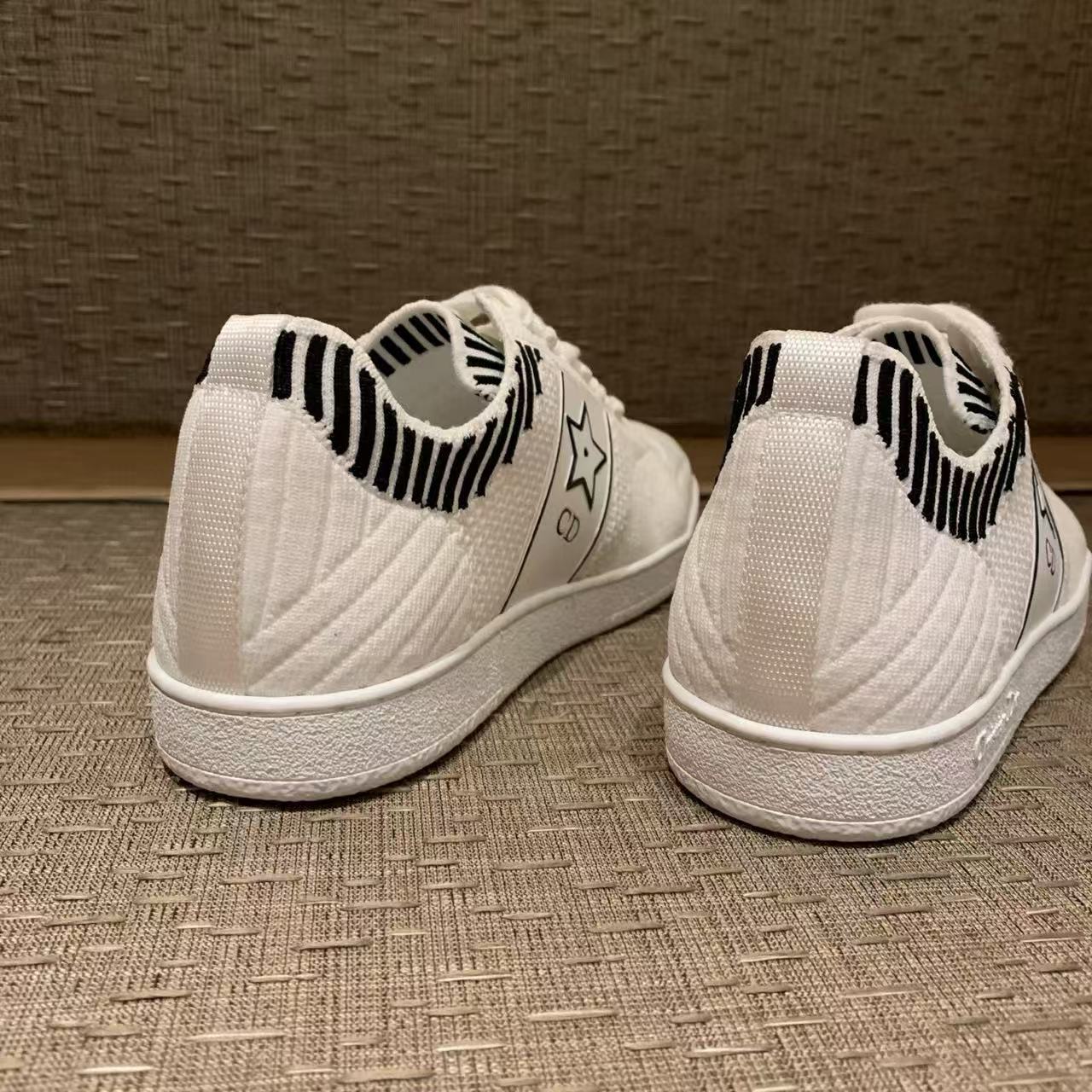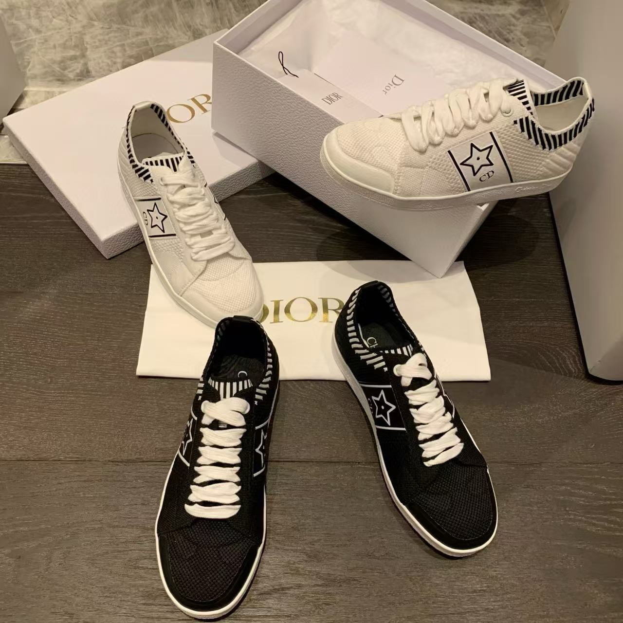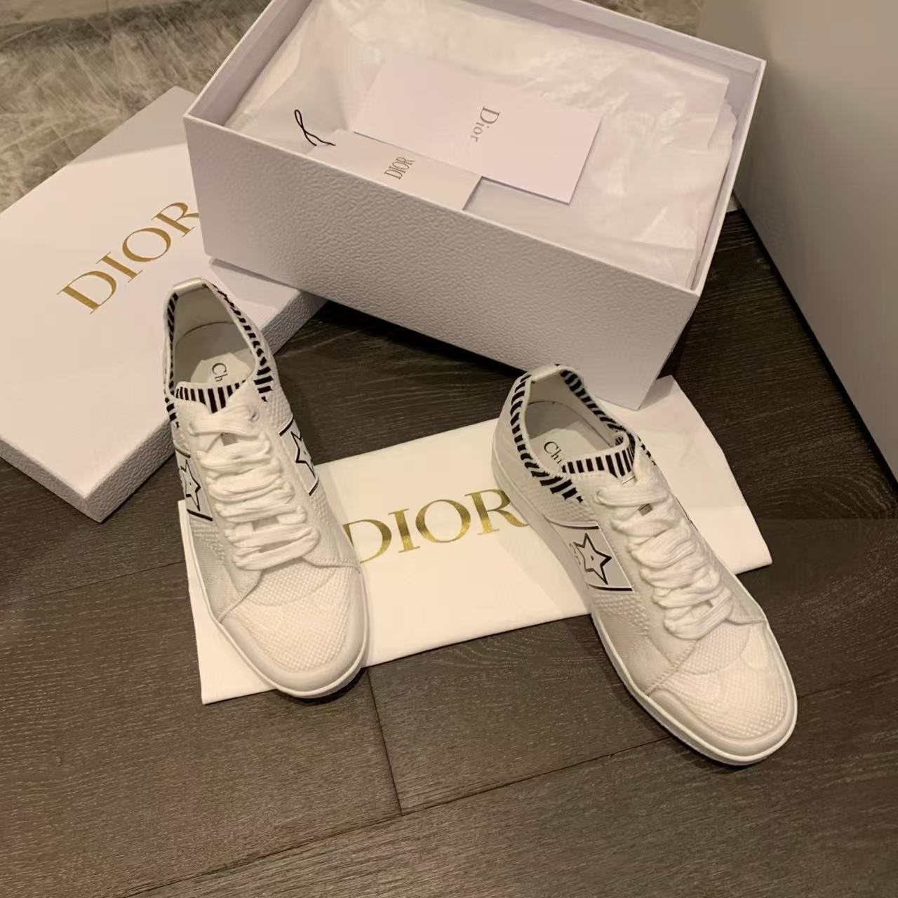 以白色網眼織物精心打造,側面點綴黑色CD標誌與星星圖案,鞋舌更飾以Christian Dior Paris標誌,展現品牌的高級風範。搭配輕薄鞋底,輕盈舒適四季皆宜,無論搭配牛仔褲還是休閒裙裝,都能輕鬆為造型增添時尚亮點!
