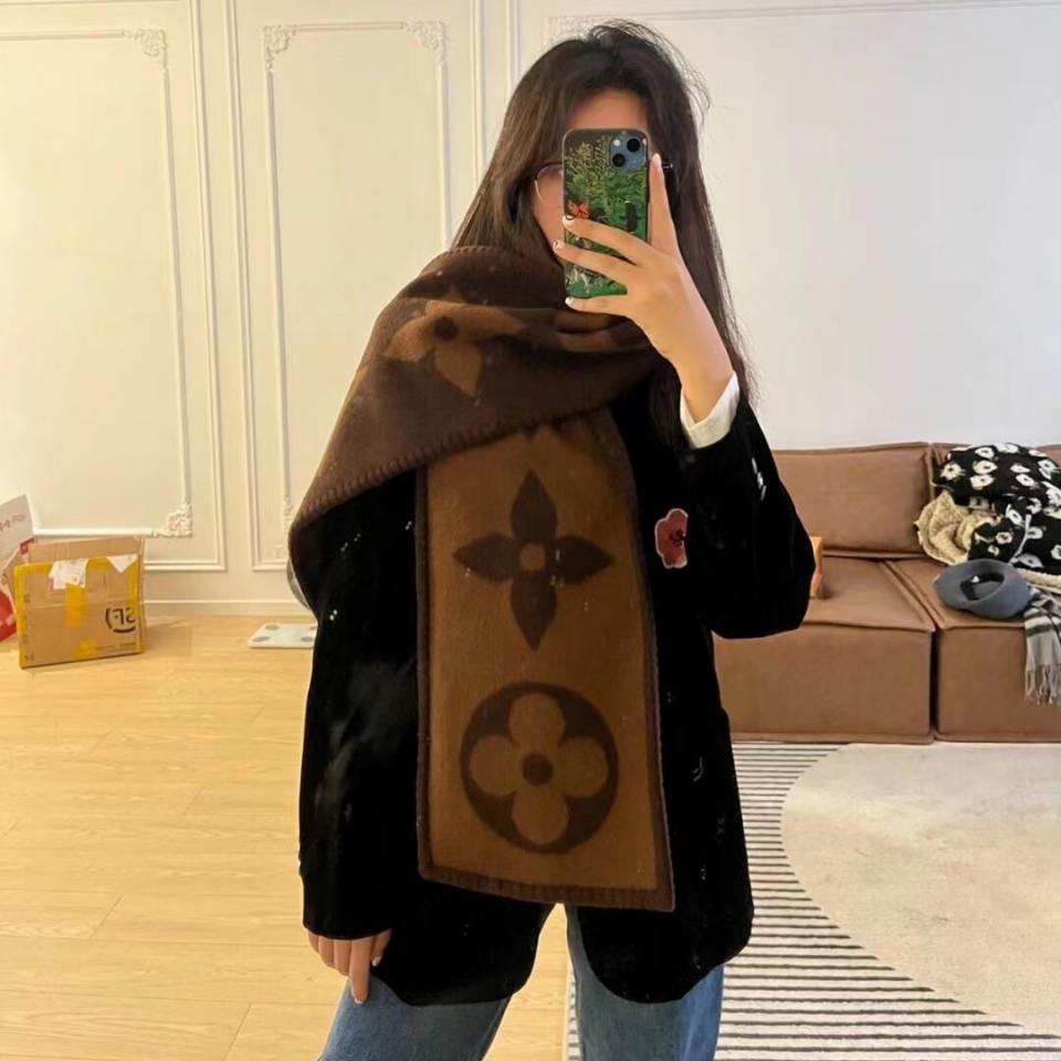 L家新款大logo羊毛流蘇圍巾