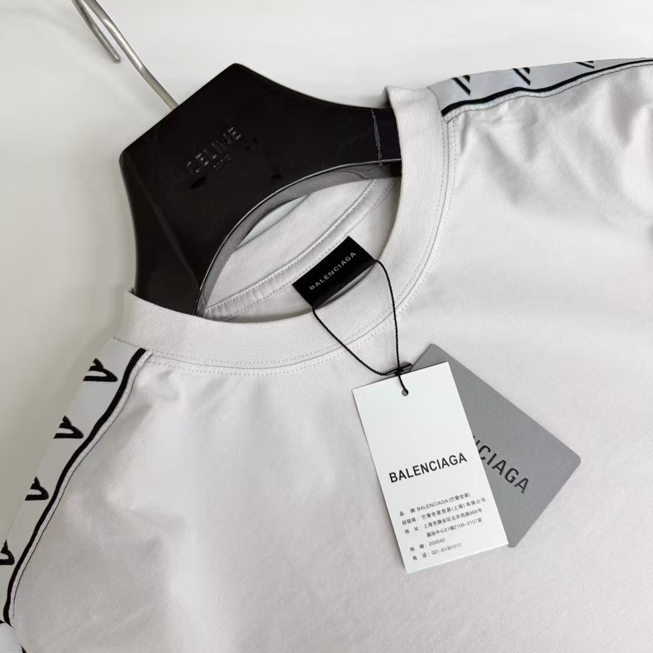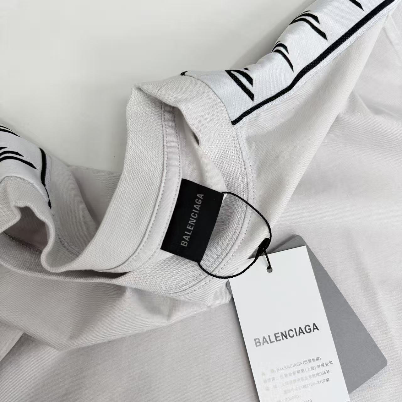 經典標誌的再轉化始終是品牌的拿手好戲。這次分享的 26SS 串標白精絲織帶短袖,將復古的運動串標元素(Track Tape)進行了高級感的當代詮釋。