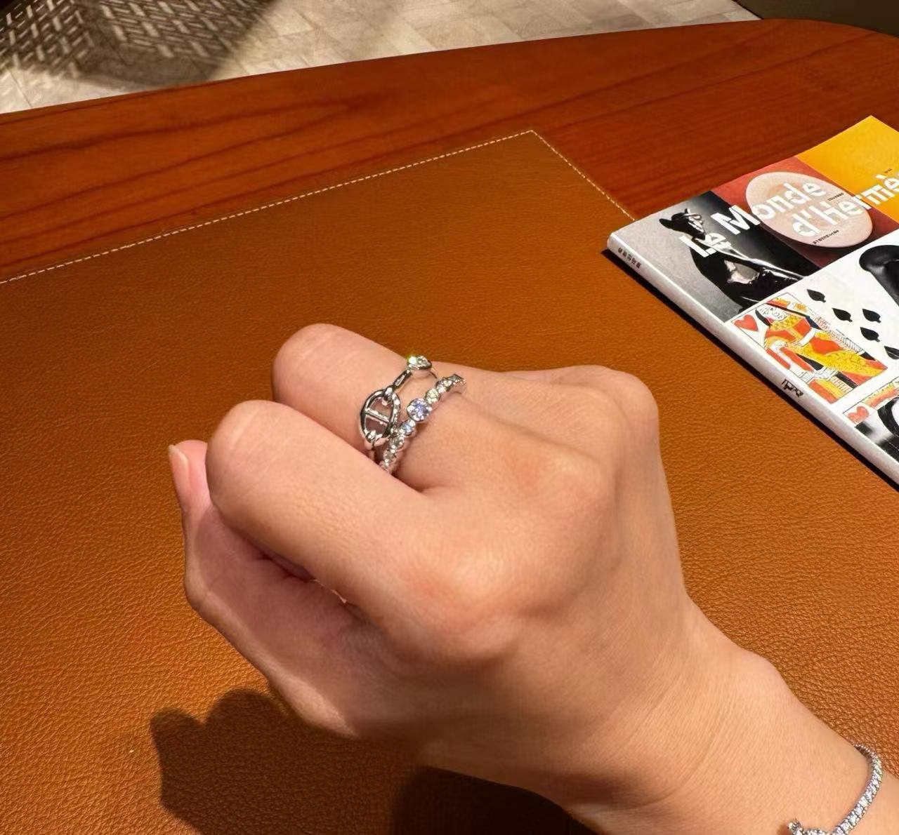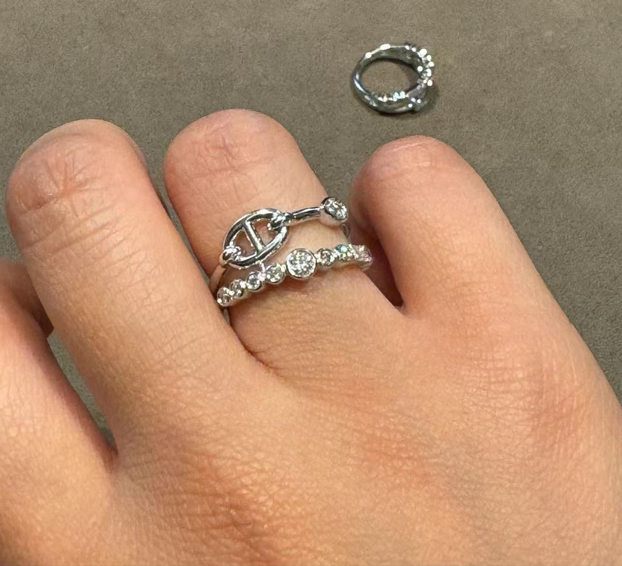 2025早春新品 H家豬鼻子雙層水鑽戒指 精緻度爆表,讓你成為指尖焦點!
