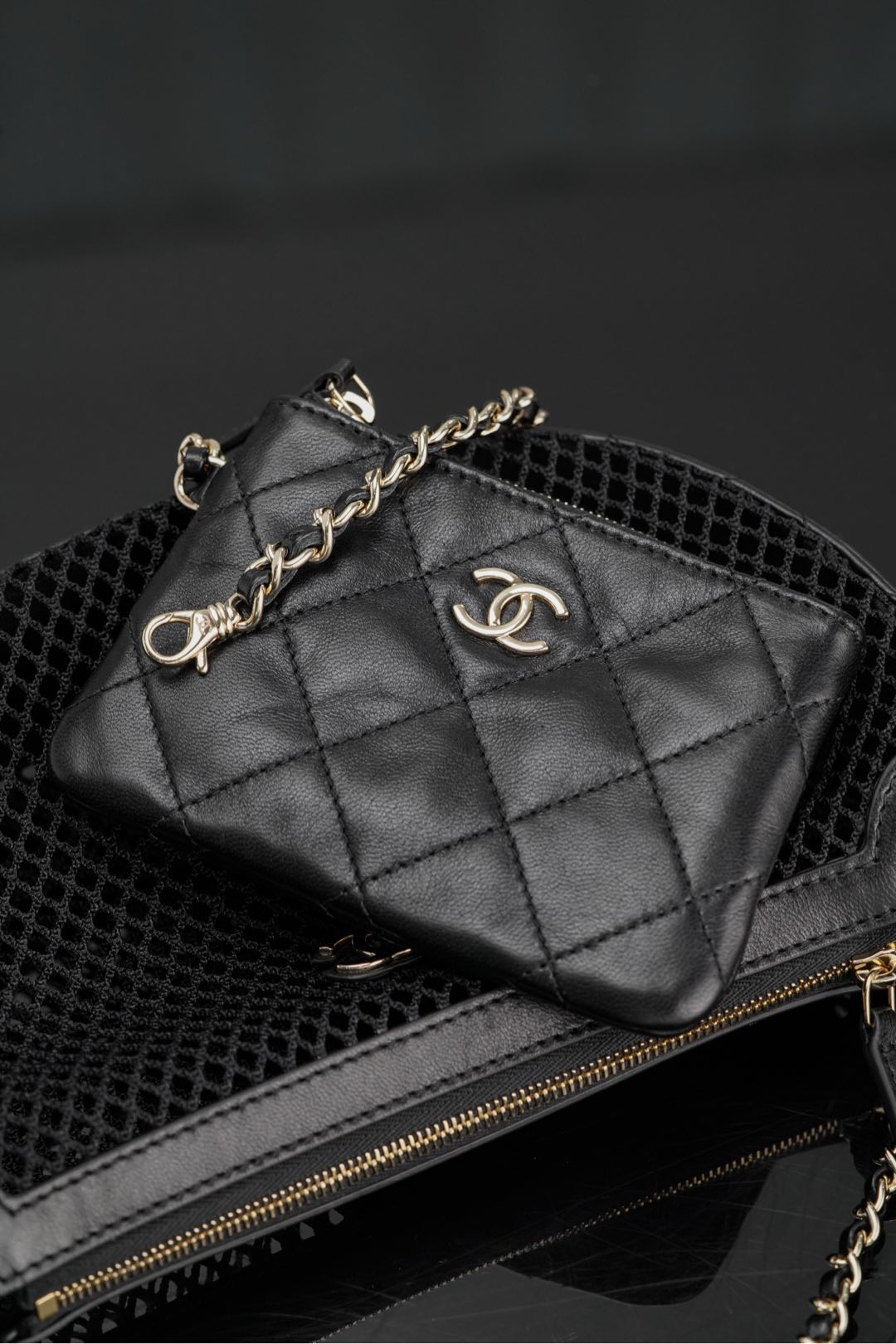 這次玩了一個大膽的「衝突美學」——經典菱格皮革結合輕盈透氣的網紗拼接,不僅打破傳統印象,更讓整體設計多了一點俏皮與未來感。