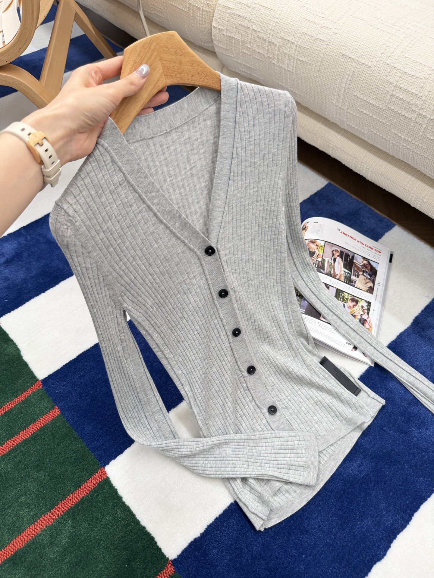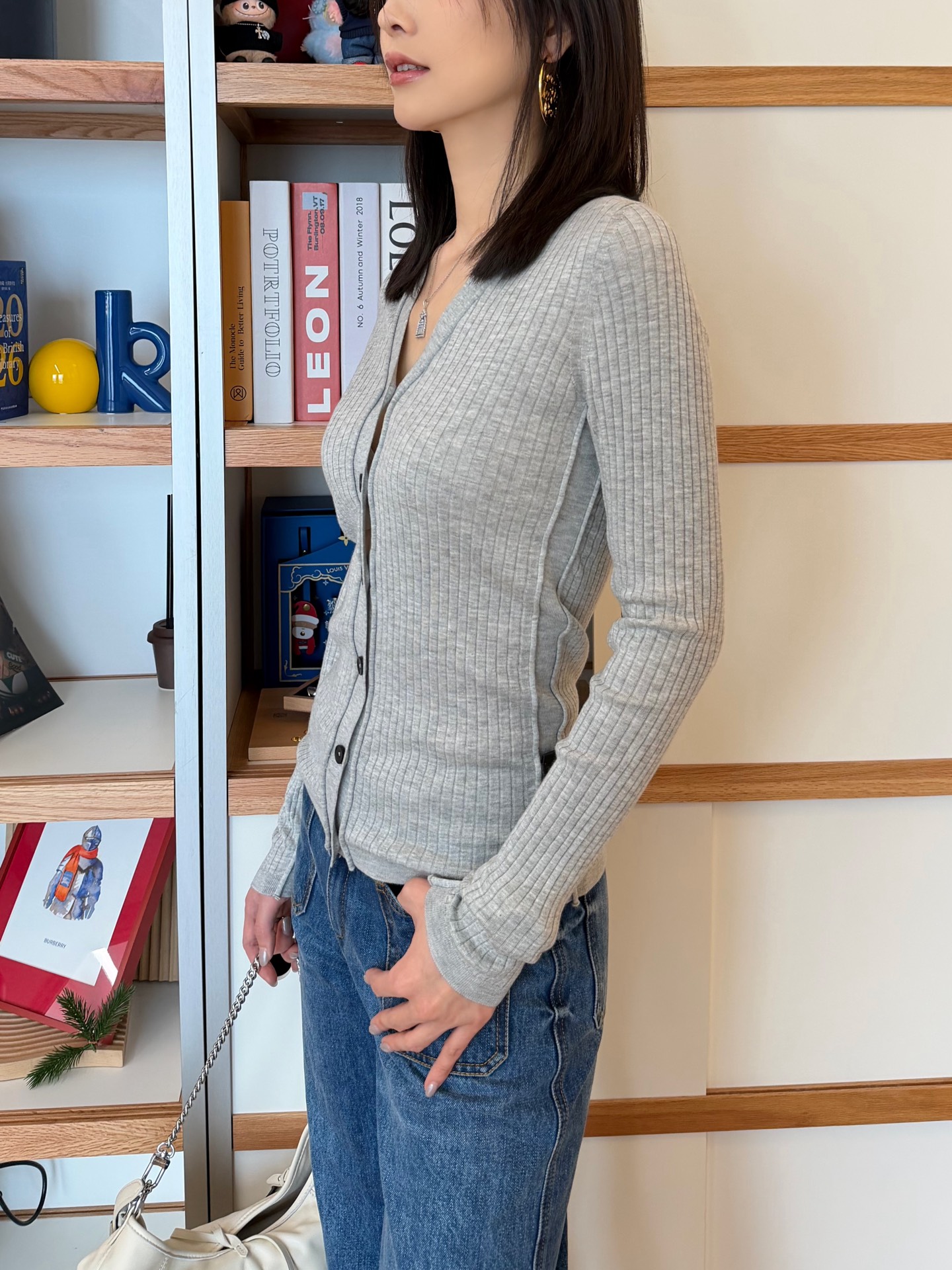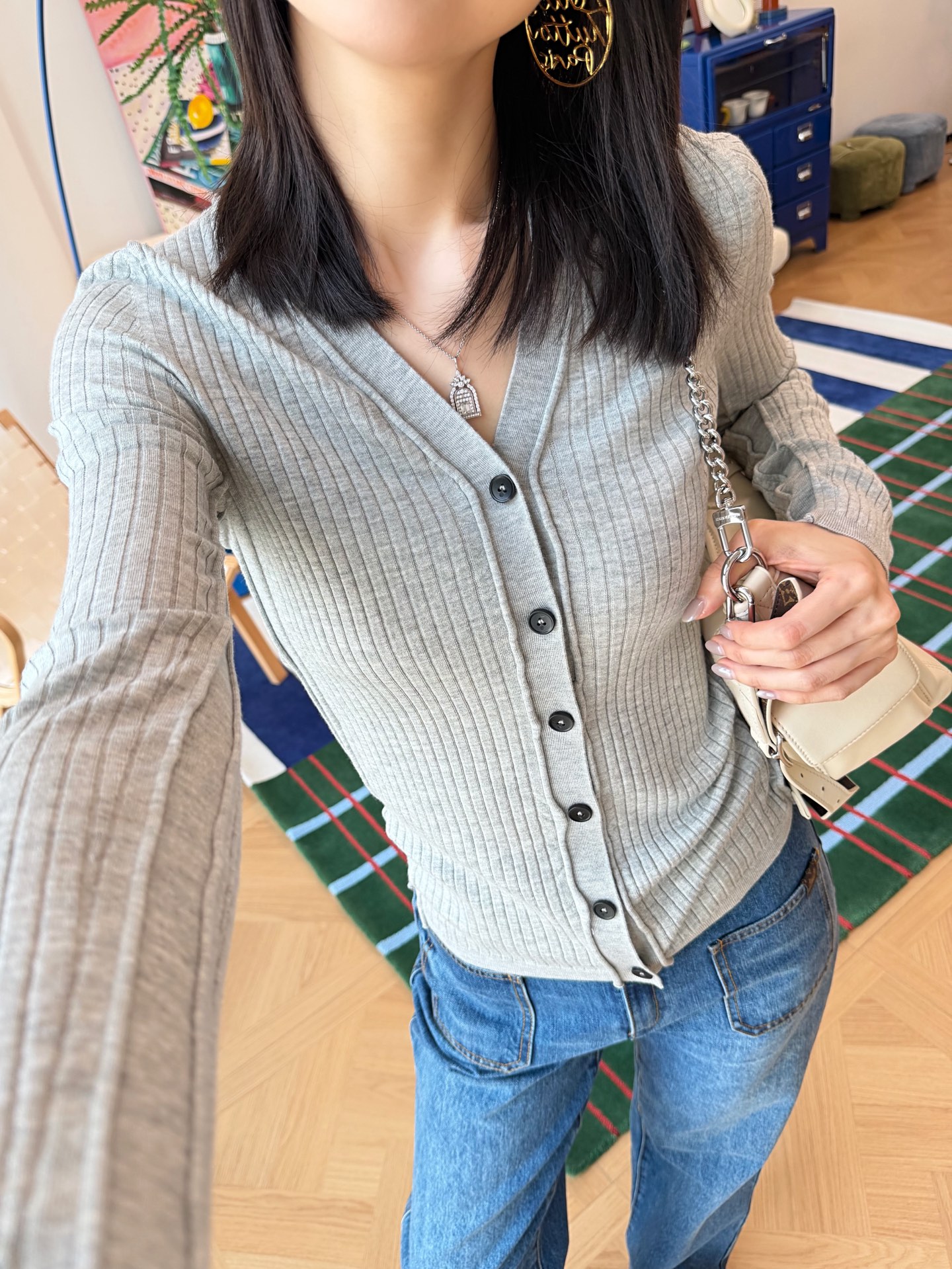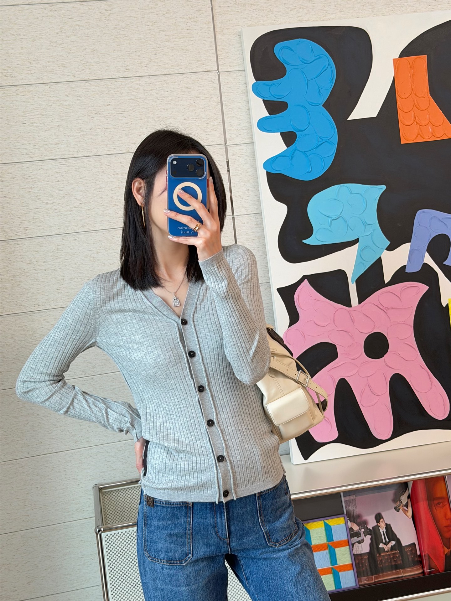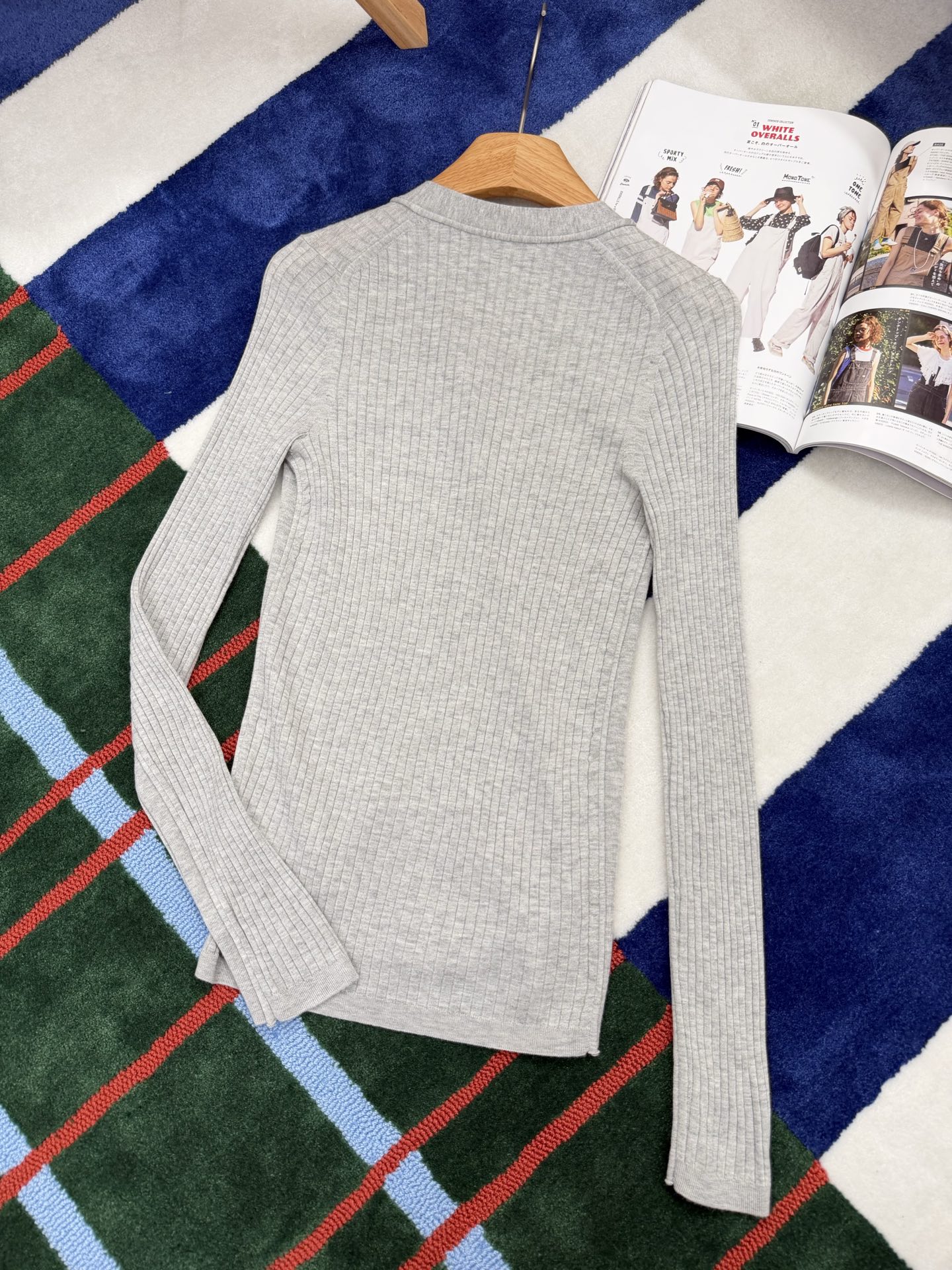 這件屬於那種看起來低調、穿上卻質感滿分的單品。霧灰色調溫柔耐看,自帶柔和光澤感,無論單穿或內搭都能展現細膩氣質。