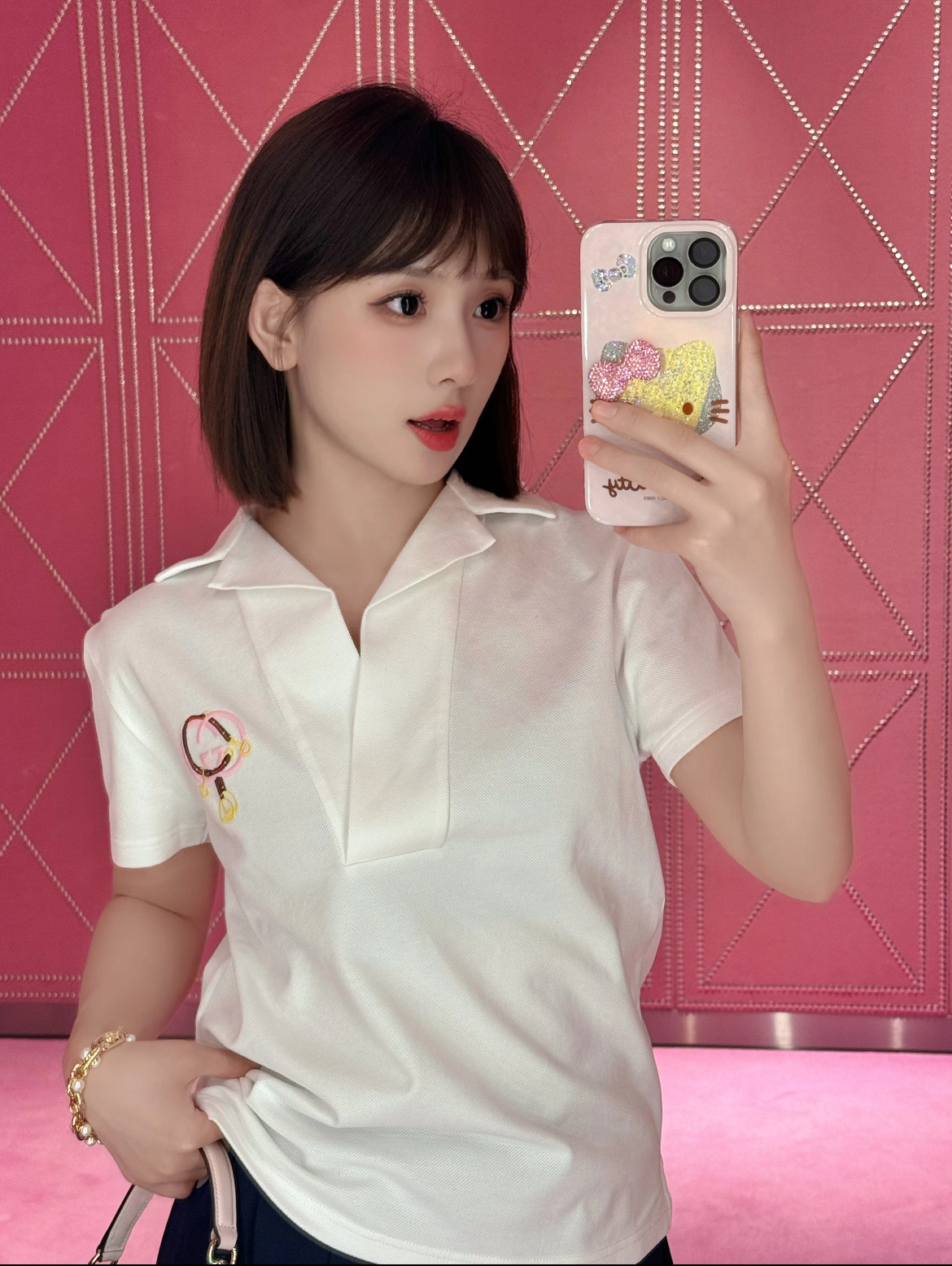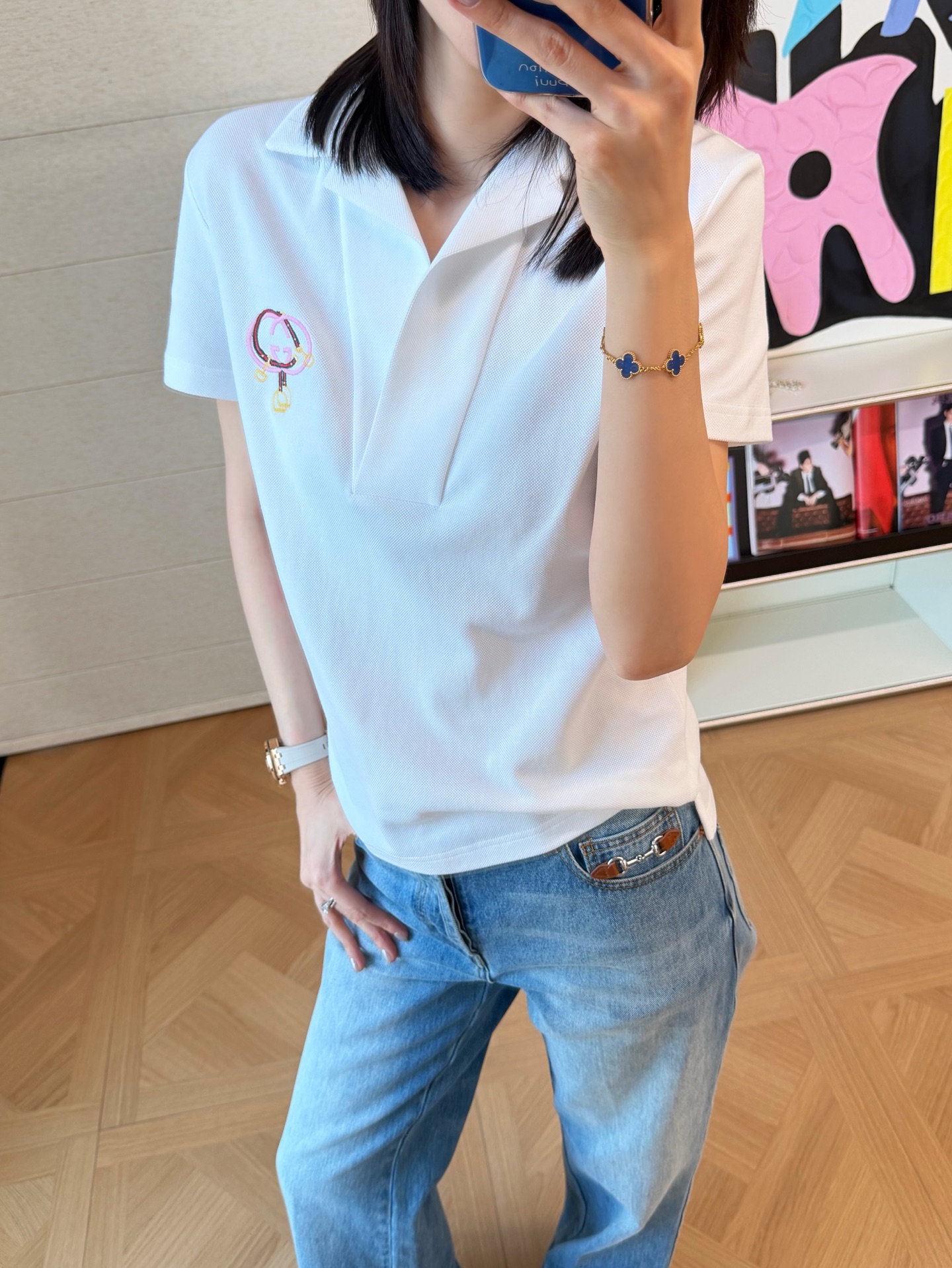 胸前以精緻的「馬銜扣刺繡」作為視覺亮點,細節做得非常到位,既呼應馬年主題,又不會過於張揚,整體質感拿捏得剛剛好。