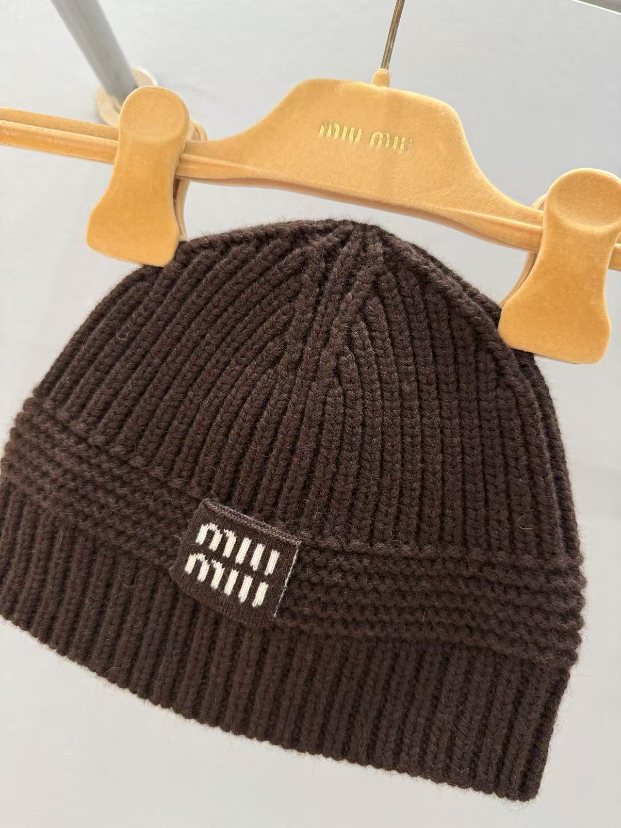 2025早秋 MIU家 徽標羊毛混紡針織帽| 入冬必備