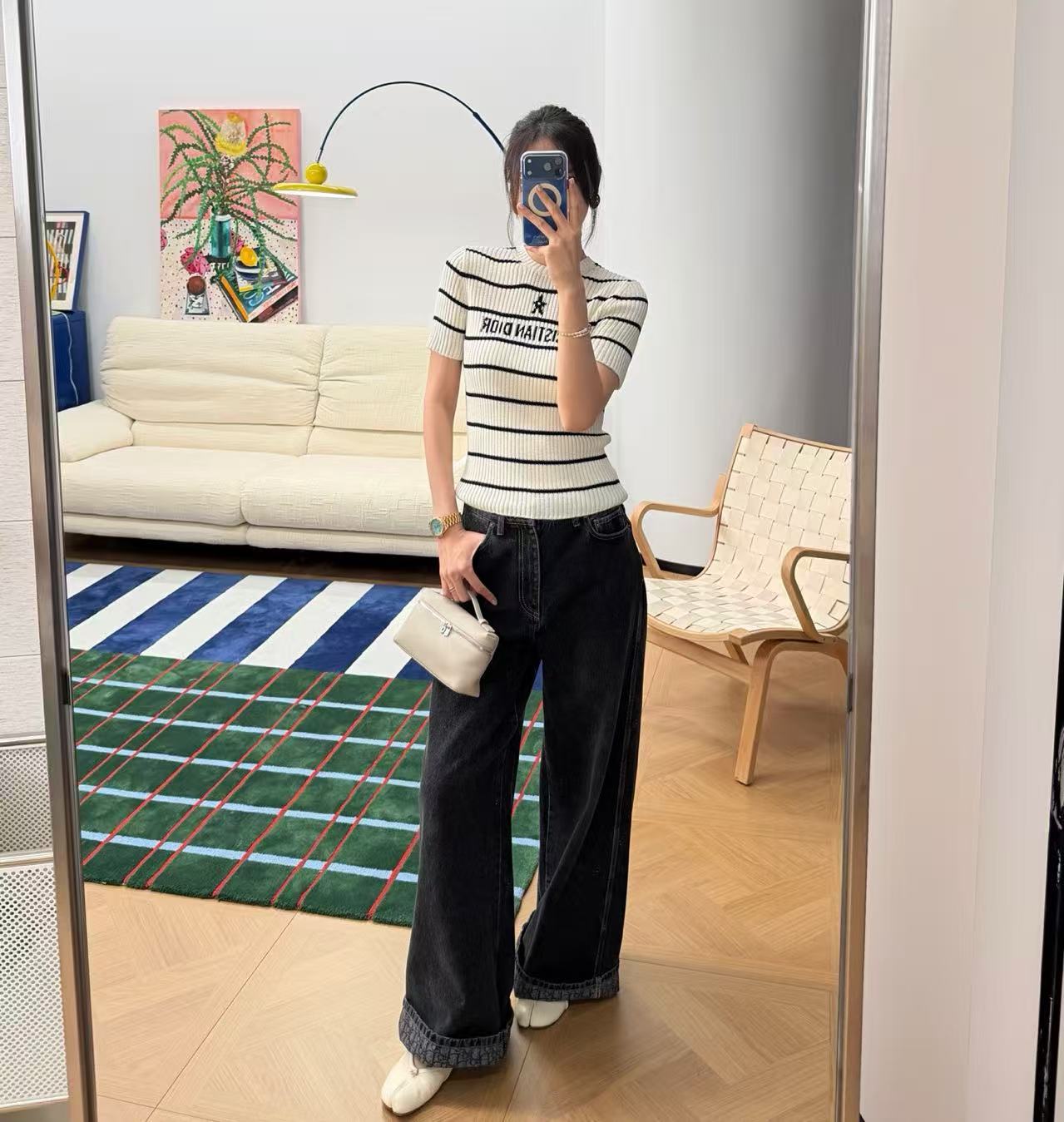 經典法式海軍條紋,米白+海軍藍的配色根本不會膩,隨便套出去都自帶度假感!