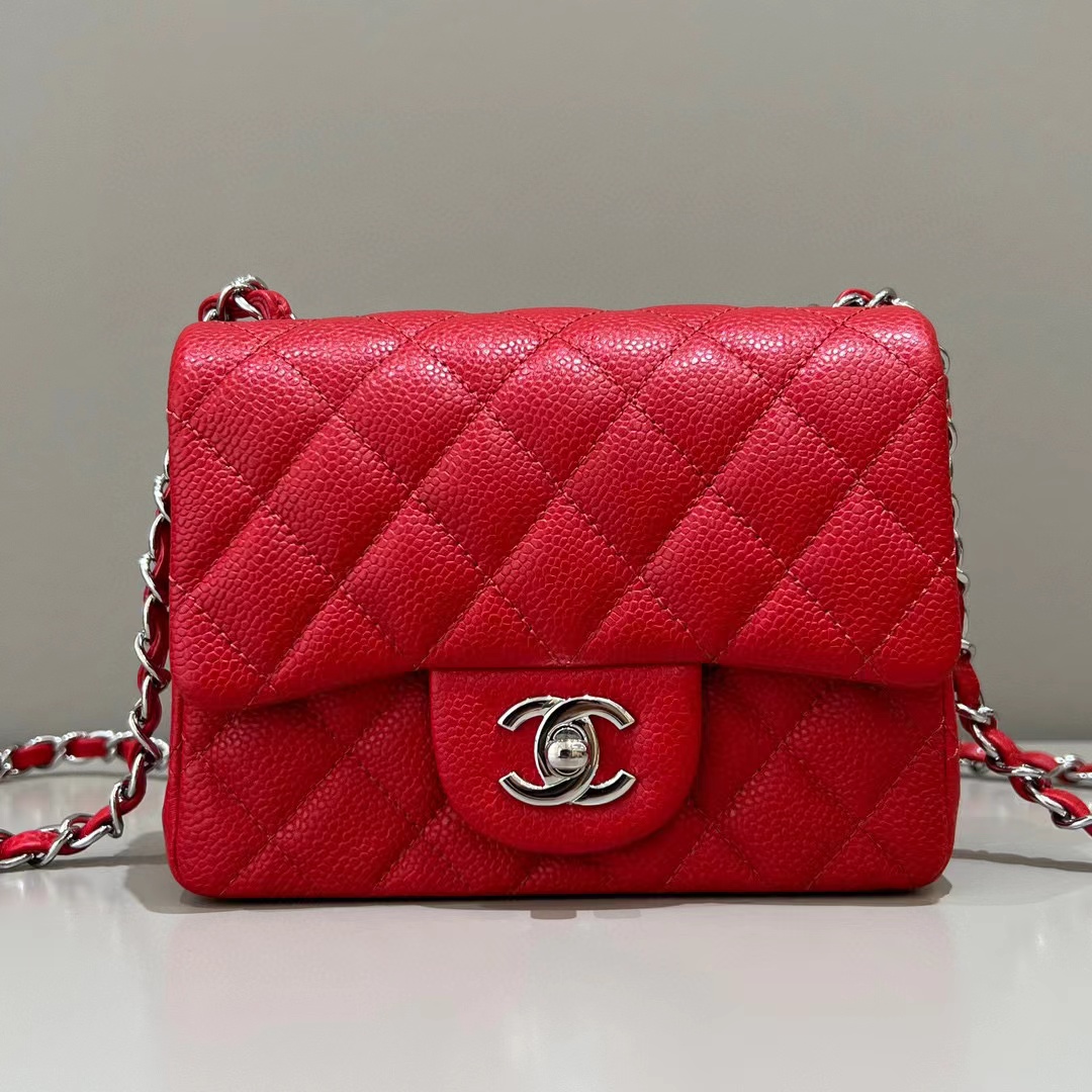 紅色荔枝紋銀扣 /